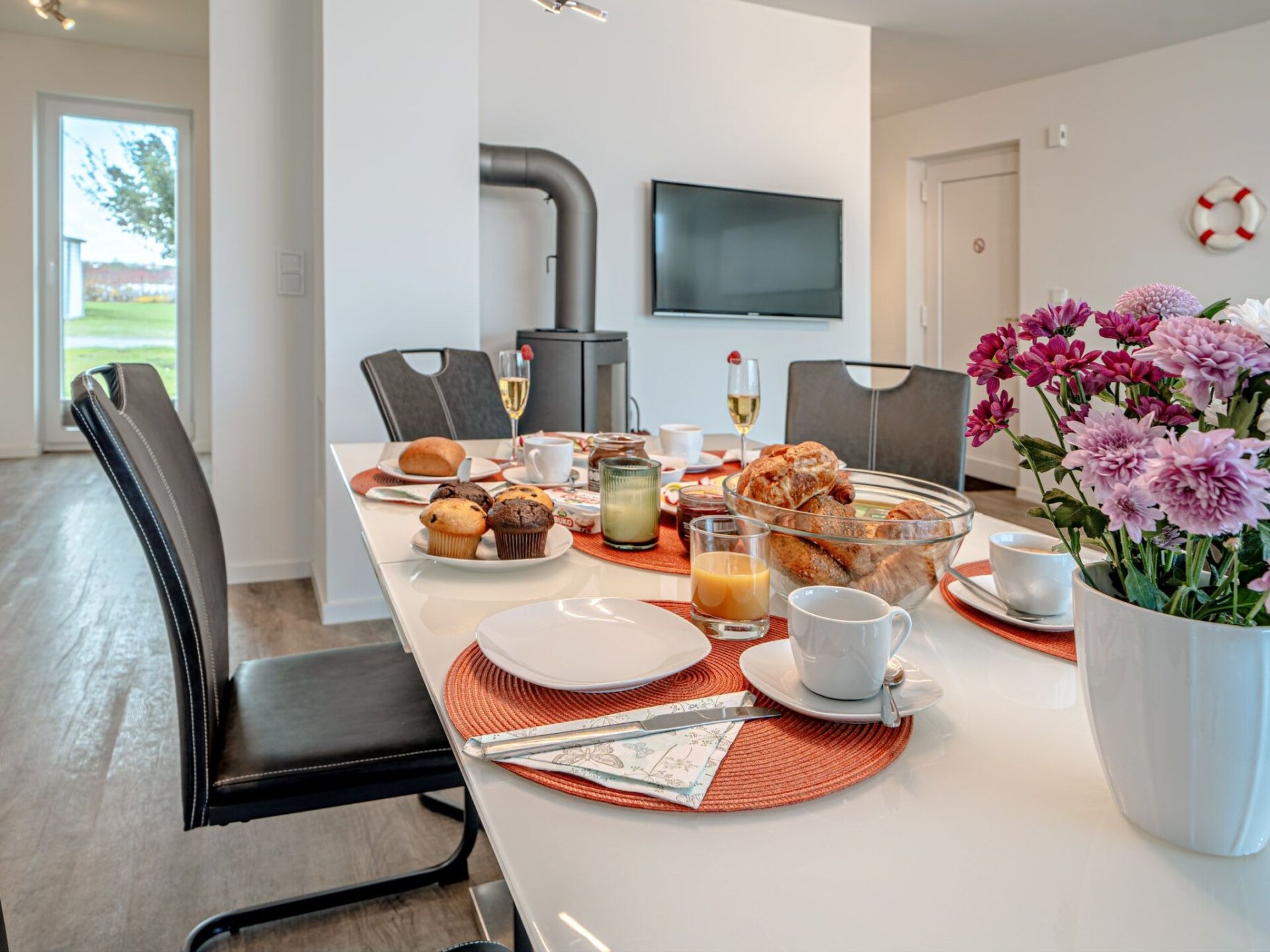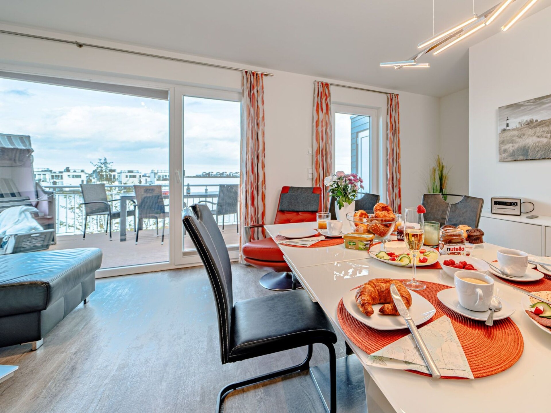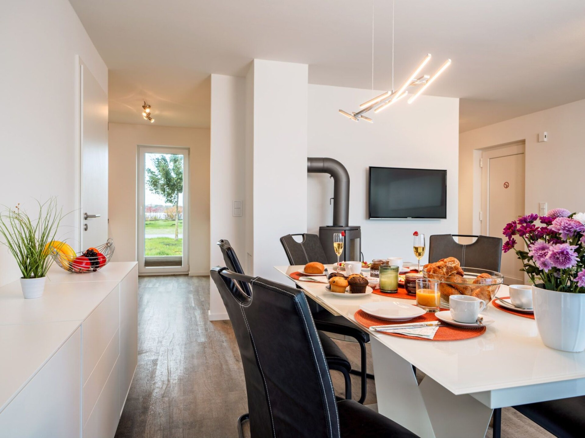 Exclusief halfvrijstaand huis Lootsen Hus van Seeblick Ferien ORO op 3 verdiepingen, op een unieke locatie in de Oostzeebadplaats tussen Schlei en haven, met 127 m² woonoppervlakte, terras en dakterras, open haard, sauna, bad met whirlpoolfuncties - en fascinerend uitzicht op de haven, Schlei en Oostzee!Een grote, lichte woon- en eetruimte op de begane grond, een aparte keuken, 2 slaapkamers met hoogwaardige tweepersoonsbedden op de bovenverdieping, een woon-/slaapruimte op de galerij op de 2e verdieping met comfortabele slaapbank en prachtig uitzicht, nog een slaapbank in het onderste woongedeelte en 2 douches bieden voldoende ruimte voor maximaal 7 personen om zich thuis te voelen. In dit geval zijn er ook 2 parkeerplaatsen direct voor de deur (gratis)! Dit huis is echt een ABSOLUUT HIGHLIGHT! Het appartement heeft een open haard, sauna en bad met whirlpoolfuncties.