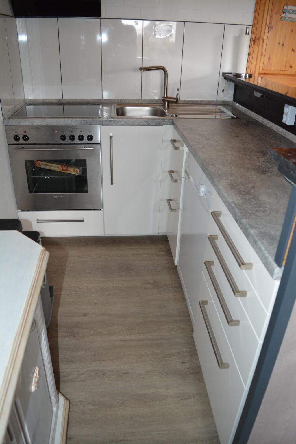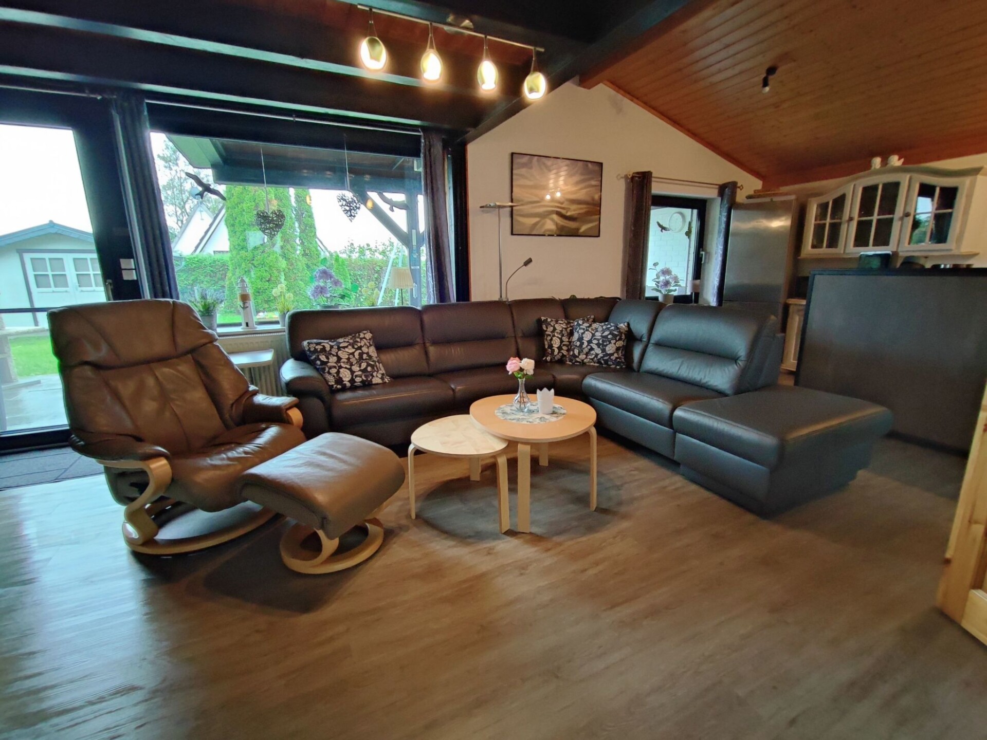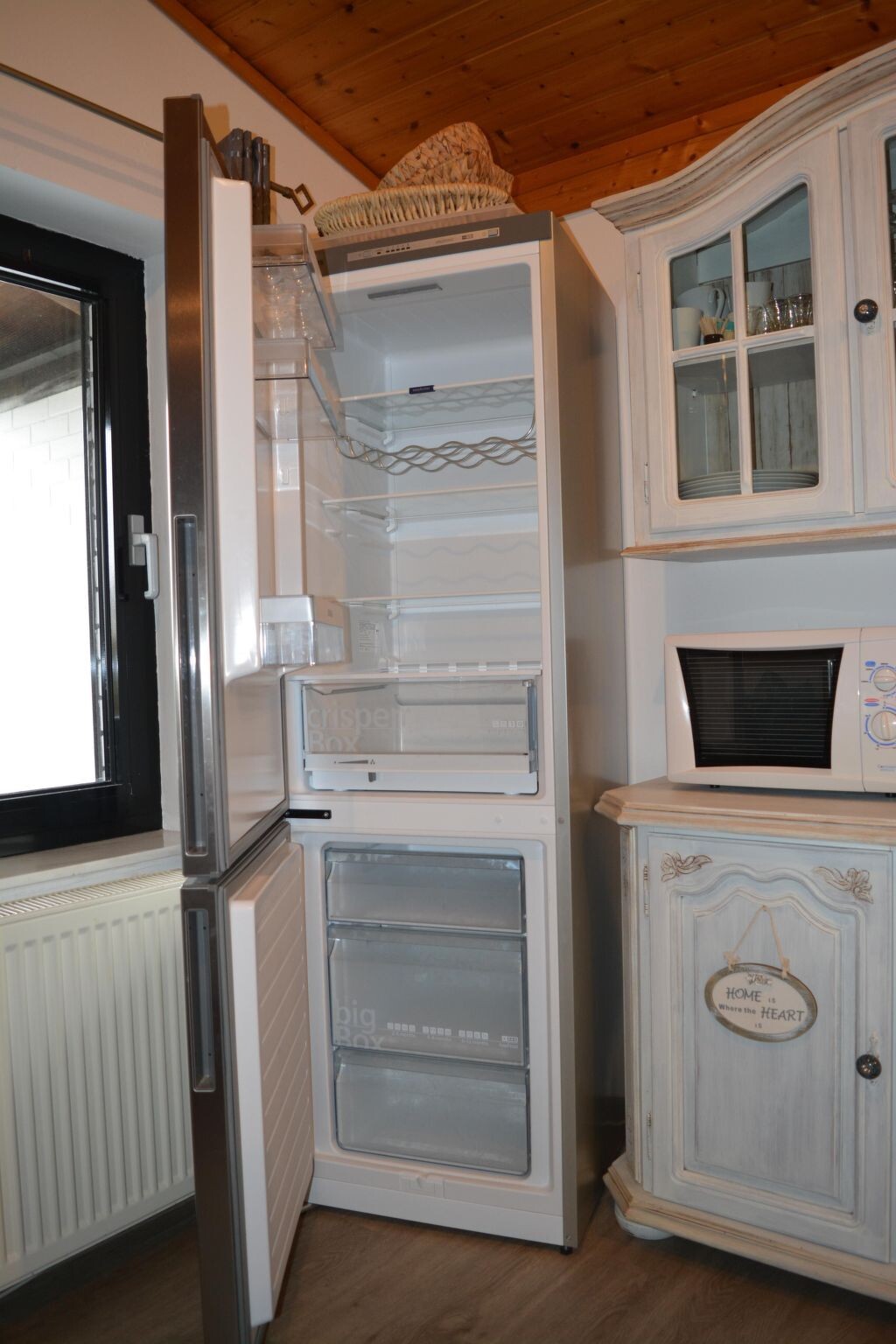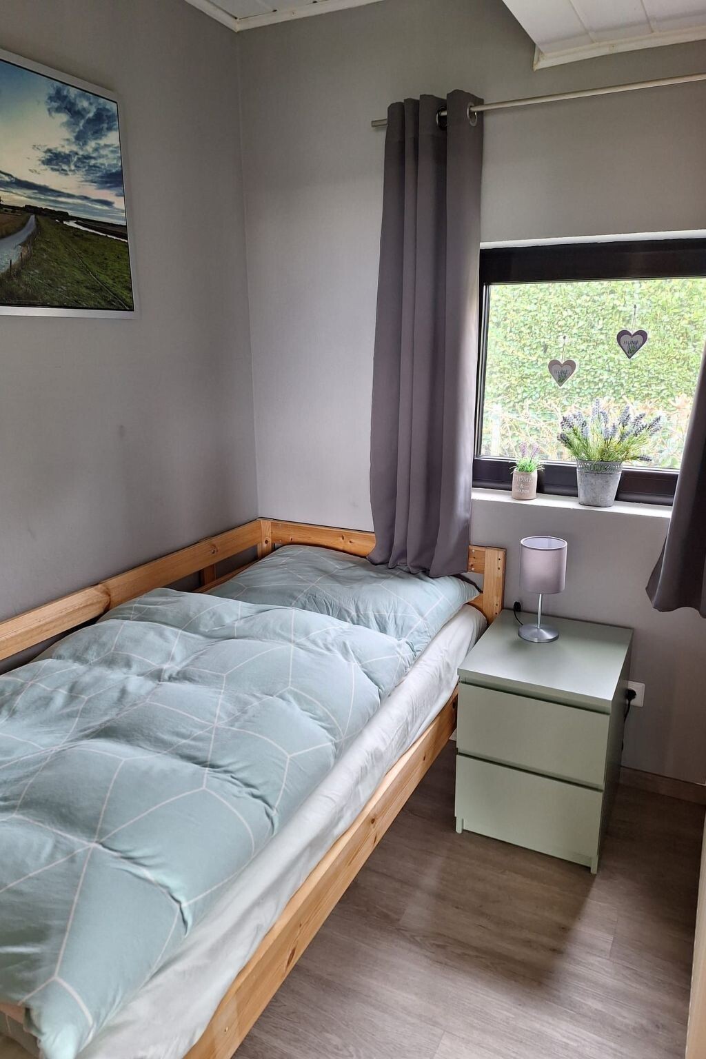 Maximaal 2 huisdieren/honden toegestaan. This detached roof-only house (non-smoking) is located approx. 300 metres from the dyke, at the end of a quiet holiday home estate with little traffic.The house can accommodate up to five people. The ground floor is approx. 50 m² in size and consists of the following rooms: Large living room with integrated kitchen and dining area, access to the terrace; small room with a bed, large bathroom with underfloor heating, walk-in shower, toilet and washbasin; utility room with washing machine and extra WC. On the upper floor there is a bedroom with a double bed and a bedroom with two single beds. With a travel cot (including pillow, duvet and extra mattress) and a children's high chair, which are provided free of charge by the owner, as well as a door gate at the top, a toilet seat for children and a stool in the bathroom, the house offers family-friendly facilities. Radio/CD, television (satellite TV) and DVD player are also available. Internet/WLAN is also provided free of charge by the owner.Large covered south/west-facing terrace with garden furniture and barbecue, where you can enjoy the sun from late morning until sunset. Garden with swing, sandpit and plenty of space to play. The property is completely fenced so that children and dogs can run around the house.Bicycles can be hired from the bike hire about 300 metres from the house next to the play barn.Cats and birds are not allowed! The complex is located directly on the North Sea dyke, so that you can reach the North Sea lagoon, the green beach of Burhave or the play barn in a few minutes on foot. The centre of Butjadingen-Burhave, which offers numerous restaurants and shopping facilities, is also within easy reach by bike or on foot. The proximity to the North Sea dyke offers a good starting point for long walks or cycle tours along the coast of Butjadingen. Just a few minutes' walk from the holiday home, the dog beach and another designated dog meadow behind the play barn offer the opportunity for your four-legged friends to romp around to their heart's content.