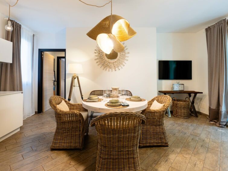 "Scirocco", appartement 2-kamers 60 m2, op de begane grond. Zeer modern en smaakvol ingericht: woon-/eetkamer met 1 divanbed (140 cm, lengte 200 cm), TV en air-conditioning. 1 2-pers. kamer. Kookhoek (oven, afwasmachine, 4 inductiekookplaten, broodrooster, waterkoker, elektrische koffiemachine). Douche/bidet/WC. Air-conditioning, heteluchtverwarming. Verwarming alleen beschikbaar van 01.11. tot 15.04. Uitzicht op de plaats. Ter beschikking: wasmachine, haardroger. Internet (Internet (WiFi), gratis). Rookvrij huis. Rookmelders, brandblusser. IT009006B4OBB9BHWK