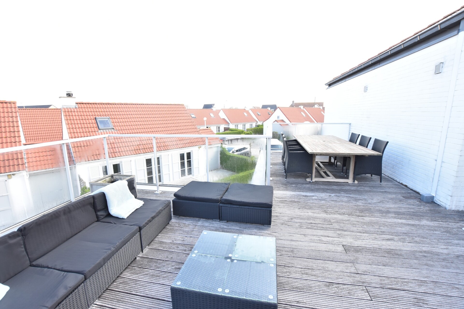 Het vakantiehuis is voorzien van een dakterras met comfortabel tuinmeubilair waarop je heerlijk achterover kunt leunen, terwijl je geniet van de welverdiende vakantie. Er zijn 2 parkeerplaatsen voor de auto en er is een heerlijke lounge set aanwezig.