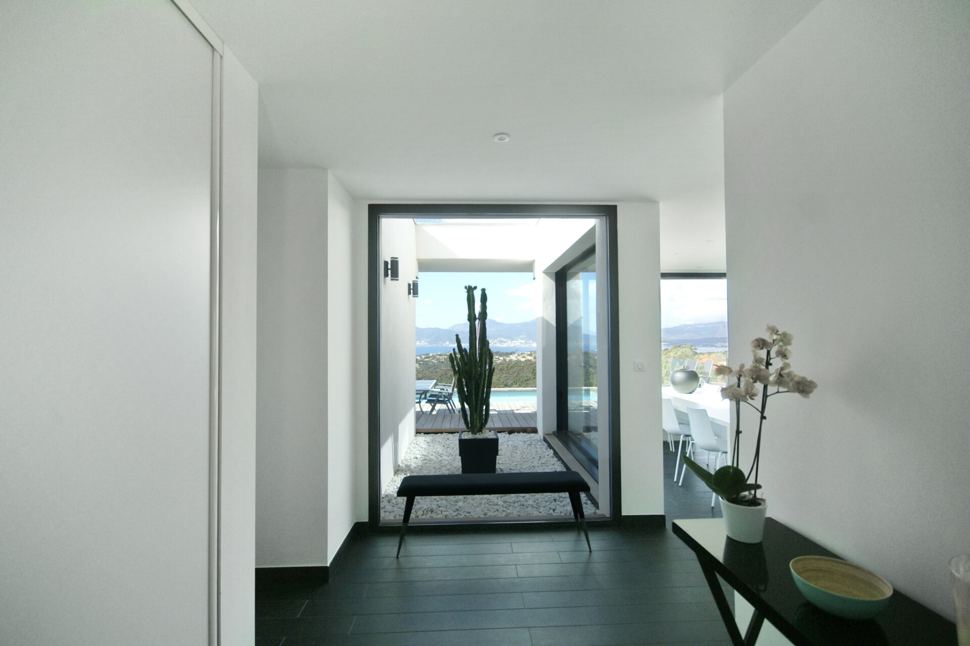 Ontsnap naar deze chique, zonovergoten villa in Albitreccia, waar u vanuit elke kamer een adembenemend uitzicht op de baai van Ajaccio heeft. Deze villa met 3 slaapkamers is ontworpen met comfort en stijl in gedachten en biedt plaats aan maximaal 6 gasten. De villa is voorzien van designmeubilair, grote ramen en koele airconditioning. De ruime woonkamer komt uit op een privéterras, perfect om te ontspannen met een glas wijn terwijl de zon ondergaat in de zee. Of u nu aan het zwembad ligt of geniet van tijd met het gezin in het luchtige interieur, elk detail nodigt u uit om te ontspannen.