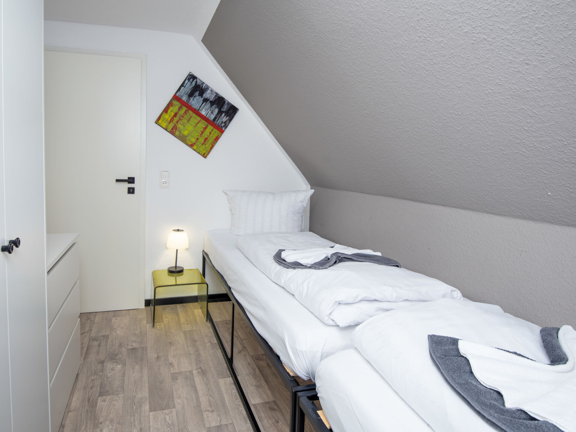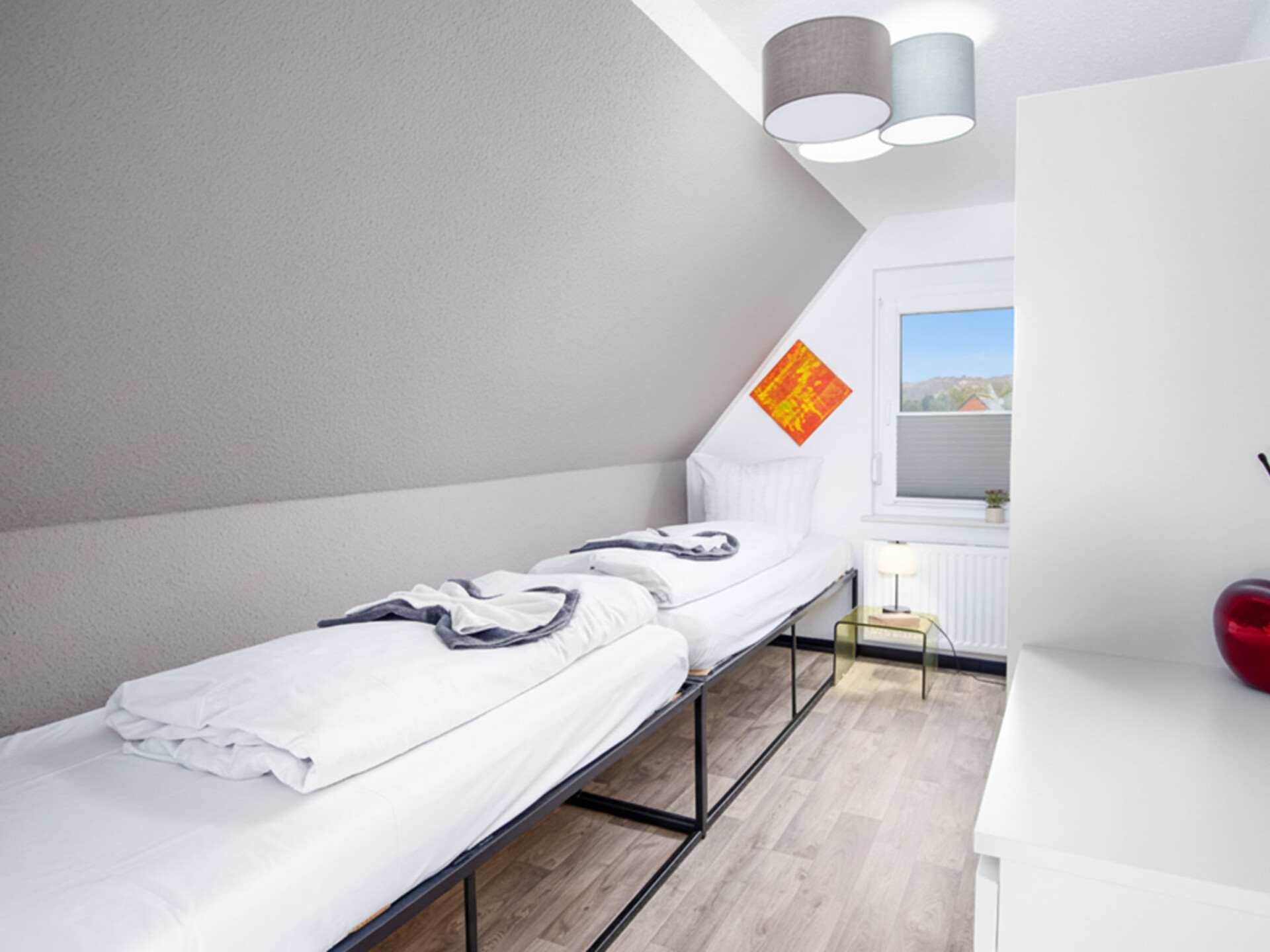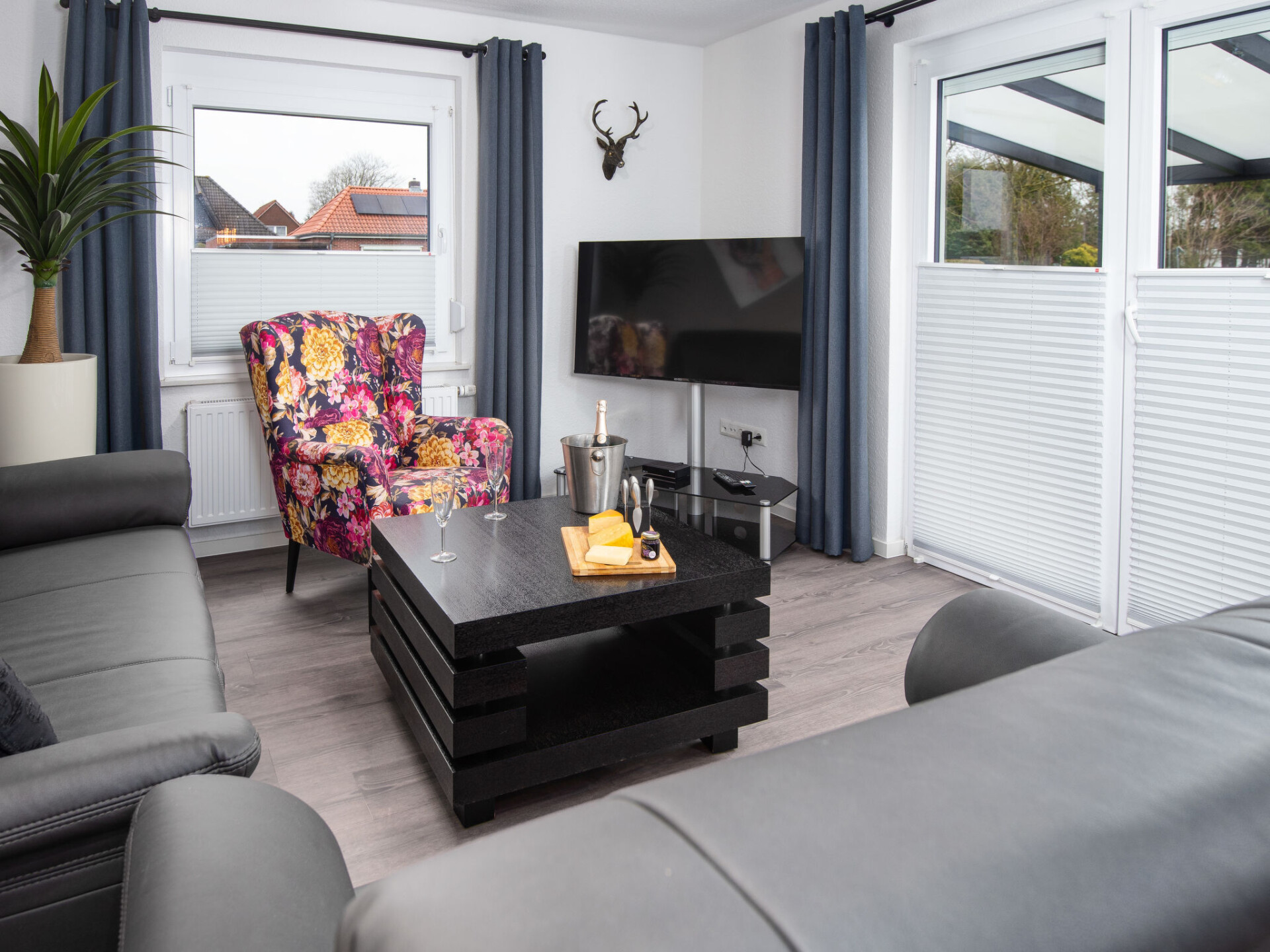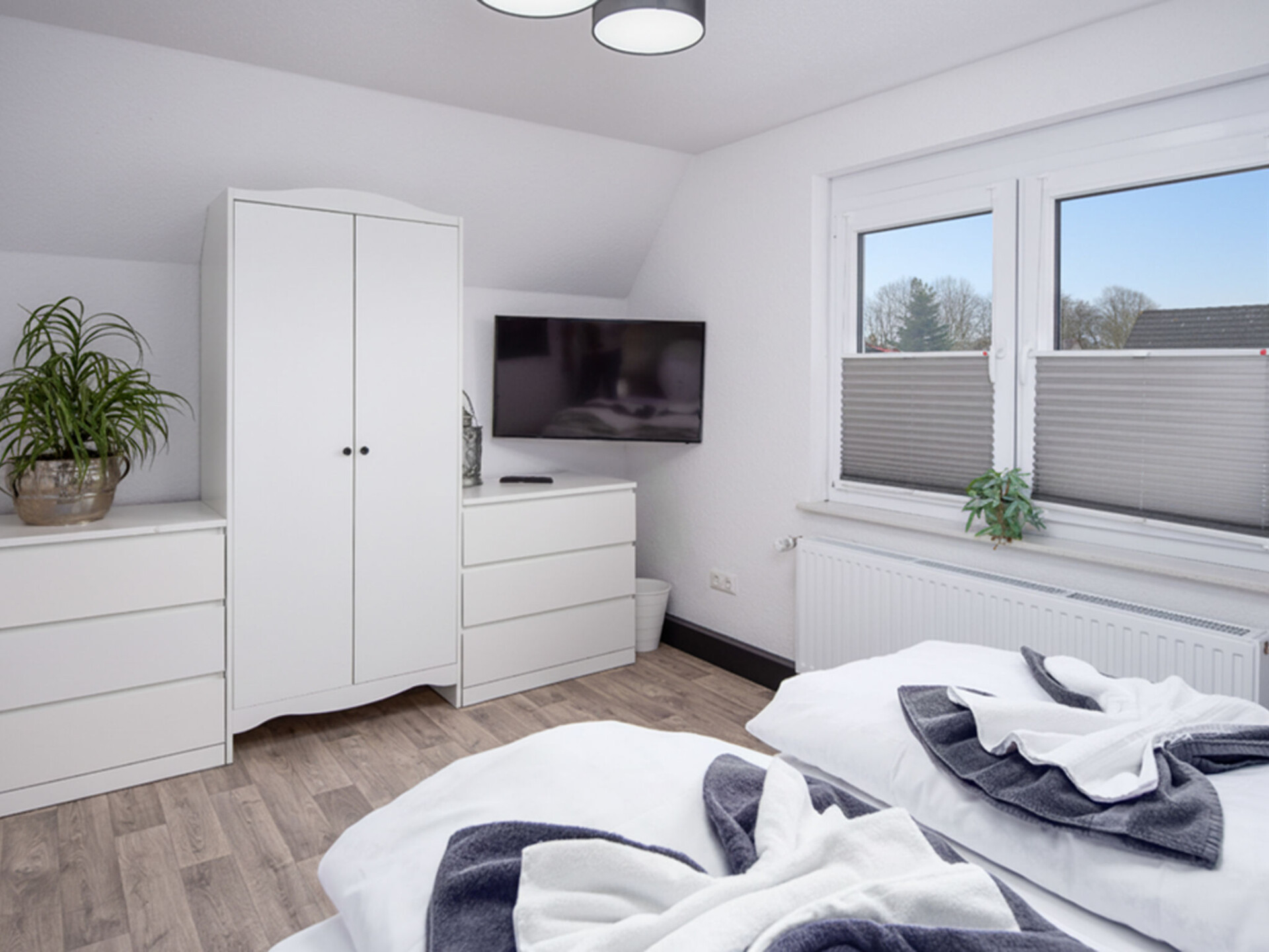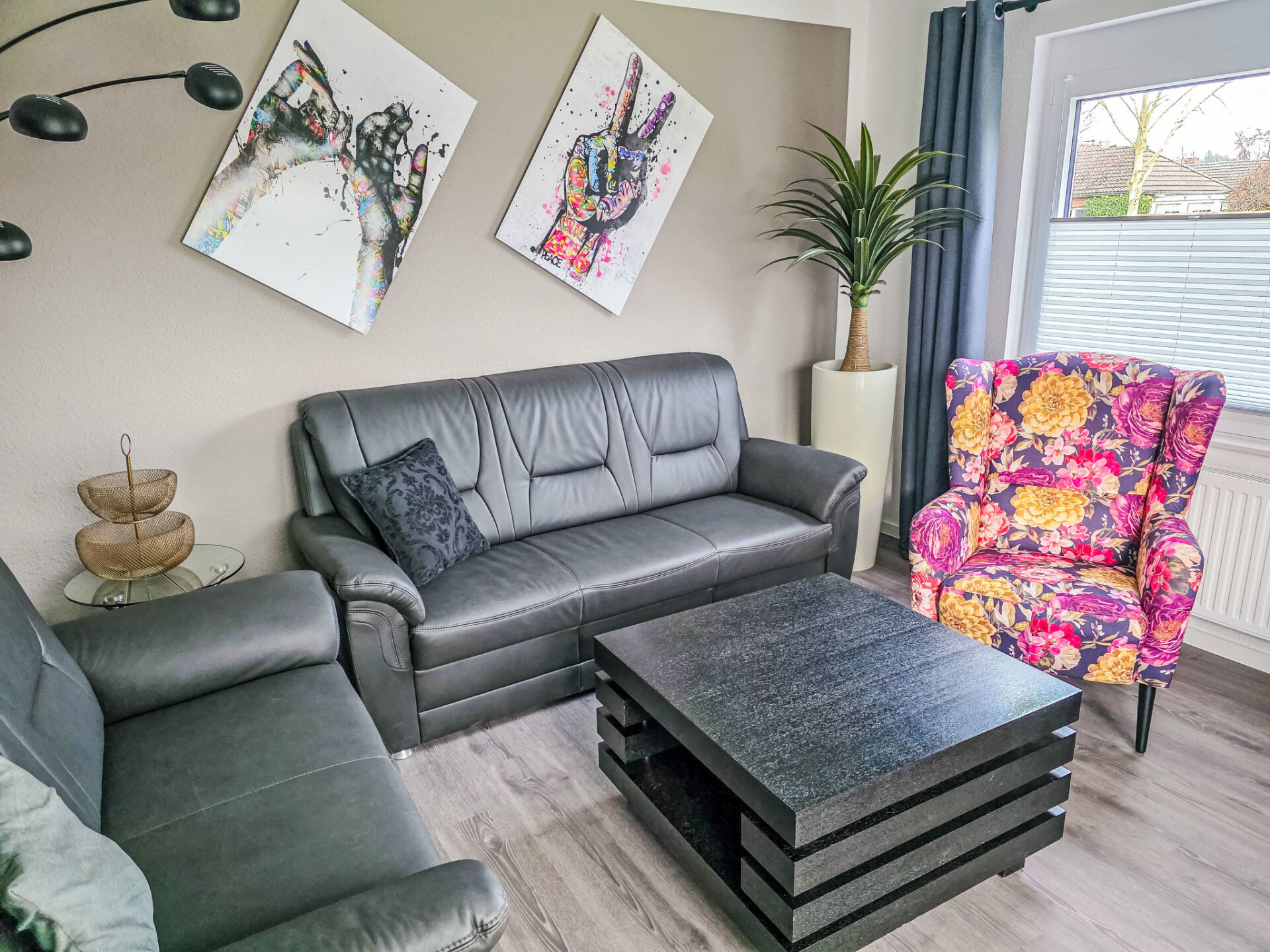"Seeperle", huis 4-kamers 84 m2 op 2 verdiepingen, op de begane grond. Gezellig ingericht: woon-/eetkamer met Sat-TV (Flatscreen TV). Uitgang naar het terras. Keuken (oven, afwasmachine, 4 keramische glas kookplaten, broodrooster, waterkoker, magnetron, elektrische koffiemachine) met eettafel. Douche/WC. Bovenverdieping: 1 kamer met 1 2-pers bed en Sat-TV (Flatscreen TV). 2 kamers, elke kamer heeft 2 bedden en Sat-TV (Flatscreen TV). Aparte WC. 2 terrassen, tuin. Terrasmeubelen. Ter beschikking: Internet (WiFi). Rookvrij huis. Maximaal 2 huisdieren/honden toegestaan. Rookmelders.