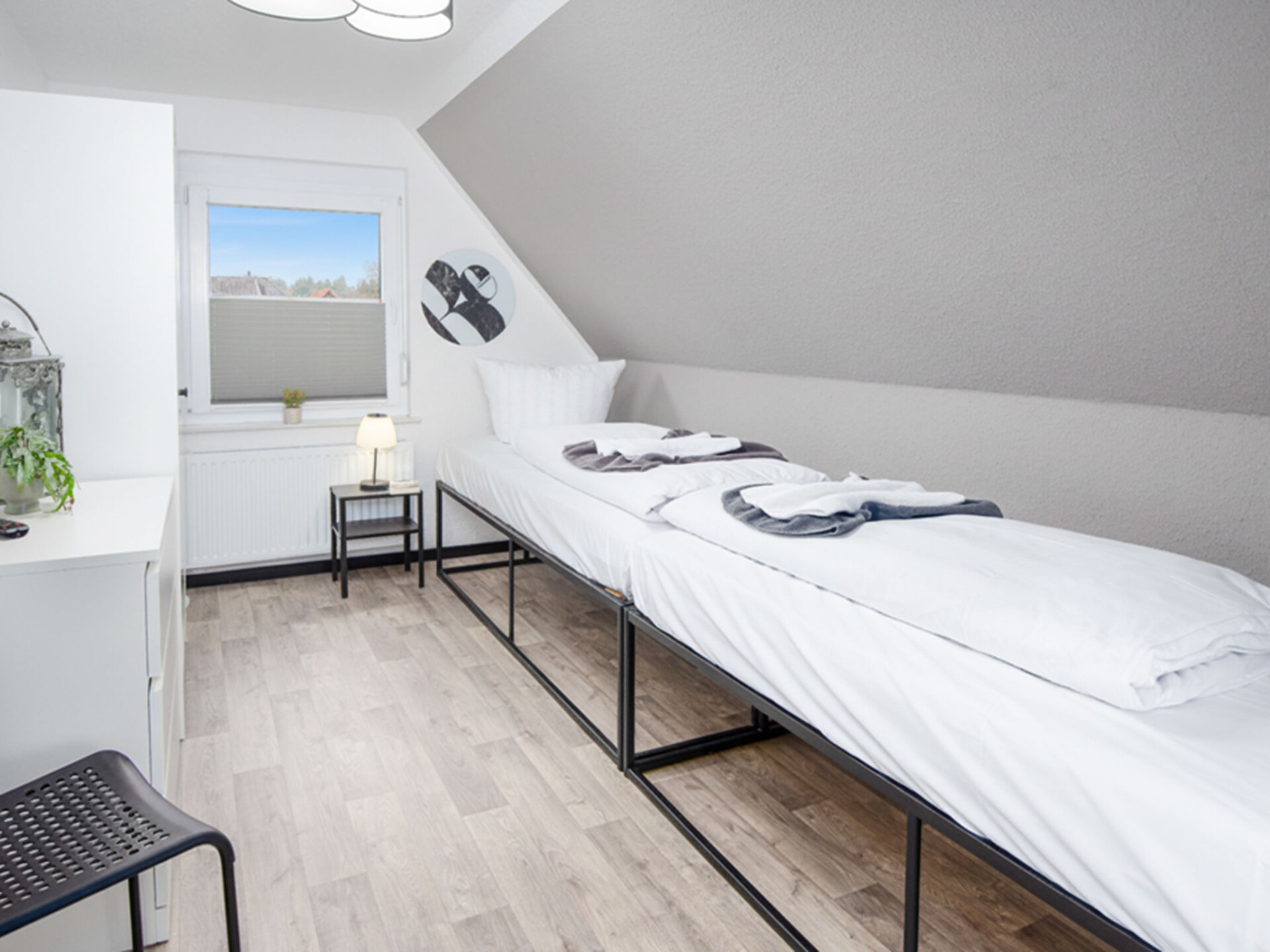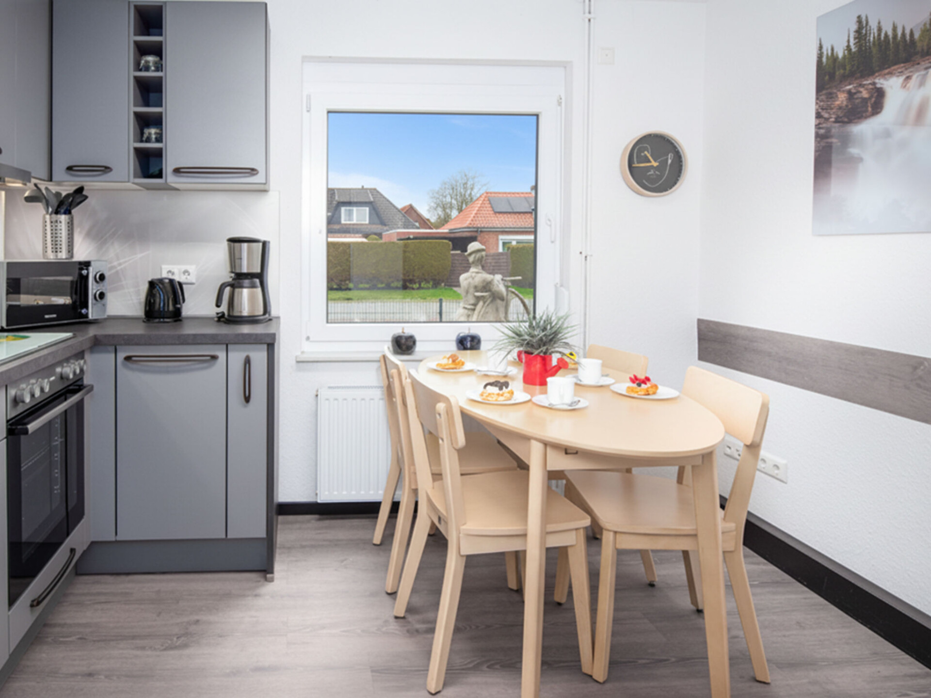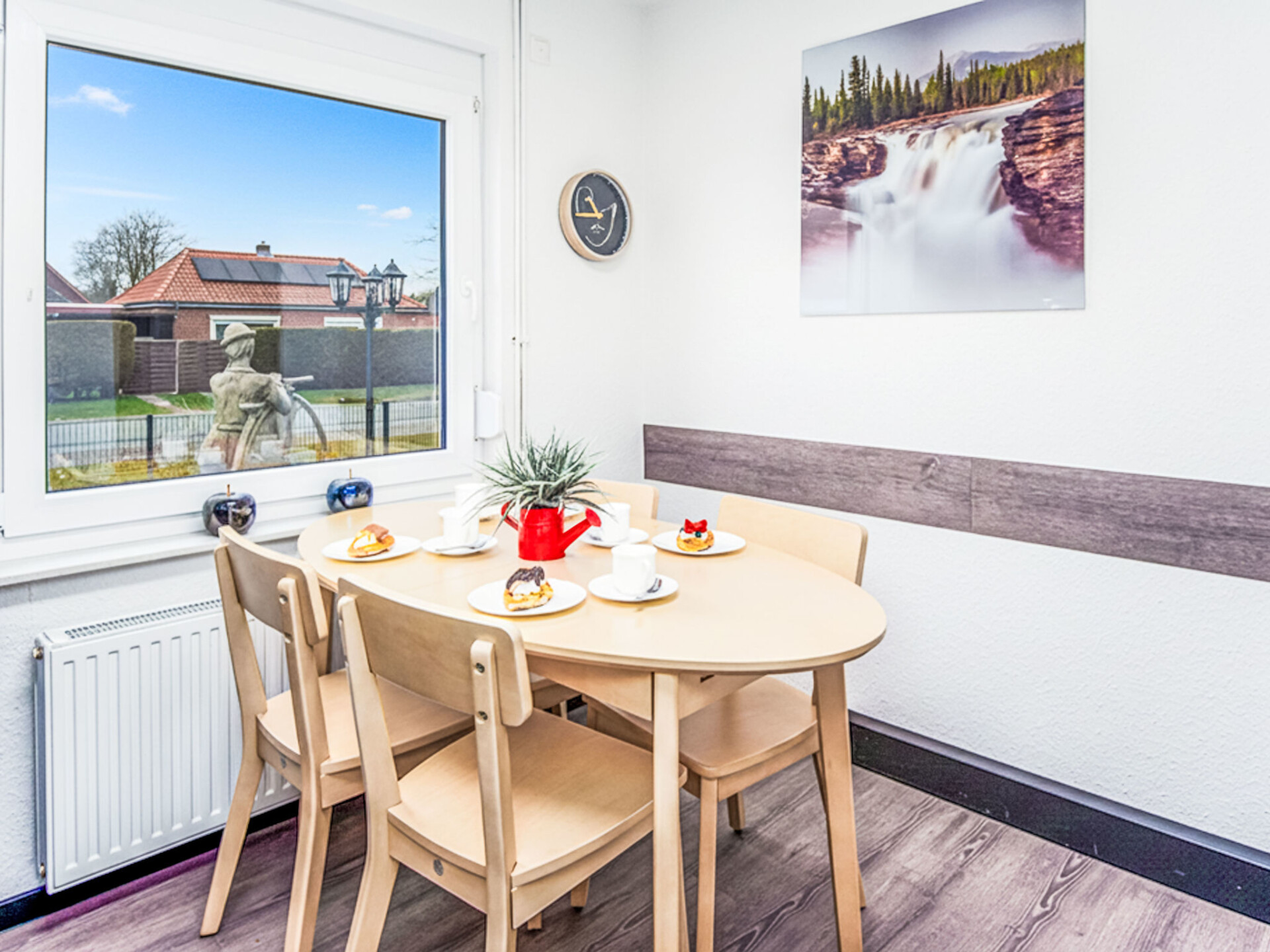 Mooi eengezinswoning. Aan de rand van de plaats, 1 km van het centrum van Hage, 12 km van zee, 12 km van het strand. Voor alleengebruik: groot tuin met gazon. In het huis: bergruimte voor fietsen, centrale verwarming. Parkeerplaats bij het huis. Winkel 1.4 km, levensmiddelenwinkel 1.4 km, restaurant 1.4 km, bakkerij 1.4 km, bushalte 700 m, treinstation "Norden" 9.2 km, veerboot "Norddeich" 12 km, zandstrand 12 km, openluchtzwembad 4.5 km, overdekt zwembad 4.5 km, meer (zwemmen) 4.5 km. Golfterrein (9 holes) 3.1 km, tennis 4.5 km, midgetgolf 4.5 km. Auto noodzakelijk.