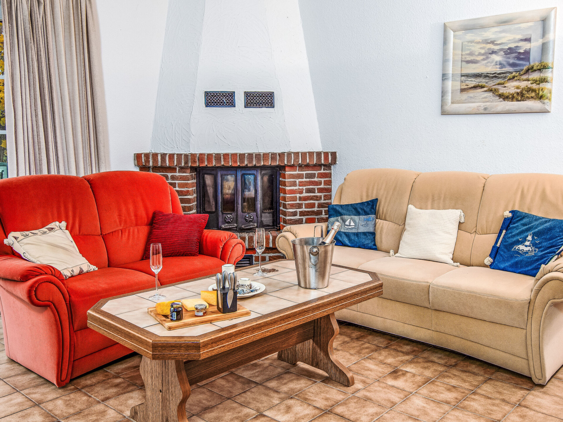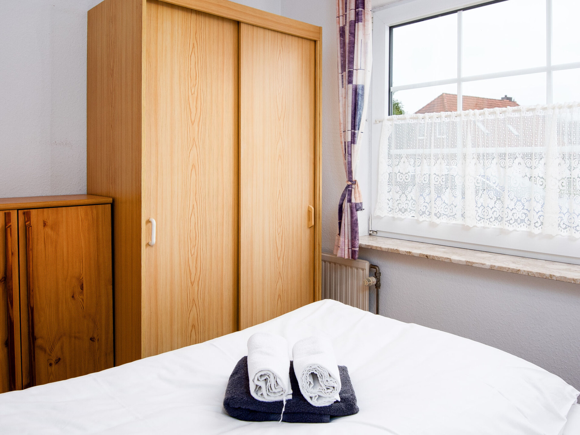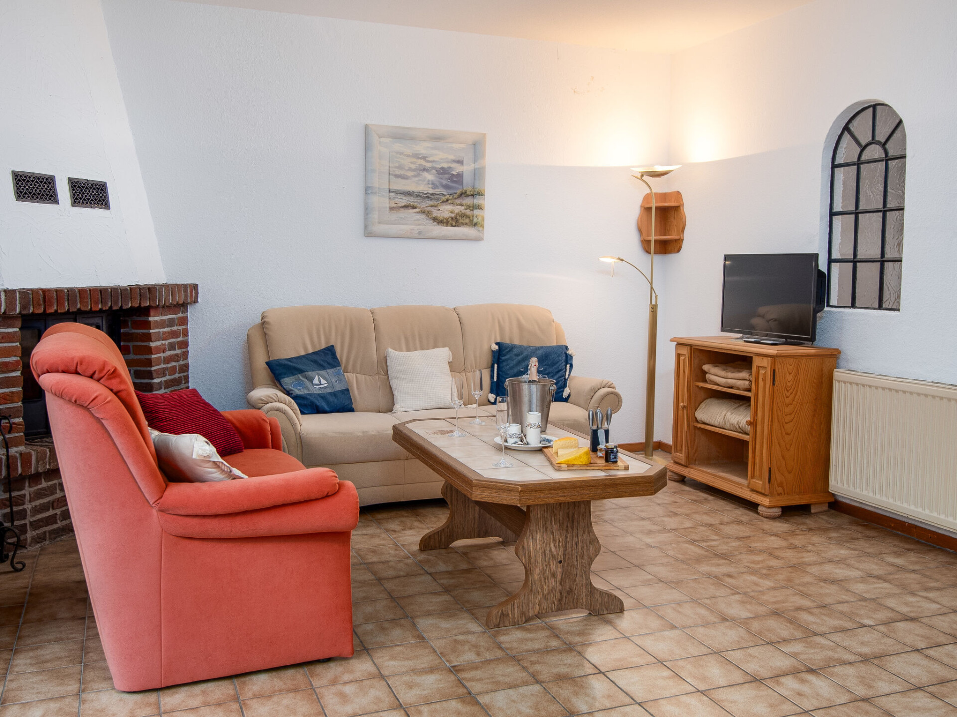 "Seepferdchen", appartement 3-kamers 55 m2, op de begane grond. Eenvoudig ingericht: woon-/eetkamer met open haard (alleen decoratie), Kabel-TV (Flatscreen TV). Uitgang naar het terras. 1 kamer met 2 bedden. 1 kamer met 1 bed (140 cm, lengte 200 cm). Kleine keuken (4-pits kookplaat, broodrooster, waterkoker, elektrische koffiemachine, combimagnetron). Douche/WC. Terras. Terrasmeubelen. Ter beschikking: kinderbed tot 2 jaar (extra). Maximaal 1 huisdier/hond toegestaan. Rookmelders.