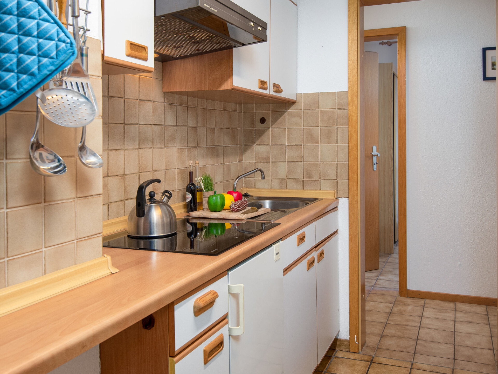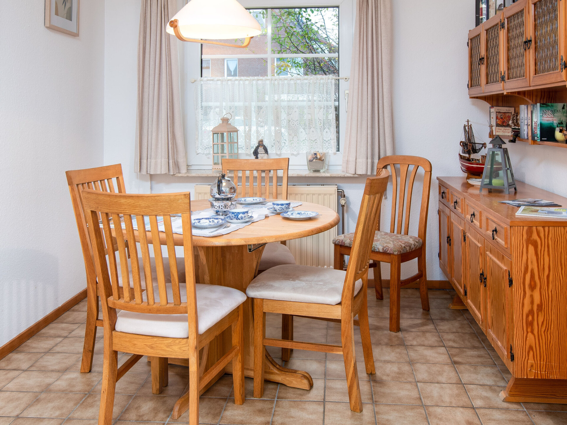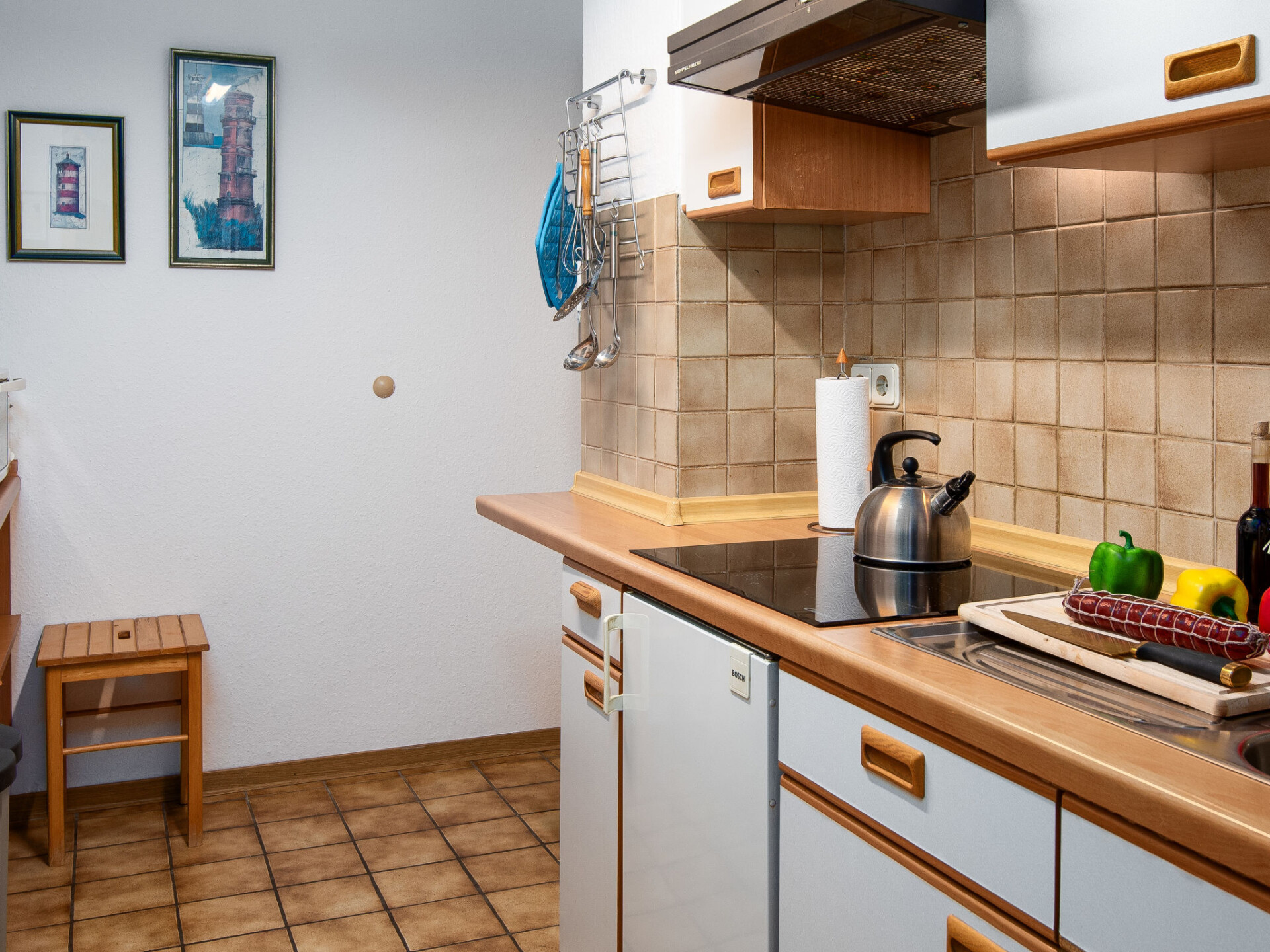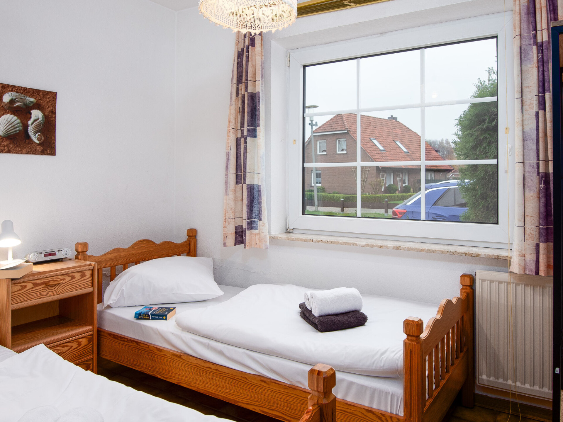 "Seepferdchen", appartement 3-kamers 55 m2, op de begane grond. Eenvoudig ingericht: woon-/eetkamer met open haard (alleen decoratie), Kabel-TV (Flatscreen TV). Uitgang naar het terras. 1 kamer met 2 bedden. 1 kamer met 1 bed (140 cm, lengte 200 cm). Kleine keuken (4-pits kookplaat, broodrooster, waterkoker, elektrische koffiemachine, combimagnetron). Douche/WC. Terras. Terrasmeubelen. Ter beschikking: kinderbed tot 2 jaar (extra). Maximaal 1 huisdier/hond toegestaan. Rookmelders.