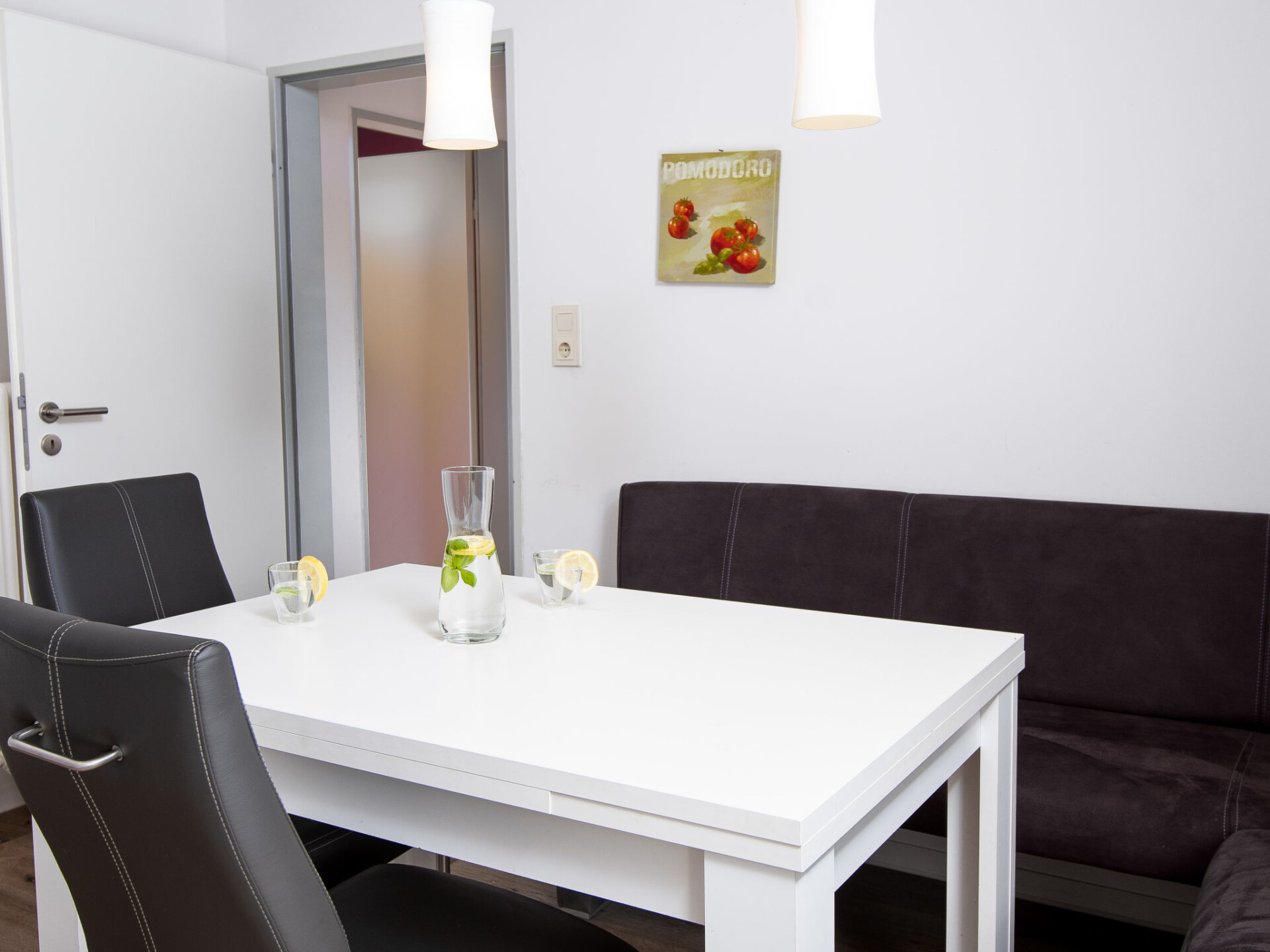 "Seeteufel", appartement 4-kamers 120 m2 op 2 verdiepingen, op de bovenverdieping. Woonkamer 23 m2 met Sat-TV (Flatscreen TV), radio. Keuken 12 m2 (oven, afwasmachine, 4 keramische glas kookplaten, broodrooster, waterkoker, magnetron, elektrische koffiemachine) met eethoek. Uitgang naar het balkon. Douche/WC, dubbele wastafels. Zolderverdieping: 2 kamers 16 m2, met afgeschuinde daken, elke kamer heeft 1 2-pers bed (2 x 90 cm, lengte 200 cm). 1 kamer 13 m2, met afgeschuinde daken met 2 bedden (90 cm, lengte 200 cm). Aparte WC. Balkonmeubilair, serre. Ter beschikking: kinderstoel, babycommode. Internet (Internet (WiFi), gratis). Niet rokers woning. Maximaal 1 huisdier/hond toegestaan. Rookmelders.