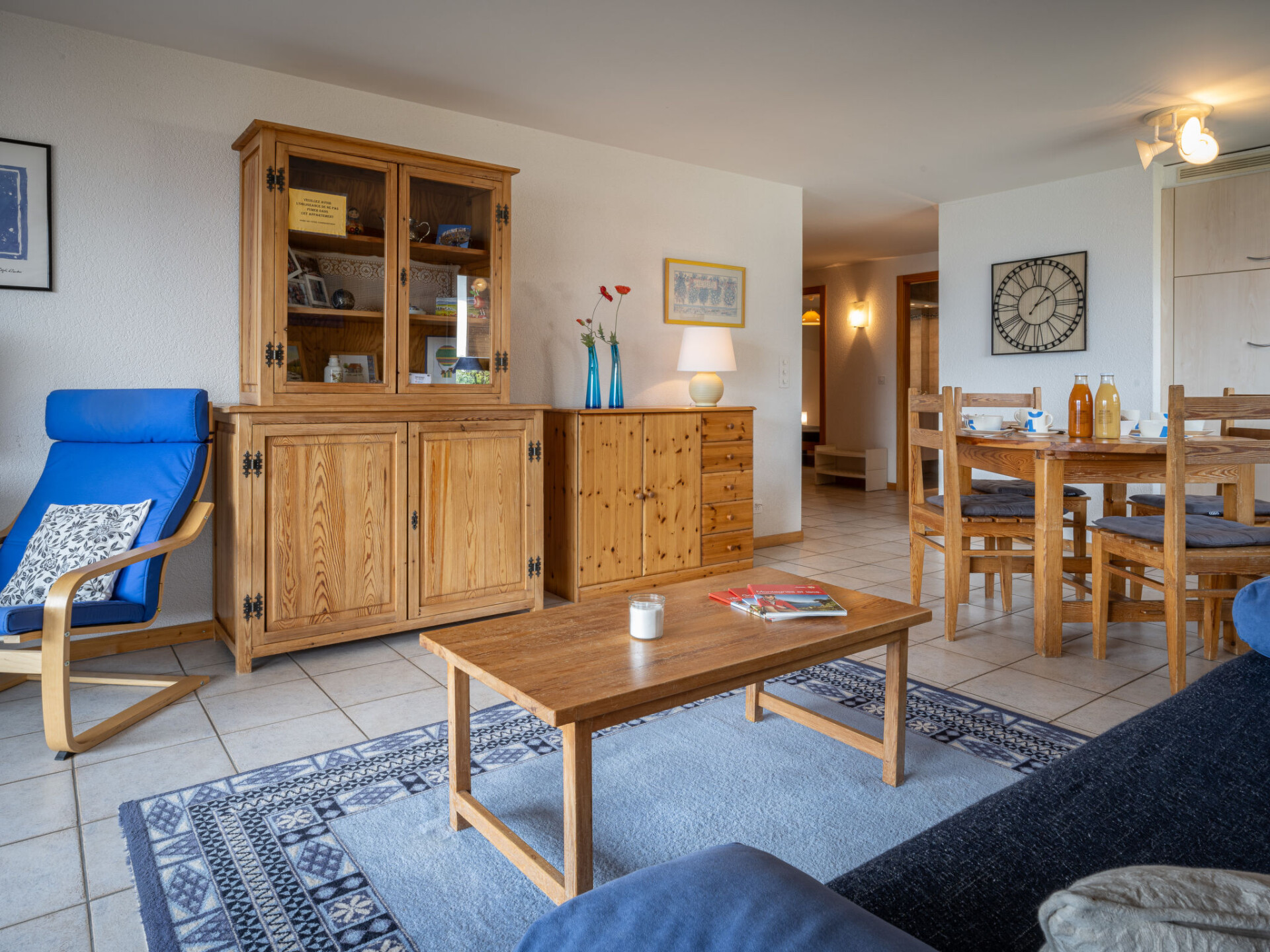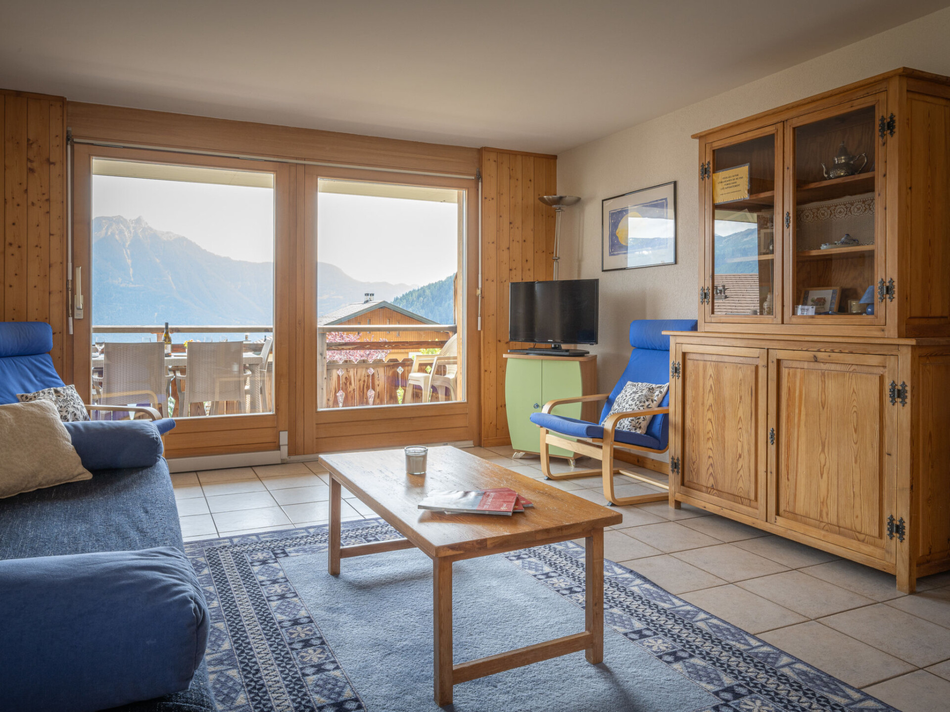 "Seya 19", appartement 3-kamers 85 m2 op de 1e verdieping, op het zuidoosten gelegen. Zeer comfortabel en smaakvol ingericht: hal. Woon-/eetkamer met 1 divanbed en Kabel-TV (Flatscreen TV), video en DVD. Uitgang naar het balkon, op het zuiden. 1 kamer met 2 bedden (90 cm, lengte 190 cm). 1 kamer met 1 2-pers bed (1 x 160 cm, lengte 200 cm). Open keuken (oven, afwasmachine, 4 keramische glas kookplaten, waterkoker, magnetron, elektrische koffiemachine, raclette oven, fondue Set (kaas)). Bad/WC, dubbele wastafels. Balkon 14 m2, op het zuiden gelegen. Balkonmeubilair, ligstoelen (1). Zeer mooi uitzicht op de bergen. Ter beschikking: kinderbed tot 3 jaar, haardroger. Internet (Internet (WiFi), gratis). Garage nr. 19 (1 Auto), hoogte 260 cm, breedte 250 cm. Niet rokers woning.