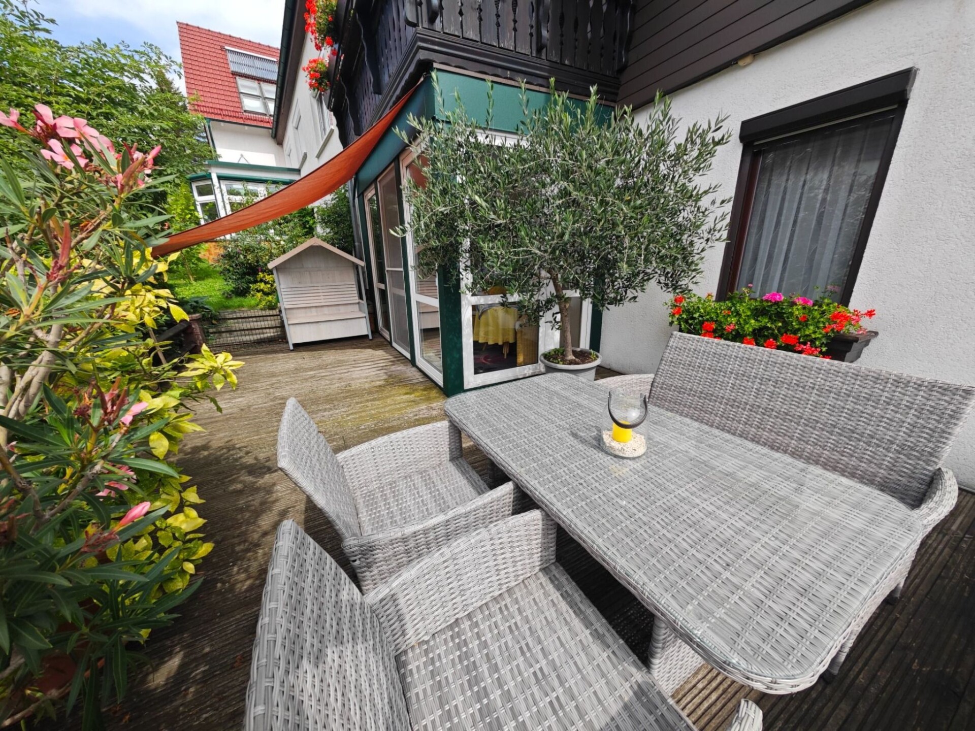 Welcome to your dream holiday flat in Fischbach, an idyllic village with a unique location at the foot of the Großer Inselsberg and in close proximity to Bad Tabarz. Our charming domicile not only offers you a breathtaking natural backdrop, but also the perfect starting point for unforgettable excursions and hiking adventures in the surrounding area. Enjoy the tranquillity and beauty of the Thuringian countryside, which will make your holiday heart beat faster.The 4-star holiday flat on the ground floor welcomes you with a high-quality and cosy interior. You have free Wi-Fi, satellite TV, a CD/radio combination and a fully equipped fitted kitchen with microwave, toaster, coffee machine, dishwasher and kettle at your disposal. The living ambience is rounded off by a separate bedroom, a modern shower room/WC, an inviting conservatory and a terrace. We also provide bed linen and towels for your comfort.You can completely relax and unwind in the lovingly designed outdoor area. Cosy seating areas, loungers and benches invite you to linger while you enjoy the fresh air and the picturesque view. A barbecue fireplace and a rustic log cabin are available from spring to autumn to round off the day with a cosy get-together.The area surrounding Fischbach offers a wealth of recreational and leisure opportunities. Discover the historic cities of Thuringia such as Eisenach, Gotha, Erfurt and Weimar, which are all easily accessible by train. The nearest stop is only 7 km away. The neighbouring town of Bad Tabarz offers a wide range of shopping facilities and an adventure pool, and a trip on the Thuringian Forest Railway to Gotha promises to be an unforgettable experience. For hiking enthusiasts, we are also happy to offer individual tours and transfers to the most beautiful starting points in the neighbourhood.Make our holiday flat your personal retreat in the heart of Thuringia and enjoy the perfect combination of holiday enjoyment close to nature and cultural diversity. Look forward to relaxing days in Fischbach, where nature and cosiness await you - an ideal place for all those who want to escape from everyday life and immerse themselves in the fascinating landscape and history of Thuringia.