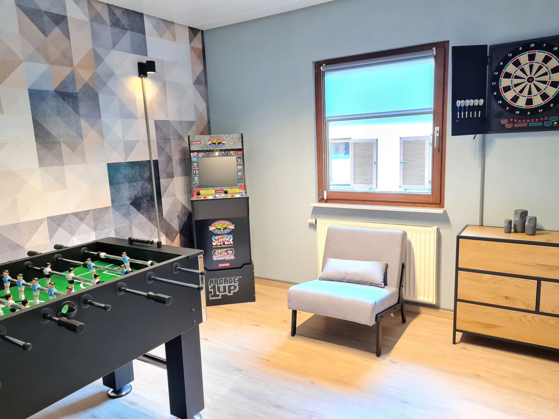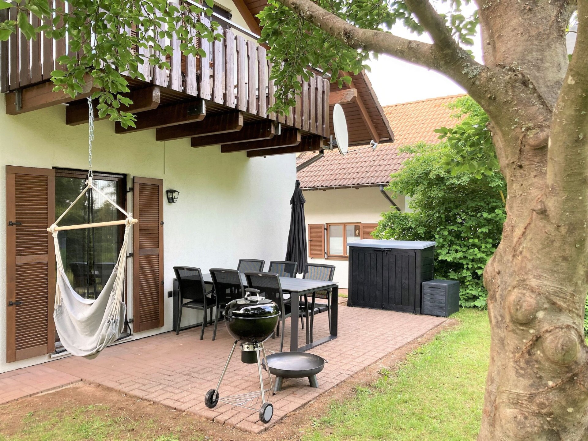 Discover the completely modern renovated holiday home Skoft, located in an idyllic holiday home park in the Seepark Kirchheim, in the middle of the North Hessian Highlands. This charming holiday home offers the perfect combination of modern comfort and natural surroundings. With its lovingly furnished interior and direct view of the neighbouring forest, the holiday home is an ideal retreat for nature lovers and families.The interior of the Skoft holiday home is at its best: freshly renovated and furnished with care, it promises an inviting and cosy ambience. Here you will find everything you need for a relaxing holiday. The modern facilities leave nothing to be desired and provide the ideal setting to relax after a day of adventure in the region.Outside the holiday home, a beautiful garden invites you to linger. Surrounded by its own lawn and with a direct view of the forest, the garden offers plenty of space for children to let off steam and discover nature. The holiday home plots at Seepark Kirchheim are perfectly integrated into the natural landscape and allow an undisturbed retreat into the peace and beauty of nature.The area surrounding the Skoft holiday home is characterised by the picturesque North Hessian Highlands, which, as part of the Red Riding Hood region, offers a wealth of cultural and natural experiences. Discover well-developed hiking and cycling trails that lead through the charming landscape, visit museums that offer insights into the history of the region or explore the half-timbered old town of Bad Hersfeld. With its location in the Kirchheim lake park, the holiday home also offers access to a wide range of leisure activities, from water sports on the nearby lake to hiking trails.Make Ferienhaus Skoft your next holiday destination and enjoy an unforgettable time in one of Germany's most beautiful regions. Here, where modern living comfort meets the magical surroundings of the North Hessian Highlands, countless opportunities for relaxation and leisure activities await you. Book your stay now and experience a holiday that you will remember for a long time to come.