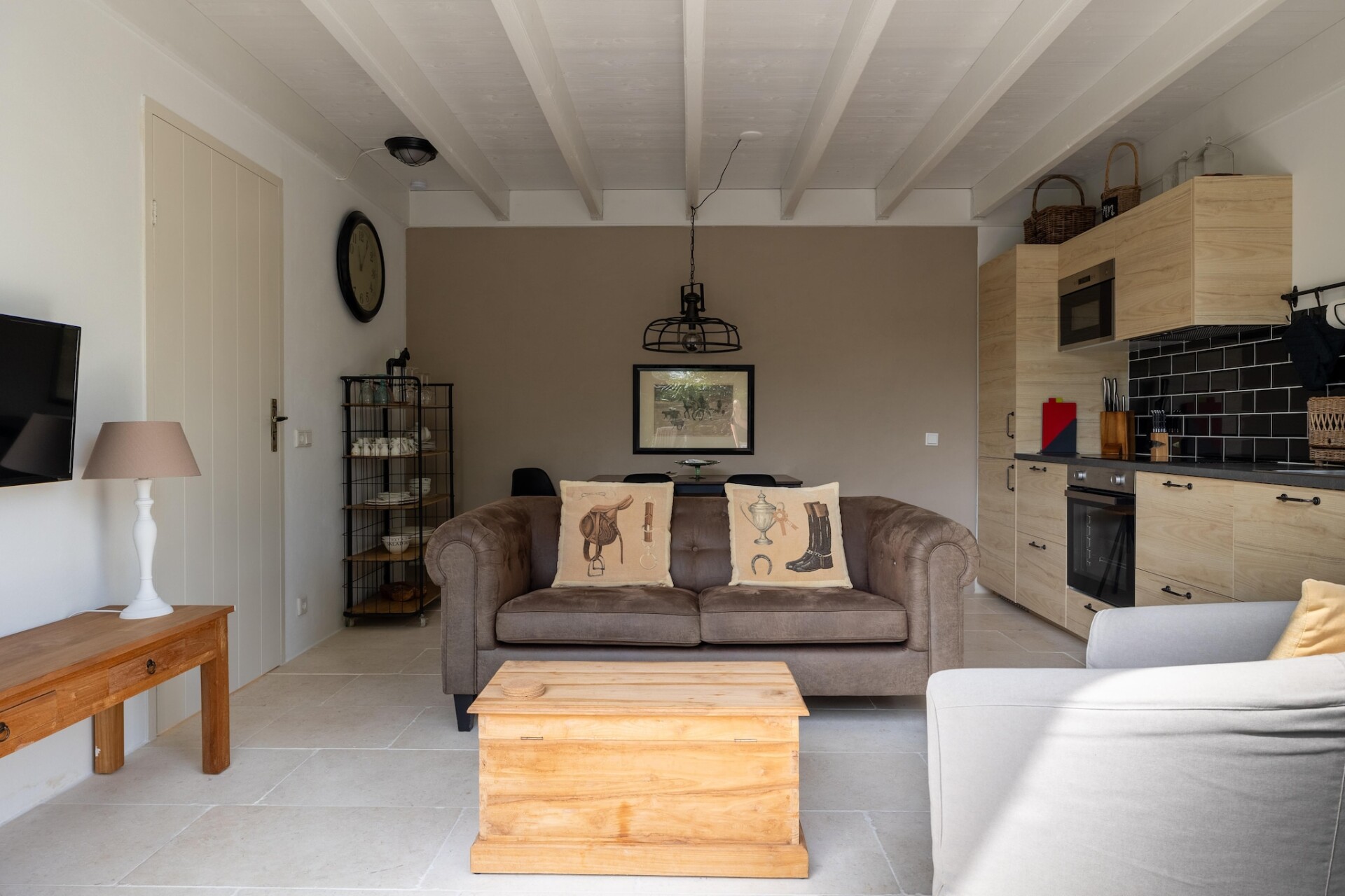 Stap binnen in dit charmante huis en word verwelkomd door een landelijke, klassieke sfeer die doet denken aan een authentiek koetshuis. De woonkamer is comfortabel ingericht met een tweezitsbank en een aparte stoel rond de salontafel in de televisiehoek. De eettafel heeft drie stoelen en een kruk voor gezellige maaltijden. De open keuken is volledig uitgerust met moderne apparatuur, waaronder een inductiekookplaat, magnetron, oven, vaatwasser, koelkast, vriezer, broodrooster, Senseo-koffiezetapparaat, waterkoker en Quooker om aan al uw kookbehoeften te voldoen. Het eerste toilet is handig gelegen op de begane grond.