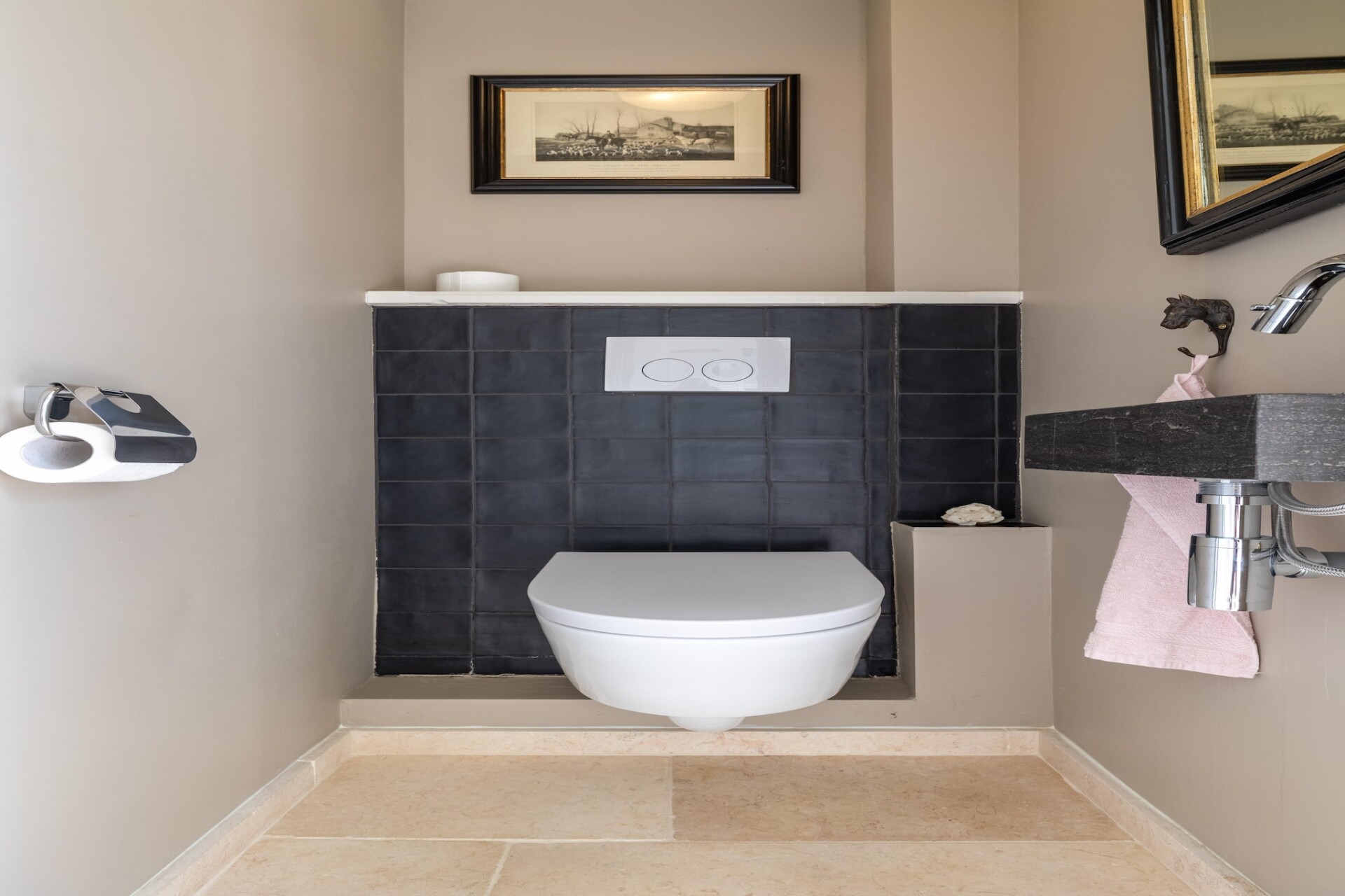 De open badkamer biedt ultiem comfort met een inloopregendouche, een tweede toilet en een dubbele wastafel. Voor extra gemak bevindt zich op de begane grond een berging met een wasmachine.