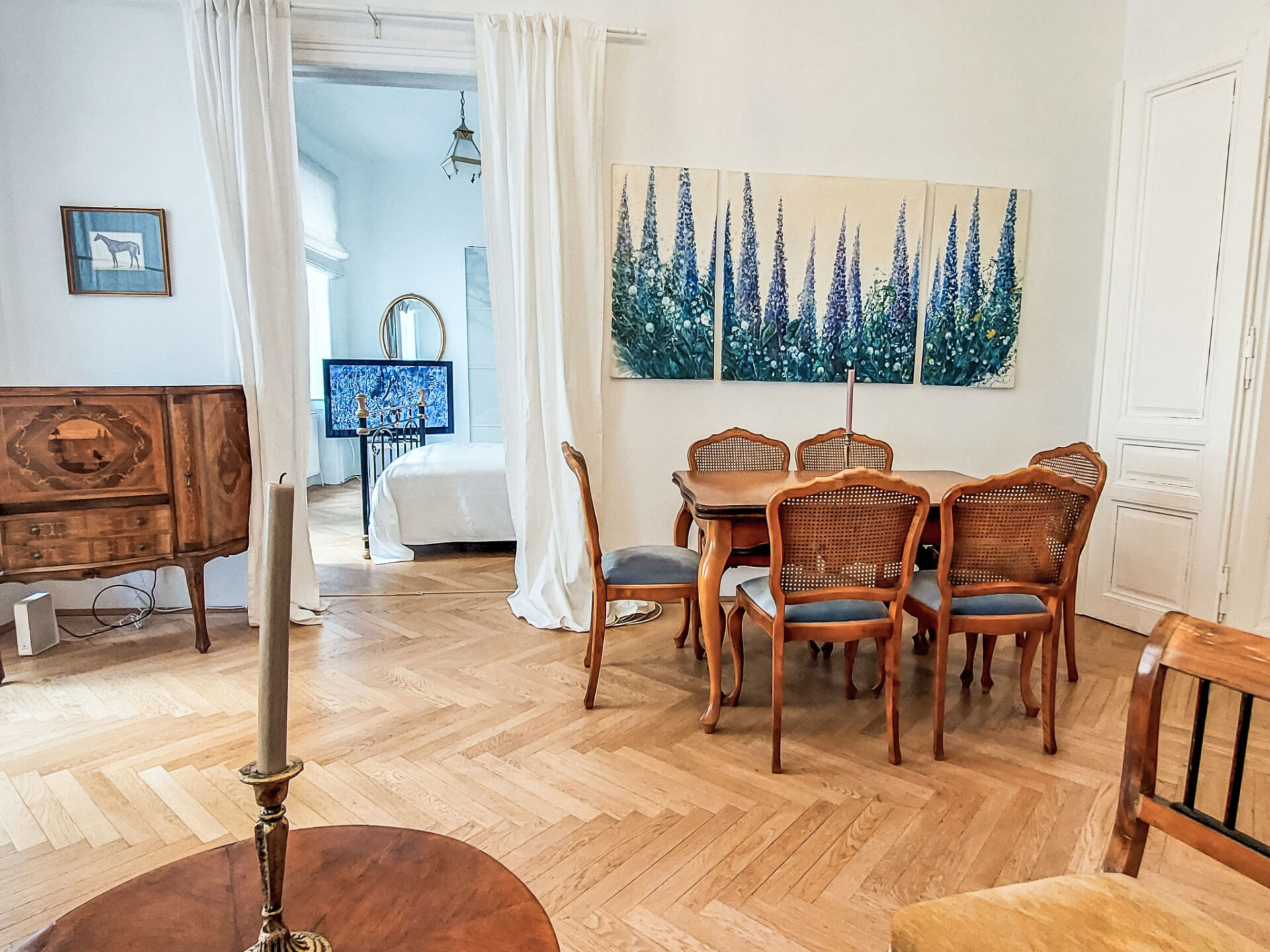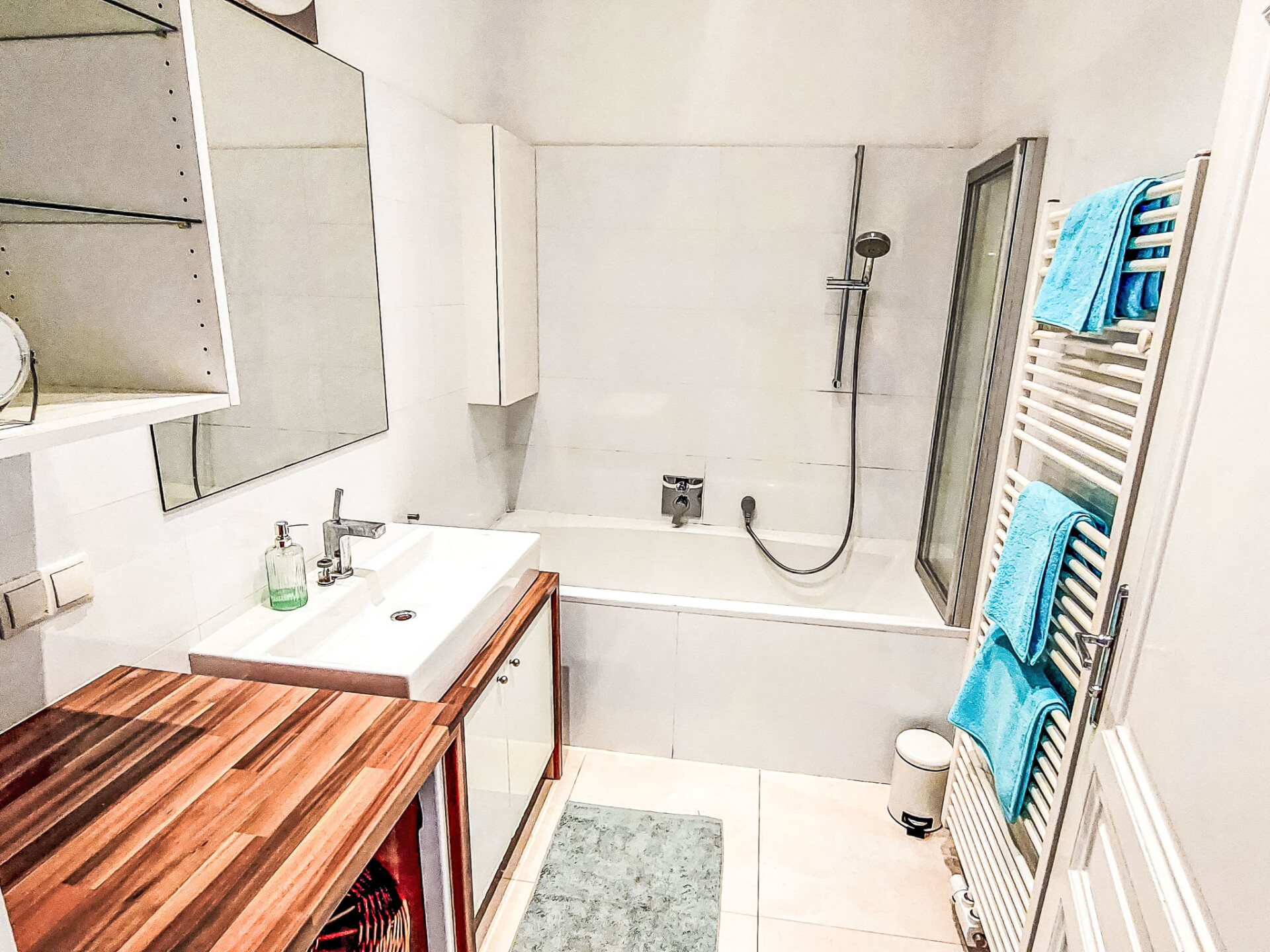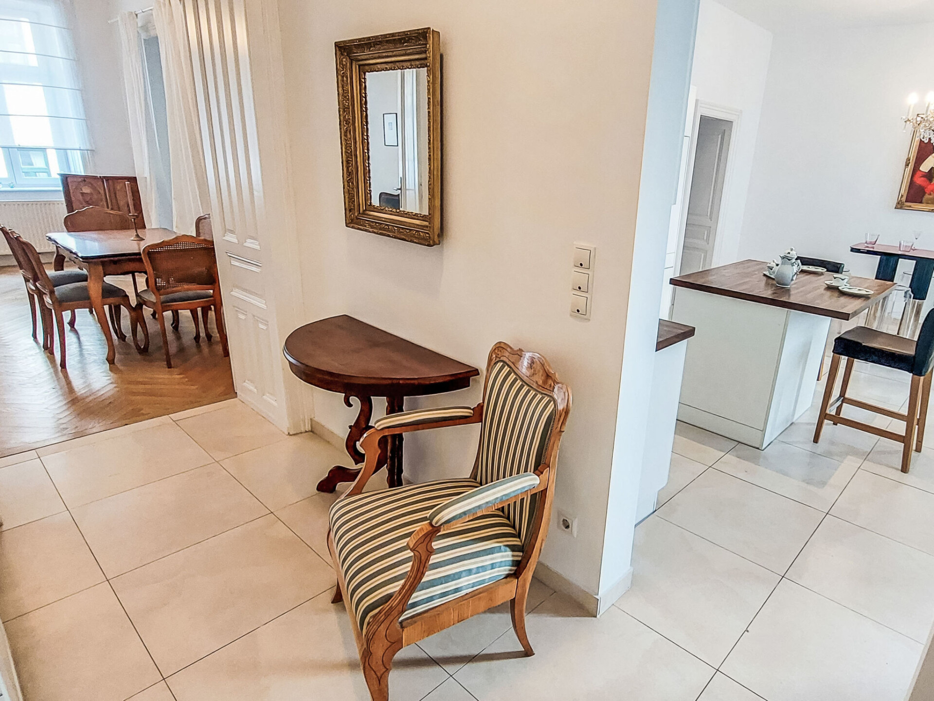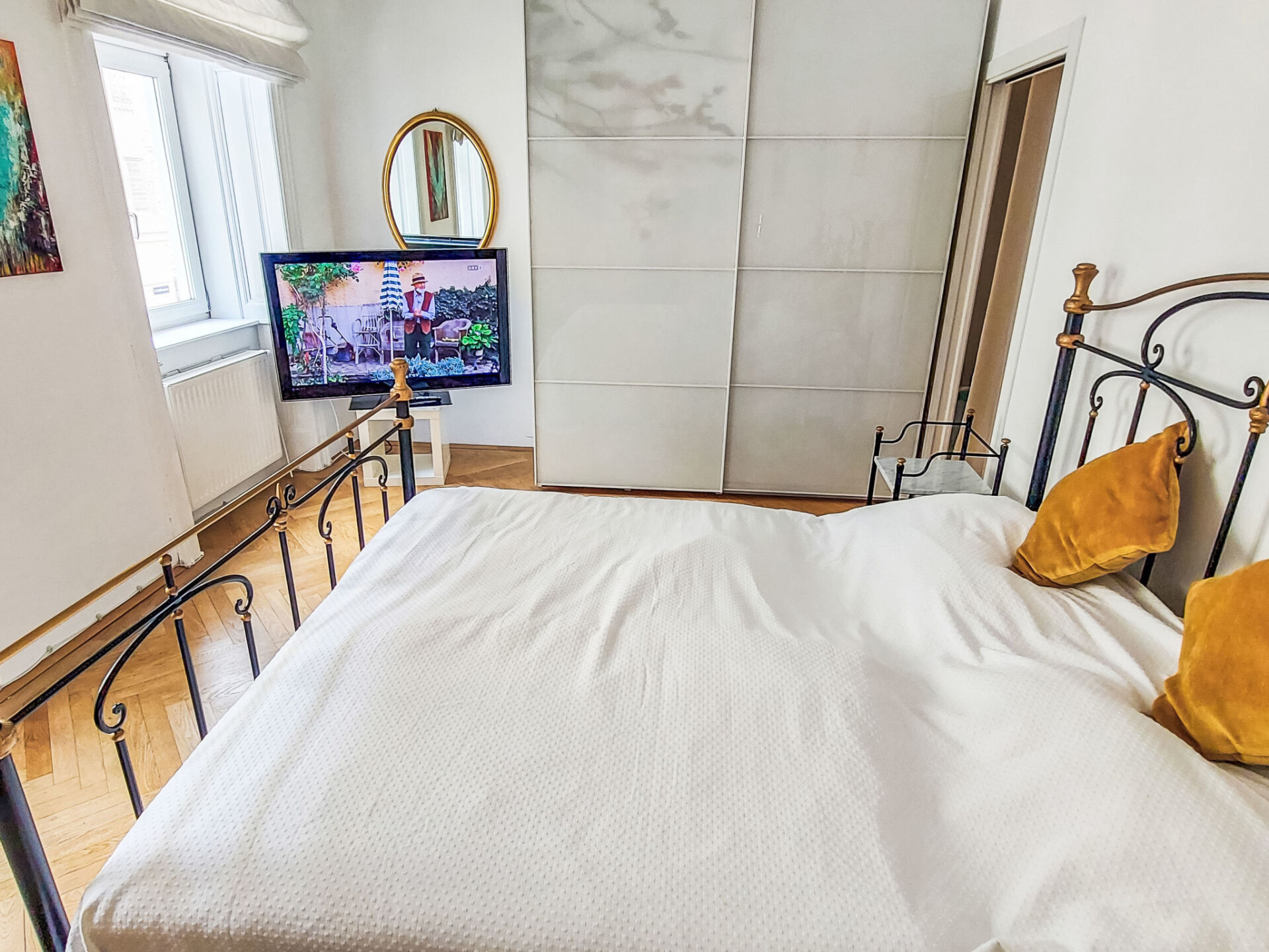 "Sobieskiplatz", appartement 3-kamers 81 m2 op de 1e verdieping. Ruim en licht, gerenoveerd in 2022, zeer mooi en stijlvol ingericht: groot hal met aparte WC. Woon-/slaapkamer met 1 2-pers bed, TV en internationale TV-zenders (Flatscreen TV). Groot woon-/eetkamer met 1 2-pers divanbed. Woonkeuken (oven, afwasmachine, 4 keramische glas kookplaten, broodrooster, waterkoker, elektrische koffiemachine). Uitgang naar het balkon. Badkamer. Verwarming. Balkon 6 m2. Balkonmeubilair. Ter beschikking: wasmachine, droger, strijkijzer, haardroger. Internet (WiFi, gratis).