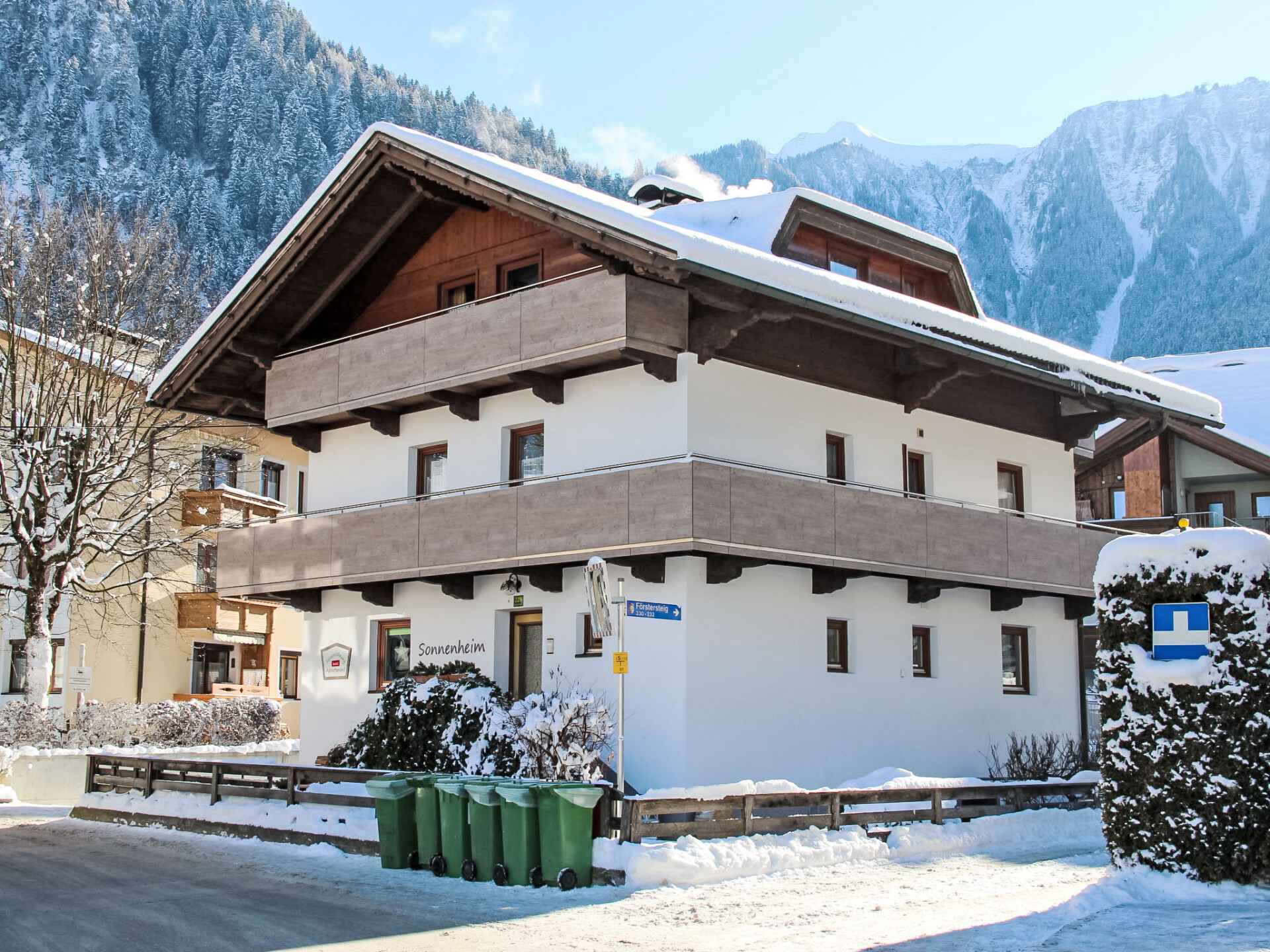 Mayrhofen: Huis met 3 woningen "Sonnenheim". In de plaats, 100 m van het centrum van Mayrhofen, centrale, zonnige ligging, 800 m van het skigebied. In het huis: Internet (WiFi), berging voor ski's, centrale verwarming. Toegangsweg tot aan het huis. Parkeerplaats (beperkt aantal) bij het huis. Winkel 300 m, levensmiddelenwinkel, restaurant 100 m, bushalte "Mayerhofen Europahaus" 76 m, treinstation "Mayerhofen Bahnhof" 400 m, openluchtzwembad, overdekt zwembad 600 m. Tennishal 100 m, kabelbaan 800 m, skibushalte 150 m, ijsbaan 600 m. Vergelijkbare accommodaties kunnen worden geboekt. Het huis ligt op slechts een steenworp afstand van het voetgangersgebied en de Penkenbahn.