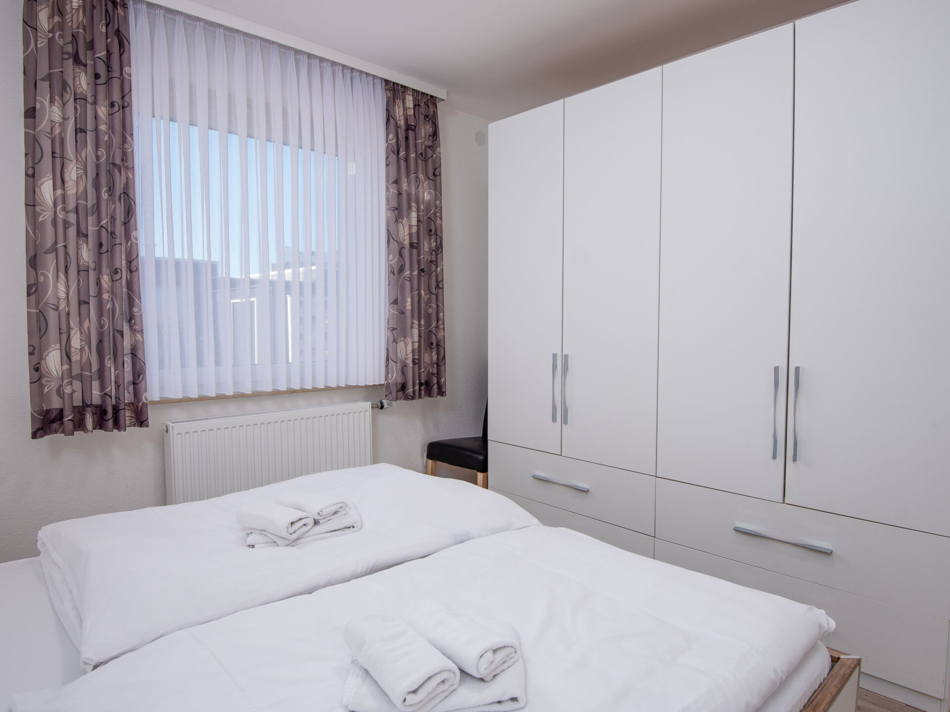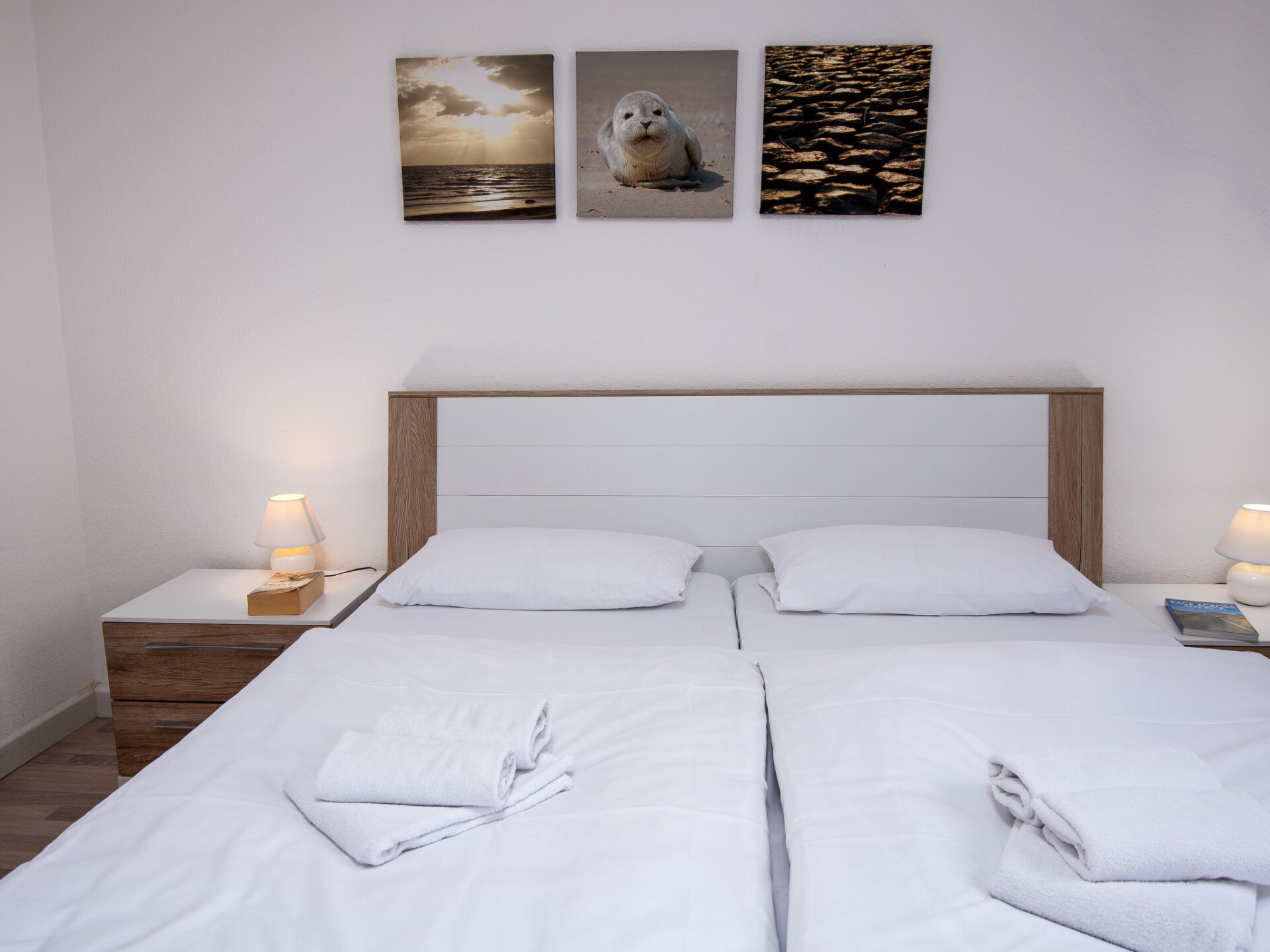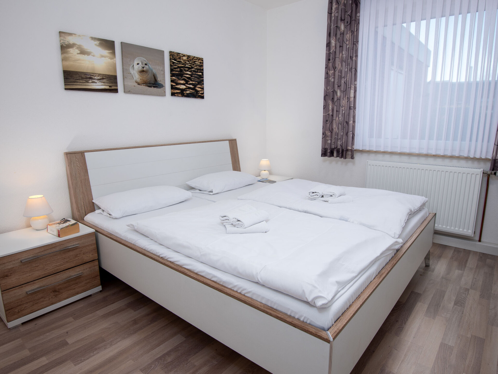 Huis in een rij 3-kamers 60 m2, op de begane grond. Het objekt is geschikt voor 2 volwassenen + 2 kinderen. Modern en smaakvol ingericht: woon-/eetkamer 19 m2 met Sat-TV (Flatscreen TV), radio en CD-speler. Uitgang naar het terras. 1 kamer 12 m2 met 1 2-pers bed (2 x 90 cm, lengte 200 cm). 1 kinderkamer 6 m2 met 1 x 2 stapelbedden (90 cm, lengte 180 cm). Keuken (oven, afwasmachine, 4 keramische glas kookplaten, broodrooster, waterkoker, magnetron, elektrische koffiemachine). Douche/WC. Groot terras. Terrasmeubelen. Ter beschikking: strijkijzer, kinderstoel (extra). Internet (Internet (WiFi), gratis). Blu-Ray speler. Rookvrij huis. Rookmelders.