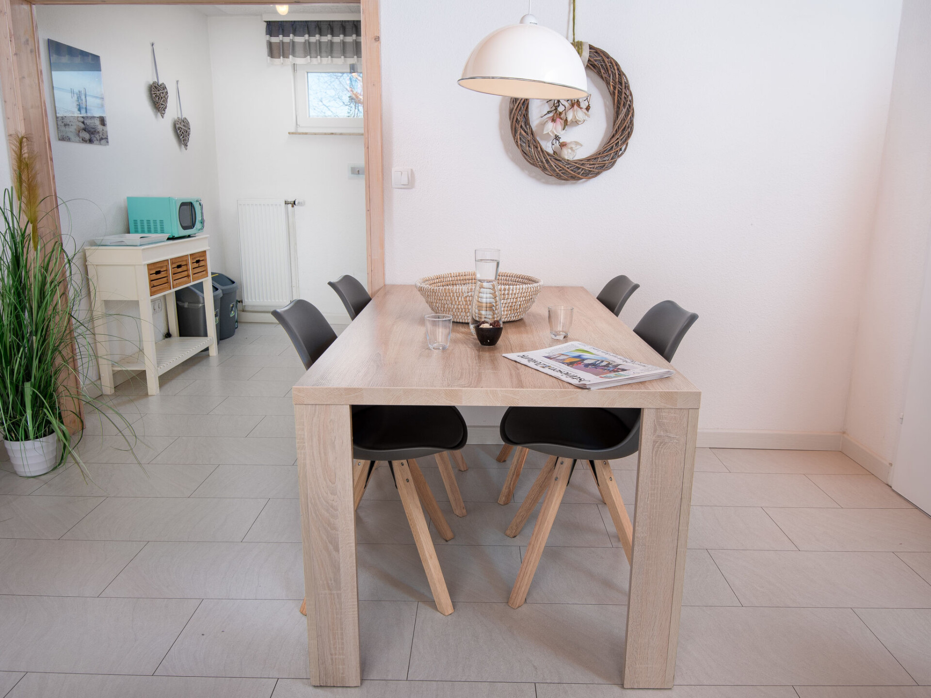 Rijtjeshuis "Sonnenschein". In het centrum van Norddeich, 500 m van zee, van het strand, aan een doodlopende weg. Voor alleengebruik: kleine tuin (omheind). In het huis: centrale verwarming. Parkeerplaats op 10 m. Supermarkt 1 km, restaurant 500 m, bakkerij 500 m, café, bushalte 400 m, treinstation 1.5 km, veerboot 1.5 km, zandstrand 500 m, openluchtzwembad 14 km, overdekt zwembad. Golfterrein (18 holes) 8 km, surfschool 900 m, tennis 2.5 km, kinderspeelplaats 100 m.