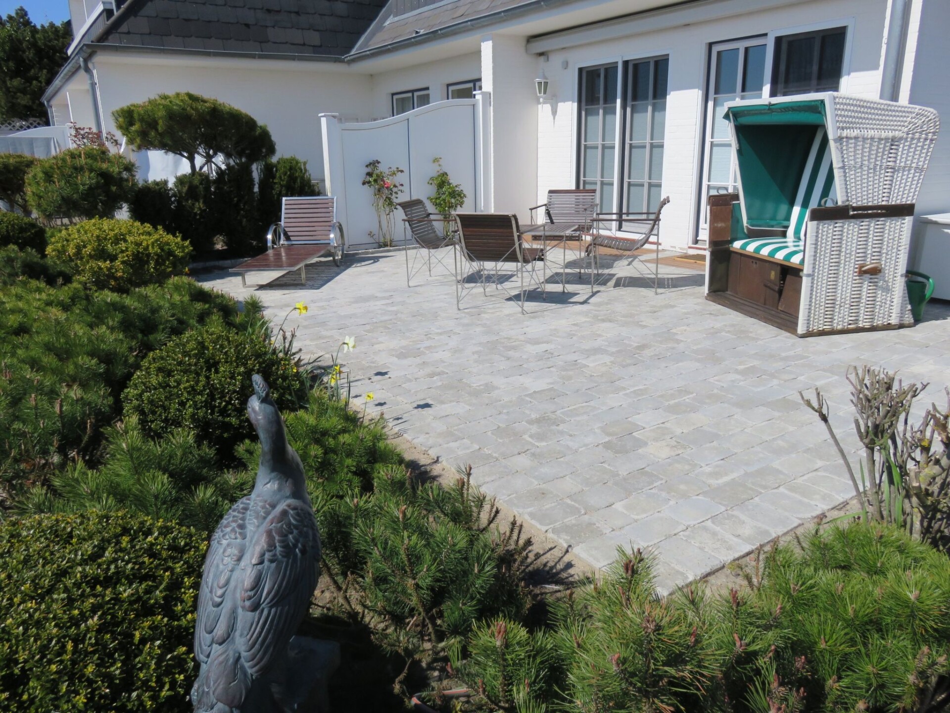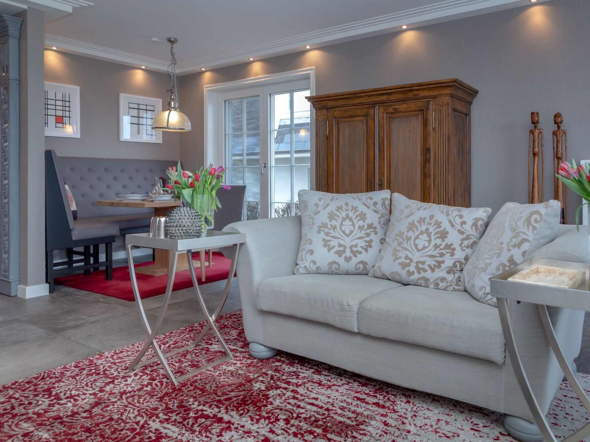 Here you can enjoy Sylt completely undisturbed an intensely. This apartment is very close to the tidal flats. You can look out over the heath and the tidal flats far into Keitum bay and to the horizon, on clear days even as far as Morsum Kliff or the mainland. The idyllic Munkmarsch with its sailing harbour, centrally located on the island, is still an insider’s tip. It is only a stone’s throw to Kampen, a short drive to the town Westerland and it is therefore a popular address for guests who would occasionally like to immerse themselves in island life, whilst still having peace and quiet. If you would like to enjoy the natural beauty of the island, then you should stay in Munkmarsch, close to the tidal flats. Here there is the fragrant heathland, perhaps a rabbit will pop by, and maybe you will see horses galloping across the tidal flats, on the way from Keitum to Kampen. Don’t expect any more traffic than this. Instead enjoy one of the most beautiful views on the island.It also has a lovely big terrace with a garden behind a natural heath site.The 111m² accommodation is for up to four people. It comprises two fabulous shower rooms, a fully-equipped separate kitchen, Wi-Fi, two bedrooms with a double bed, an electric fireplace. It is tastefully furnished in a rustic country style. The apartment offers an accomplished mix of luxury, leisure and modernity.