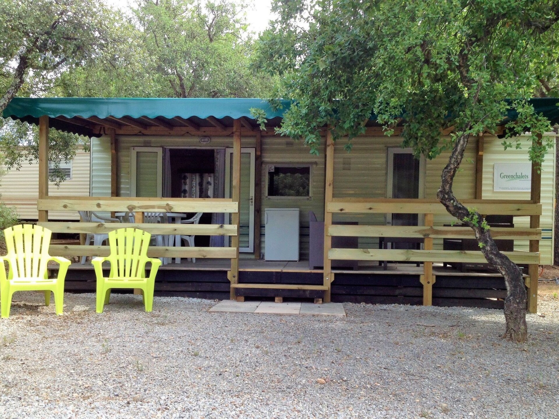 Welkom bij Greenchalets op ANWB Camping Leï Suves aan de Côte d'Azur, uw ultieme bestemming voor een onvergetelijk verblijf in Zuid-Frankrijk. Gelegen op slechts enkele kilometers van de schitterende Middellandse Zee, bieden onze stacaravans (type C) u alle comfort en rust onder de schaduw van kurkeiken. Elk van onze goed uitgeruste caravans biedt ruimte voor vijf personen en staat garant voor een vakantie waar gemak en natuur in harmonie samenkomen.