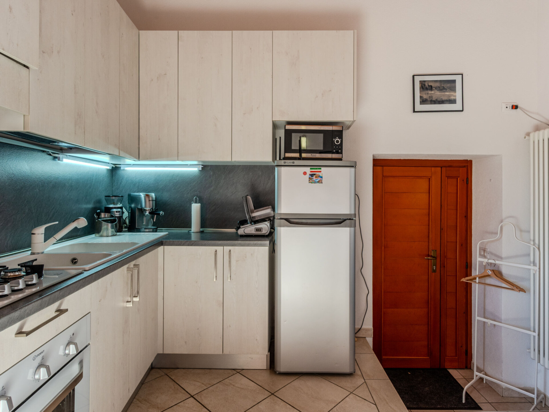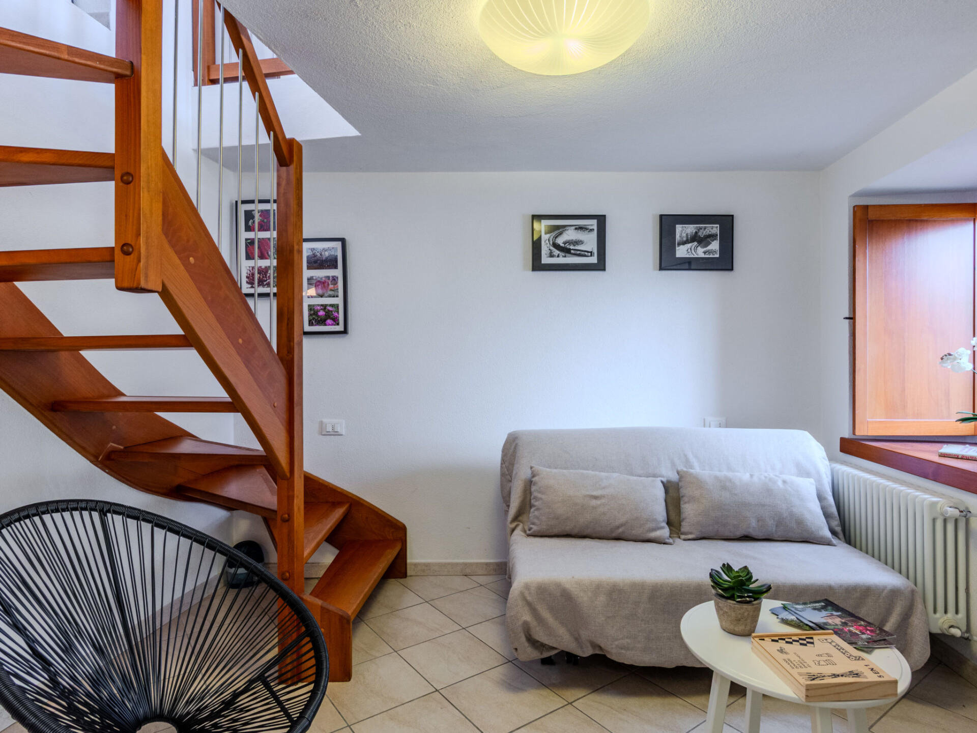 Huis 3-kamers 50 m2 op 2 verdiepingen. Comfortabel en gezellig ingericht: woonkeuken (oven, 4 kookpitten (vlammen), broodrooster, magnetron, elektrische koffiemachine) met eettafel. Uitgang naar het balkon. Douche/bidet/WC. Souterrain: 1 2-pers. kamer. Open woon-/slaapkamer met 1 divanbed (140 cm), 1 opklapbed en aparte WC. Terras. Terrasmeubelen. Zeer mooi uitzicht op het meer en het landschap. Ter beschikking: wasmachine, haardroger. Internet (WiFi, gratis). Rookvrij huis. Brandblusser. IT013155C237WTBNGT