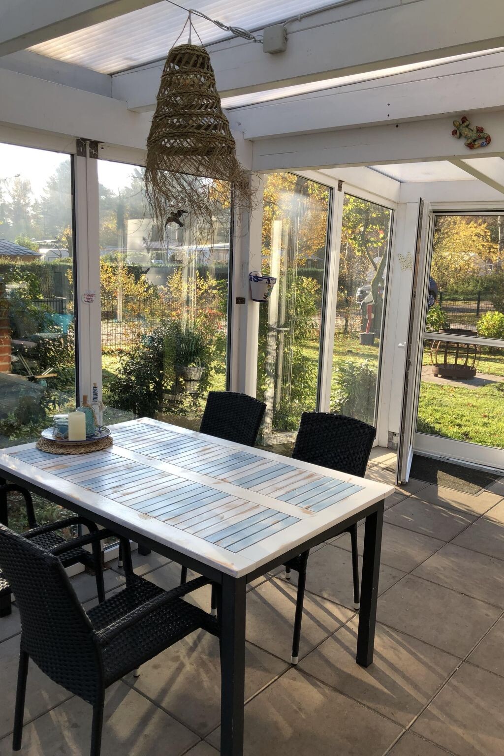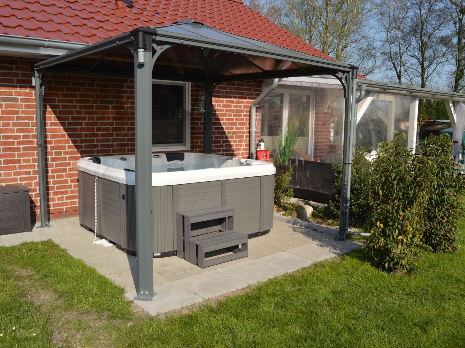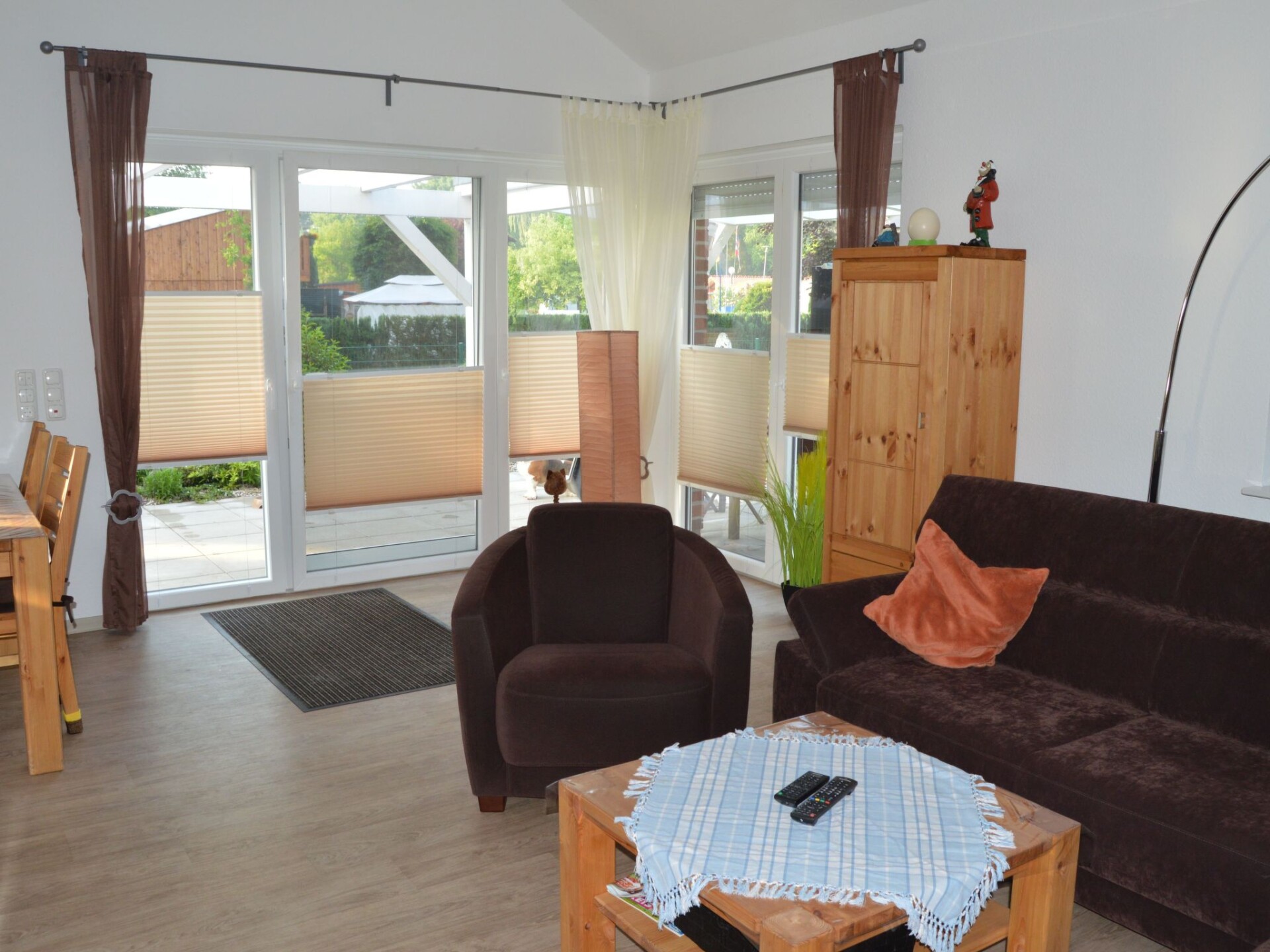 Spend the best time of the year in this comfortable holiday home with plenty of space for up to five people. The detached house is located in the immediate vicinity of the Bernsteinsee holiday park and is in a quiet location on a private road with little traffic.Inside the house you will find a spacious 100 m² without thresholds, making it handicapped accessible. The ground floor consists of the following rooms: An open-plan living room with a sofa bed, an armchair, a large flat-screen TV with DVD player, a hi-fi system, DVDs, CDs and a large dining table with five chairs. Next door is the fully equipped kitchen with hob, oven, dishwasher, microwave, filter coffee machine, capsule coffee machine (Netto), kettle, egg cooker, toaster, sandwich maker, blender, scales, etc. In addition, there are two bedrooms, one of which is furnished with a double bed (consisting of two mattresses of 0.90 m x 2.00 m each) and the second, the children's room, with a single bed (1.00 m x 2.00 m) (also a cot if necessary). From this room you can reach the gallery via a ladder, where there is a further double bed (1.60 m x 2.00 m). The bright daylight bathroom has a walk-in shower, washbasin, washing machine and WC.The holiday home is cleaned by "Pro Aqua" (floors, mattresses, etc.).Conservatory for cosy sitting even in wind and rain (not heated)Whirlpool (March/April to October)with outdoor sauna (can be used all year round)and a frieze shower2 folding bicyclesto be paid on site:Deposit (which you will get back after following the rules)WLANBarbecue = deposit (you will get it back after cleaning)Sauna (coin-operated) 30 min for 1€Flat rate for energy costsThe 550 m² property is fenced with a covered terrace, garden shed, garden furniture, sun loungers, parasol, barbecue, fire bowl, parking facilities and lots of greenery all around. You also have your own outdoor whirlpool at your disposal (April to October). A handcart is available for relaxed excursions to the Bernsteinsee.The distance to the lake is 300 metres. The holiday park offers a kiosk for the most important things. You can pick up your bread rolls and newspapers there in the morning. There is a delicious restaurant 1 km away (themed buffet at weekends). Other restaurants and shops can be found in Spohle (4 km), in Obenstrohe (6 km) and in Varel (9 km). Varel offers a beautiful harbour with shopping facilities, e.g. Bahlsen (factory outlet) and great fish restaurants. The Ammerland has a very well-developed network of cycle paths and hiking trails through a unique park landscape, which is very beneficial for guests who enjoy cycling or walking. For example, it is only 12 kilometres by road to the nearby North Sea resort of Dangast - a cycle path is also available. For all those who long for maritime flair, a trip to Bremerhaven, for example, is a must. It is just 45 kilometres from Conneforde via the new Weser Tunnel. Visit the new climate house, the zoo by the sea, the emigration centre or take a harbour tour through Europe's largest car harbour followed by a stroll through the fishing harbour showcase. If you want to cross wobbly suspension bridges like Indian Jones, or race over 100 metres across the water on a steel cable like James Bond, or swing bravely from one tree to another like Tarzan, the "Forest 4 Fun" climbing forest is just the thing for you. Forest 4 Fun currently offers something for every guest on 8 climbing courses with different levels of difficulty and heights with more than 70 climbing elements. After an introductory course, you can climb the climbing courses independently. The climbing forest is open all year round, 6 to 8 year olds can only climb when accompanied by an adult. The Bernsteinsee fishing lake can be used for fishing. A fishing licence is required. The Almsee trout pond is approx. 1.8 kilometres away. It offers its guests fishing fun in four different pond sizes, one of which is a natural pond. Trout up to 10 pounds are caught daily. Sufficient shelter is provided, even on wet days. In the summer months, the ponds are open daily from 6.30 am to approx. 9.00 pm, on days when it is not so warm, depending on the light.
