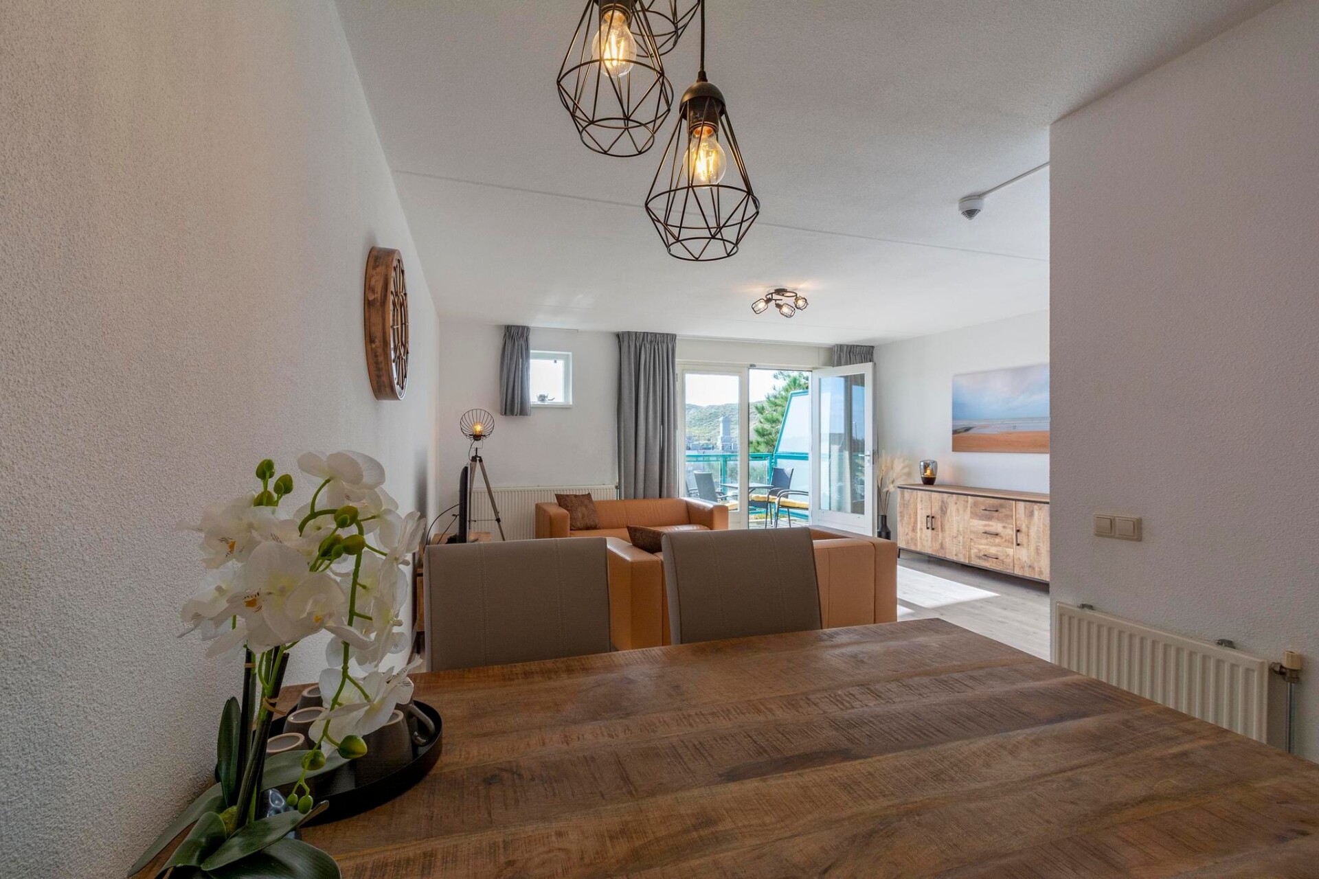 Binnen voelt het appartement licht en uitnodigend aan, met grote openslaande deuren die veel natuurlijk daglicht binnenlaten. De woonkamer is netjes ingericht met een gezellige zithoek en een eethoek waar iedereen na een dag aan zee kan samenkomen. De open keuken is volledig uitgerust en gebruiksvriendelijk, zodat u alles kunt bereiden, van een snel ontbijt tot een ontspannen avondmaaltijd. Twee slaapkamers zorgen voor een goede nachtrust, terwijl de badkamer met ligbad ideaal is om te ontspannen na een strandwandeling of een actieve dag in de buitenlucht.
