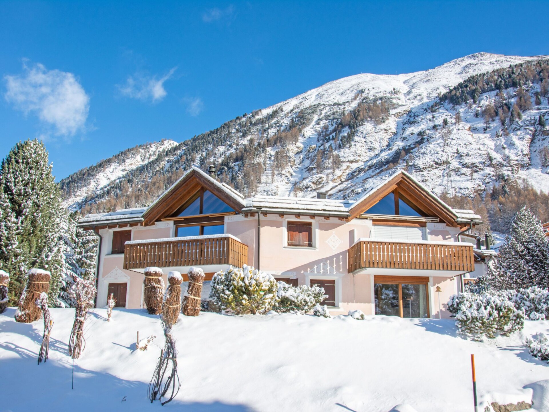 Welcome to our charming holiday flat in Pontresina, an idyllic location that combines natural beauty with comfort. Perfect for a family of four or a small group of friends, this flat offers everything you need for an unforgettable stay. Escape from everyday life and experience the breathtaking scenery of mountain and valley right on your doorstep.Inside the flat, you will find two cosy bedrooms that can be darkened and two bathrooms with showers, offering you and your fellow travellers plenty of privacy and comfort. The shared use of a washing machine and tumble dryer in the building makes your stay even more pleasant. A smart TV provides entertainment in the evening, while the kitchen is equipped with an induction hob, espresso pot, filter and capsule coffee machine, dishwasher and kettle - ideal for self-catering.The outdoor area of the flat on the second floor invites you to linger. Enjoy the fresh mountain air from your own balcony. Your sports equipment is also well catered for: a covered bicycle storage area keeps your bikes safe and dry.The surrounding area offers countless opportunities for active adventurers and nature lovers. With the ski slope, mountain/cable car, ski school and cross-country ski trails just 1000 metres away, this is the perfect place for winter sports enthusiasts. The nearest village centre, shopping facilities and cycle path are also just a stone's throw away, making your holiday experience practical and enjoyable all round.Our holiday flat in Pontresina promises a stay full of peace and relaxation amidst the spectacular scenery of the canton of Graubünden. Whether you want to whizz down the slopes, explore the area on cycle paths or simply enjoy time with your loved ones in a cosy flat - here you will find the ideal retreat for your holiday dreams.