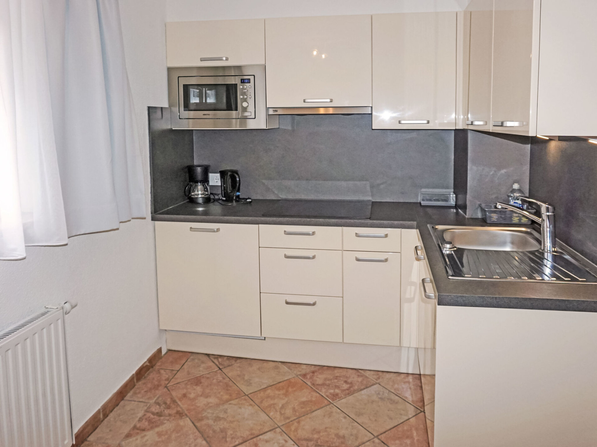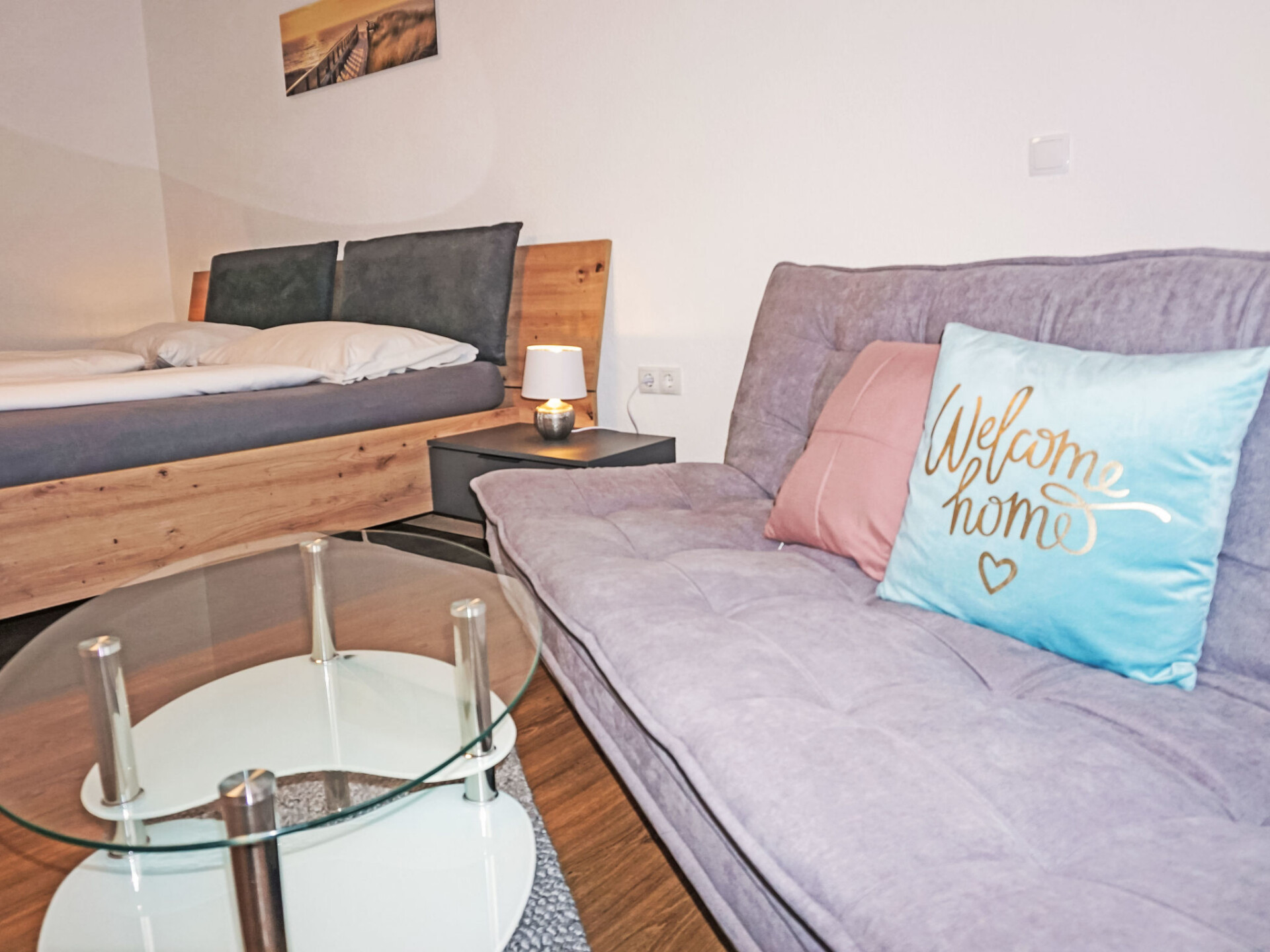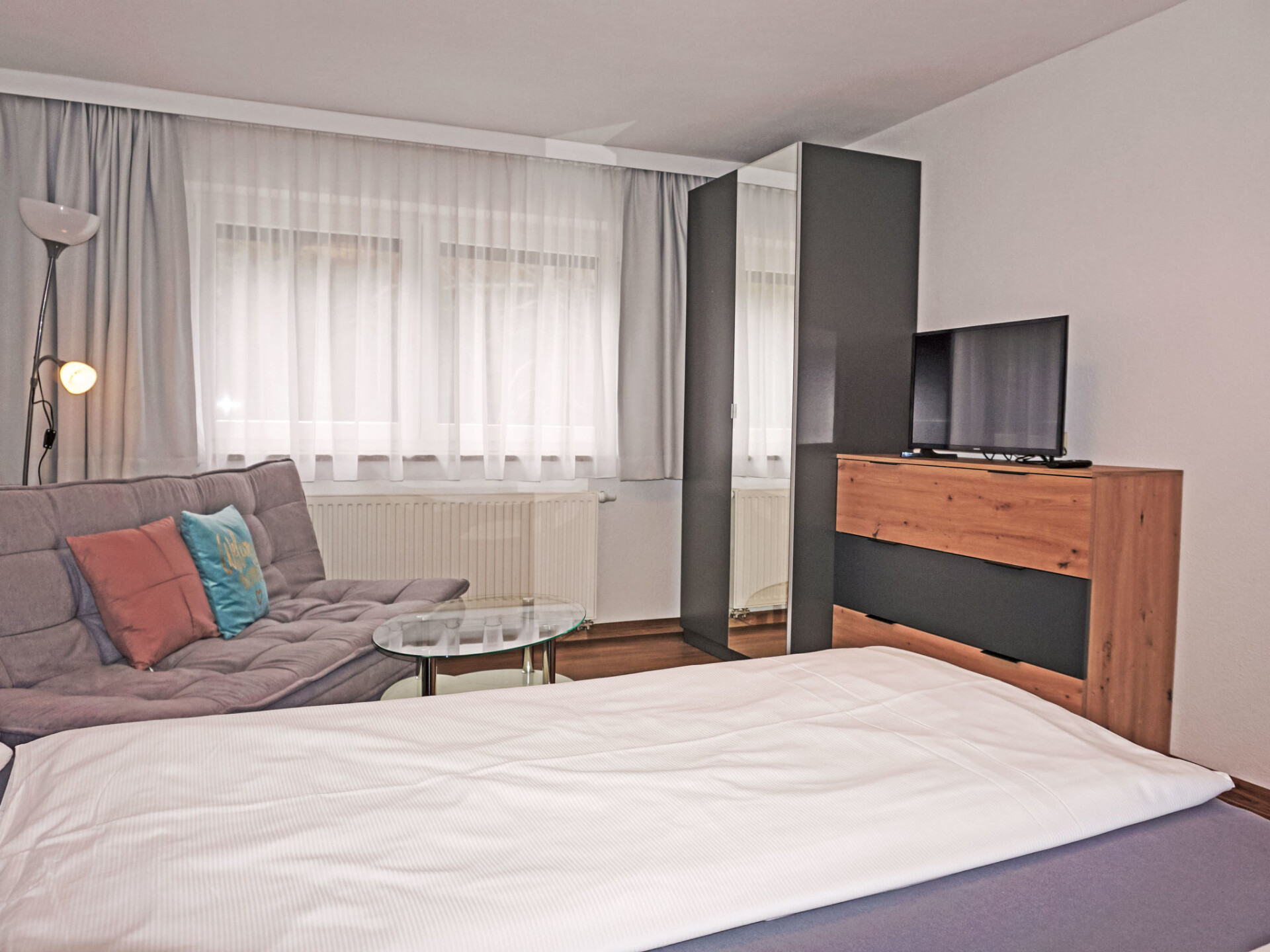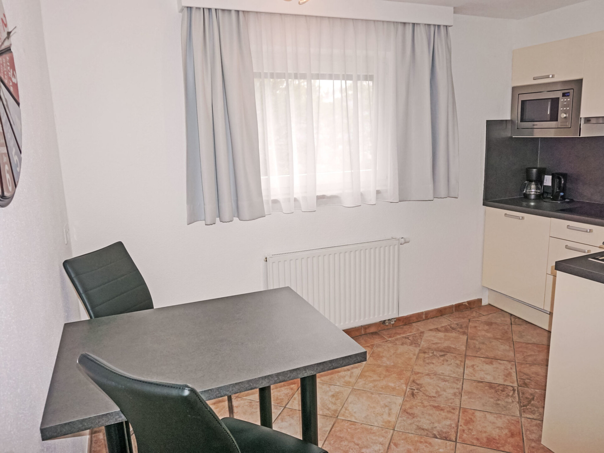 "Studio 1", studio 1-kamer 35 m2. Comfortabel en smaakvol ingericht: woonkeuken (afwasmachine, 4 keramische glas kookplaten, broodrooster, waterkoker, magnetron, elektrische koffiemachine) met 1 bed (180 cm, lengte 200 cm), eettafel en Sat-TV (Flatscreen TV). Douche, aparte WC. Verwarming. Groot terras, op het westen gelegen. Terrasmeubelen, zitgelegenheid. Zijdelings uitzicht op de bergen. Ter beschikking: Internet (Internet (WiFi), gratis). Parkeerplaats bij het huis. Rookmelders.