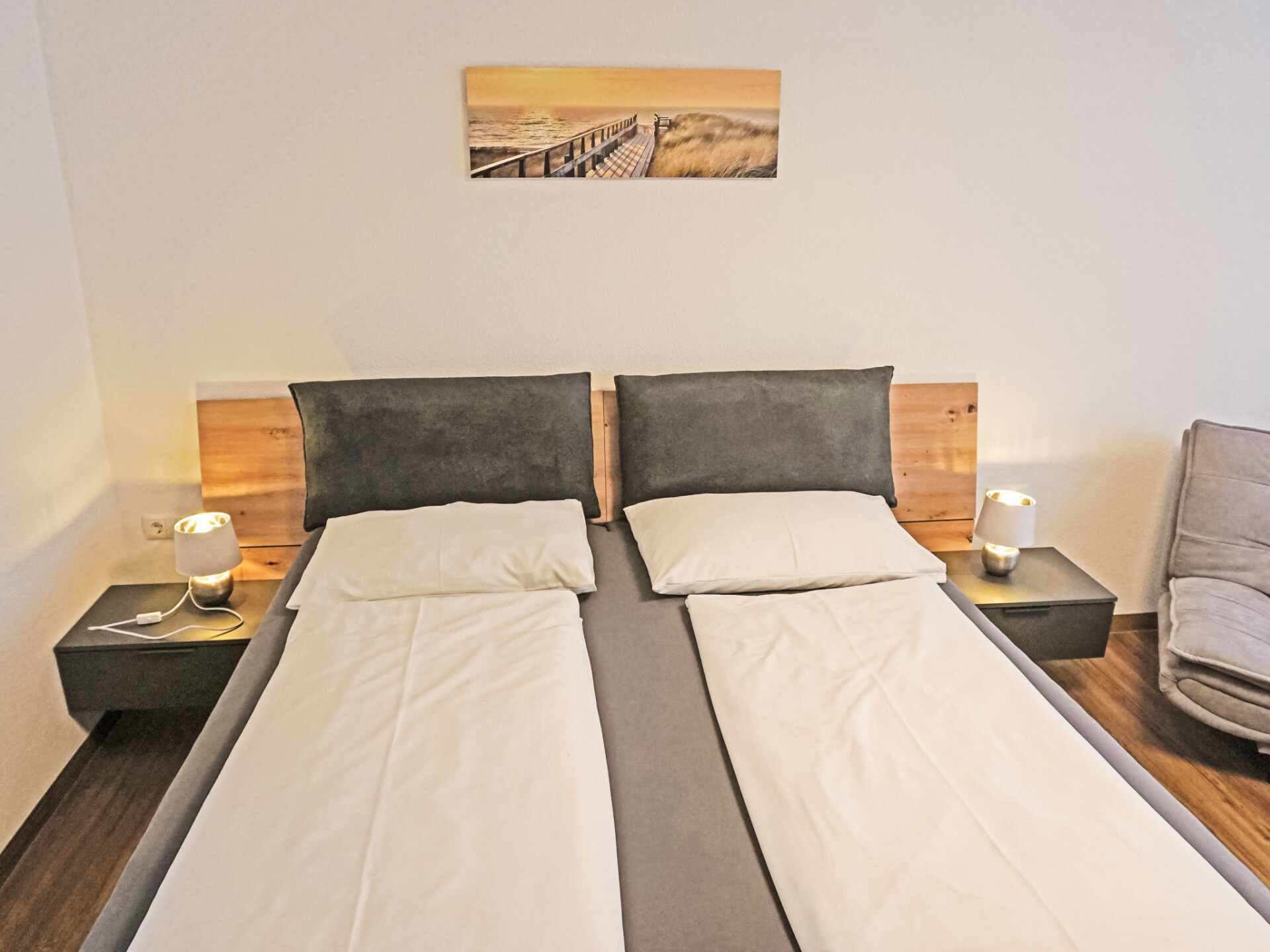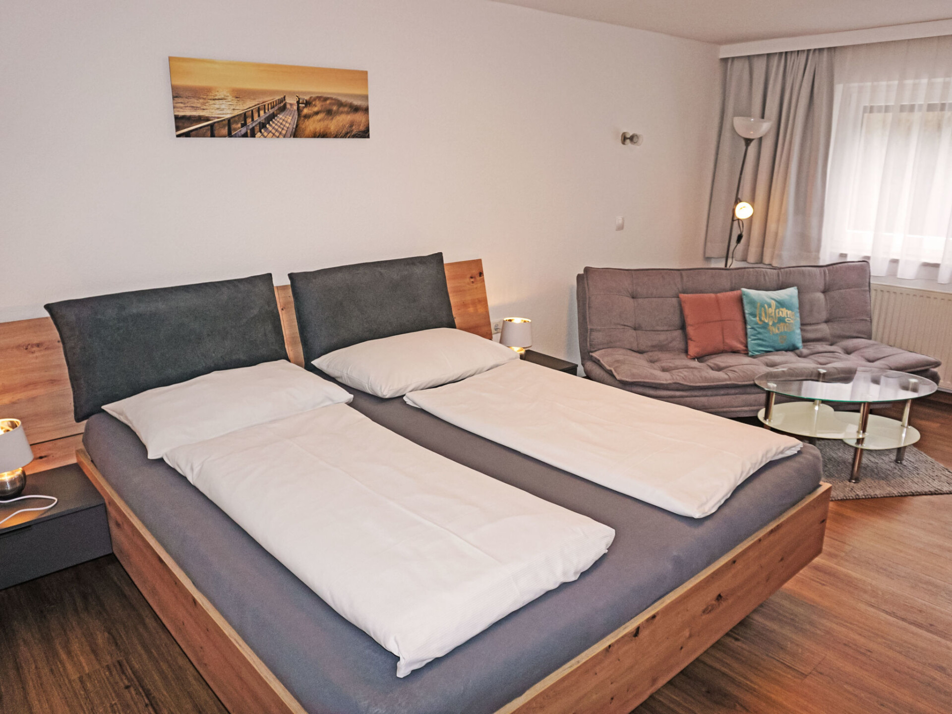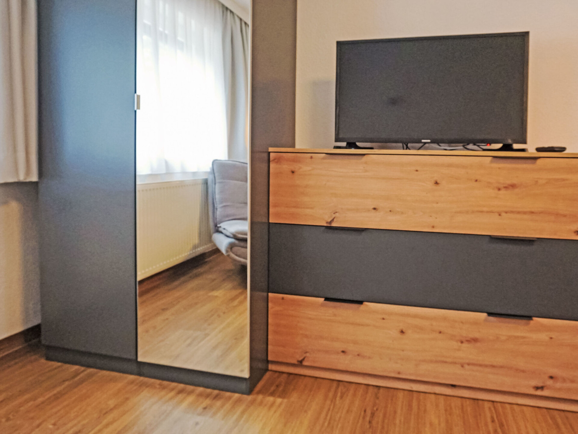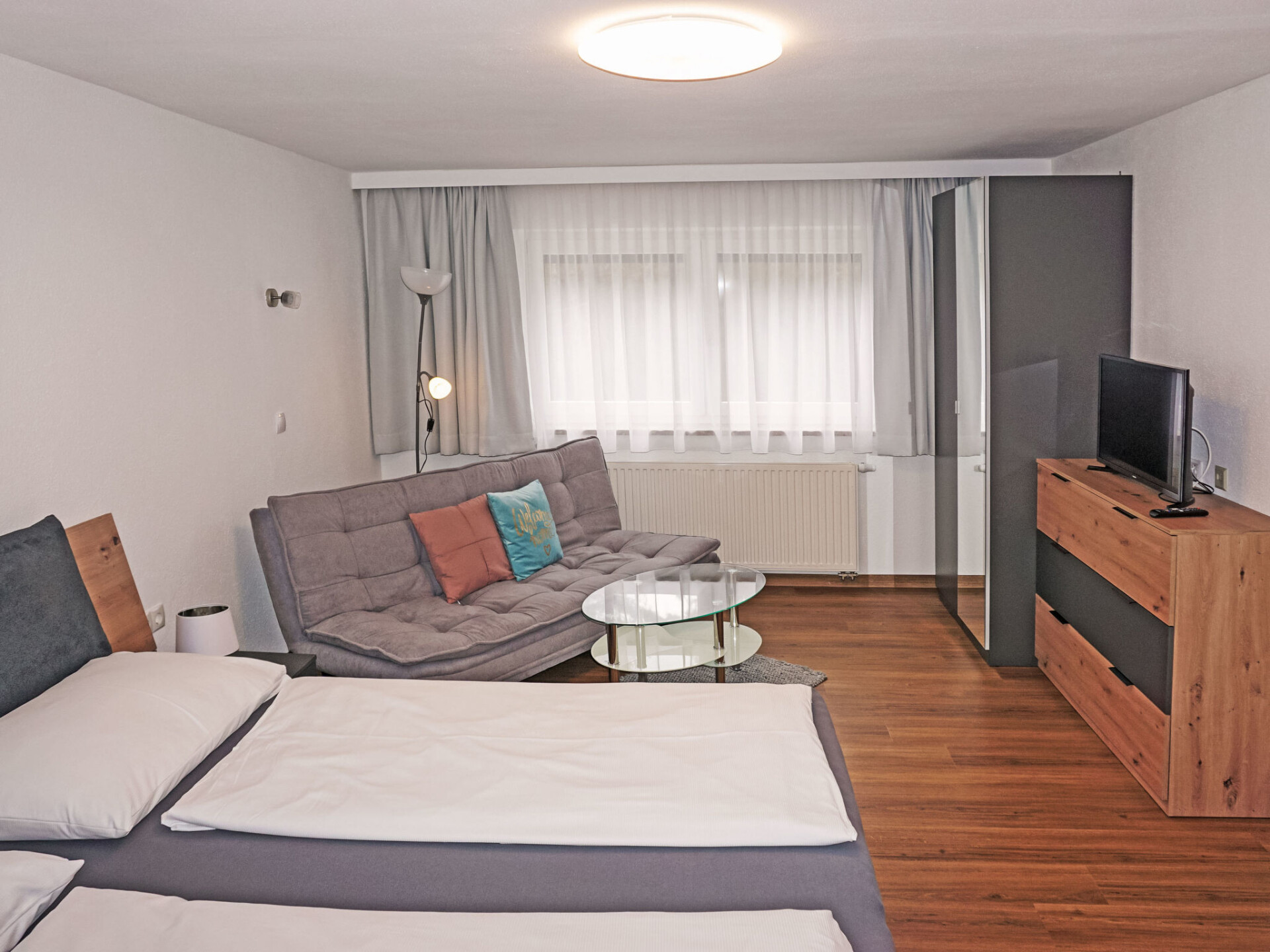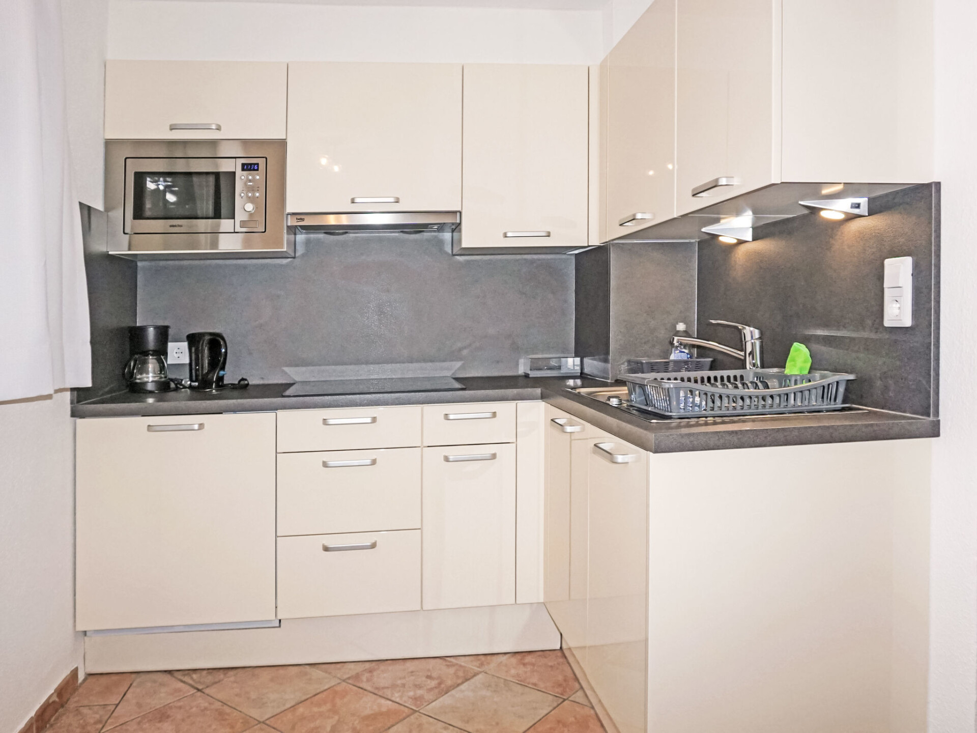 "Studio 1", studio 1-kamer 35 m2. Comfortabel en smaakvol ingericht: woonkeuken (afwasmachine, 4 keramische glas kookplaten, broodrooster, waterkoker, magnetron, elektrische koffiemachine) met 1 bed (180 cm, lengte 200 cm), eettafel en Sat-TV (Flatscreen TV). Douche, aparte WC. Verwarming. Groot terras, op het westen gelegen. Terrasmeubelen, zitgelegenheid. Zijdelings uitzicht op de bergen. Ter beschikking: Internet (Internet (WiFi), gratis). Parkeerplaats bij het huis. Rookmelders.
