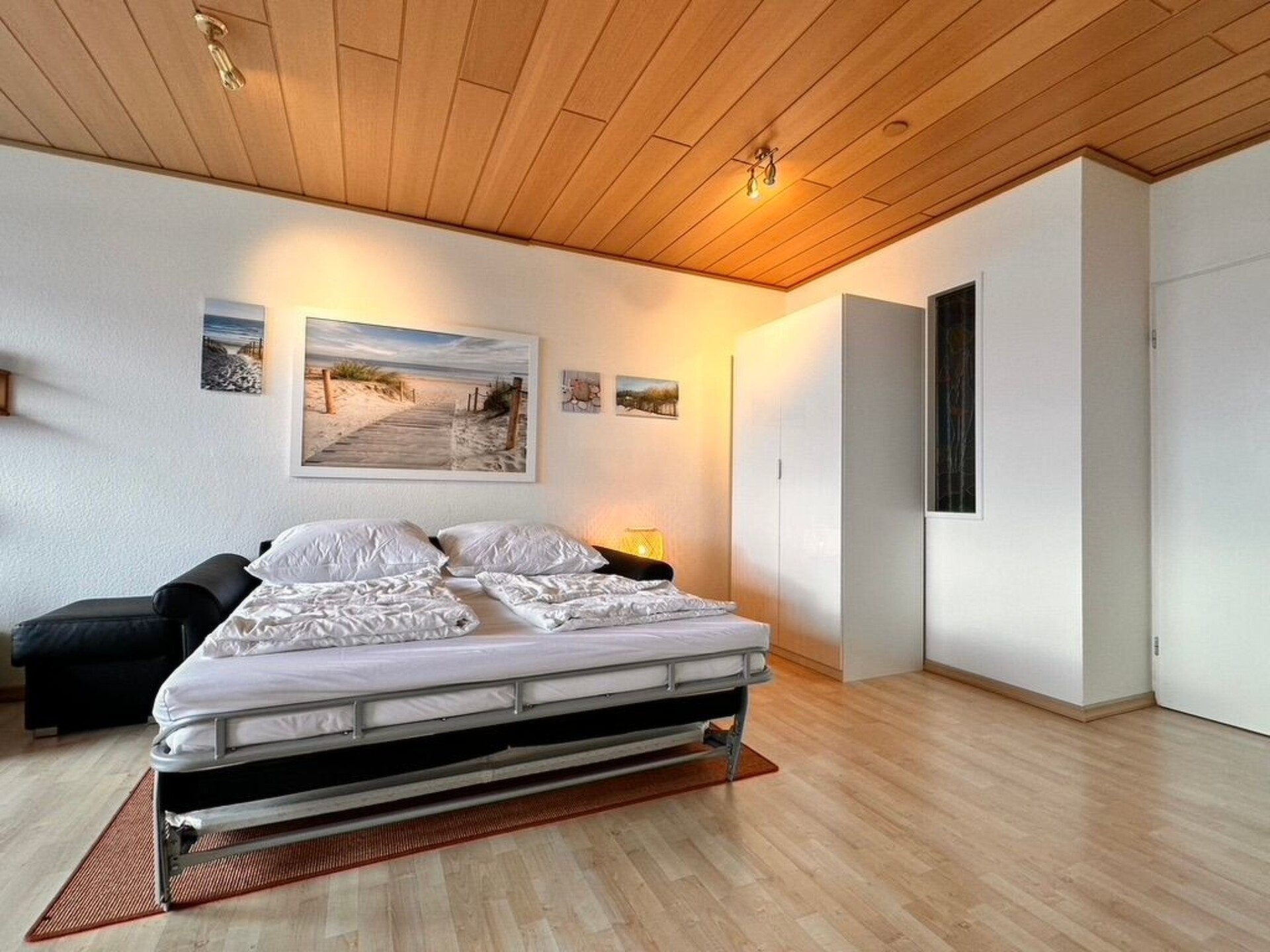 Maximaal 3 huisdieren/honden toegestaan. Discover the ideal accommodation for your next trip to the Baltic Sea coast in Burg auf Fehmarn. This inviting holiday flat offers space for up to four people and guarantees an unrivalled holiday experience thanks to its excellent location close to the beach, sea and lively marina. The proximity to the seawater adventure pool and local amenities such as supermarket and bakery rounds off the offer and makes this flat the perfect starting point for your exploration tours.Inside the flat you will find thoughtful amenities to make your stay both comfortable and entertaining. Two TVs with cable, including a Smart TV, make for relaxing evenings after a long day at the beach. A DVD player and a table lamp with an integrated speaker system offer additional entertainment options. A cosy double bed with high-quality Schlaraffia mattresses and a comfortable sofa bed ensure a good night's sleep.The holiday flat is also characterised by its attractive outdoor area. Take advantage of the spacious garden for communal use to relax or have fun with your family. The accommodation is located in the immediate vicinity of a children's playground, the marina and a lookout tower - perfect for those who love exploring. A pizza vending machine and the opportunity to enjoy fresh fish sandwiches are just a few steps away.The surrounding area offers a wealth of activities to suit all tastes. Surfing, kite surfing, water skiing on the nearby beach, an 18-hole golf course and several mini golf courses offer sporting variety. For culture lovers, there is the submarine museum and boat trips from the harbour to discover. Not forgetting the Barefoot Adventure Park, which delights young and old alike.End your day by relaxing in this cosy holiday flat, which impresses with its ideal location and extensive facilities. Here you will find everything you need for an unforgettable holiday by the Baltic Sea. Look forward to relaxing days in Burg auf Fehmarn, where beach fun and culture await you.