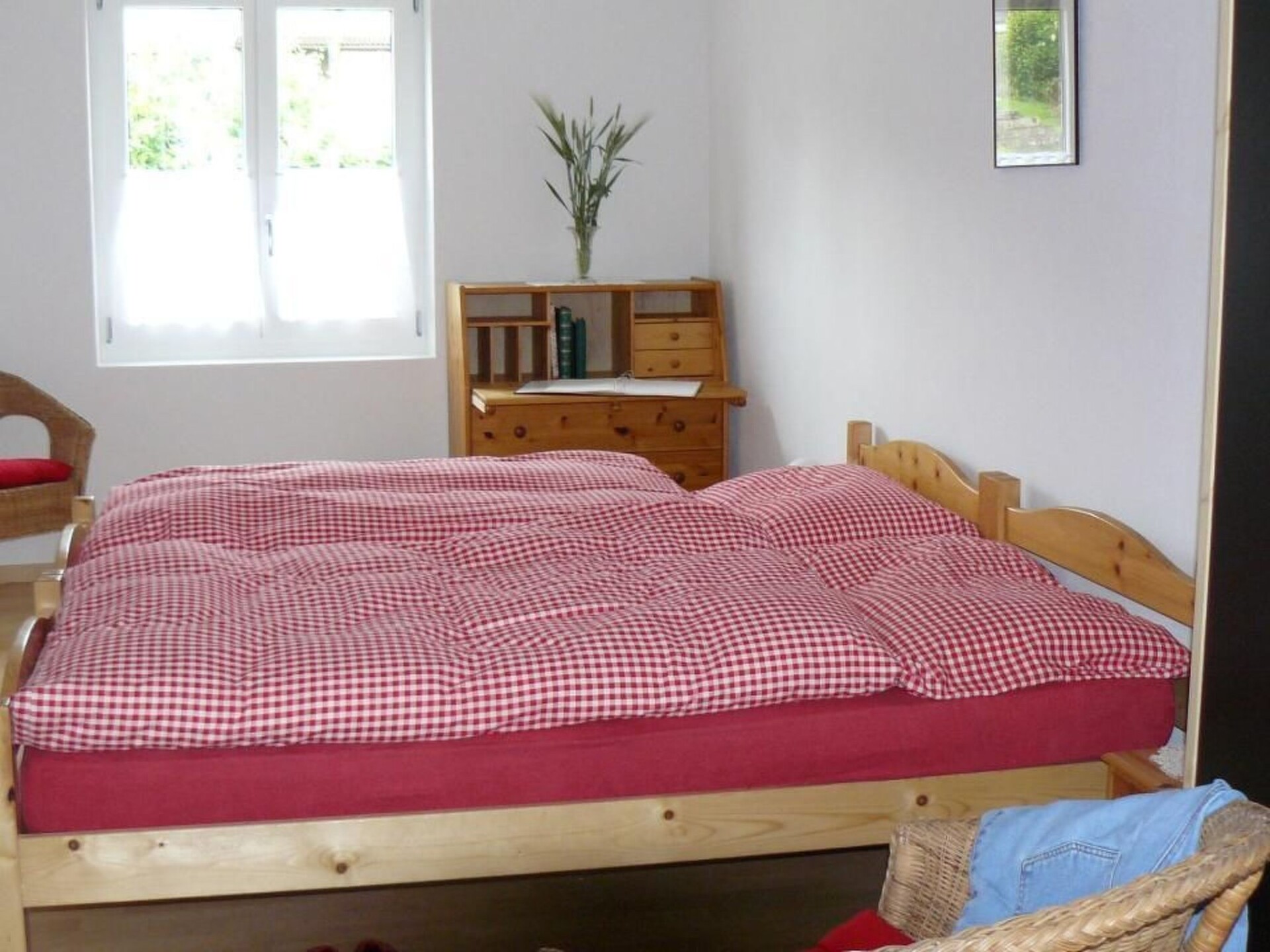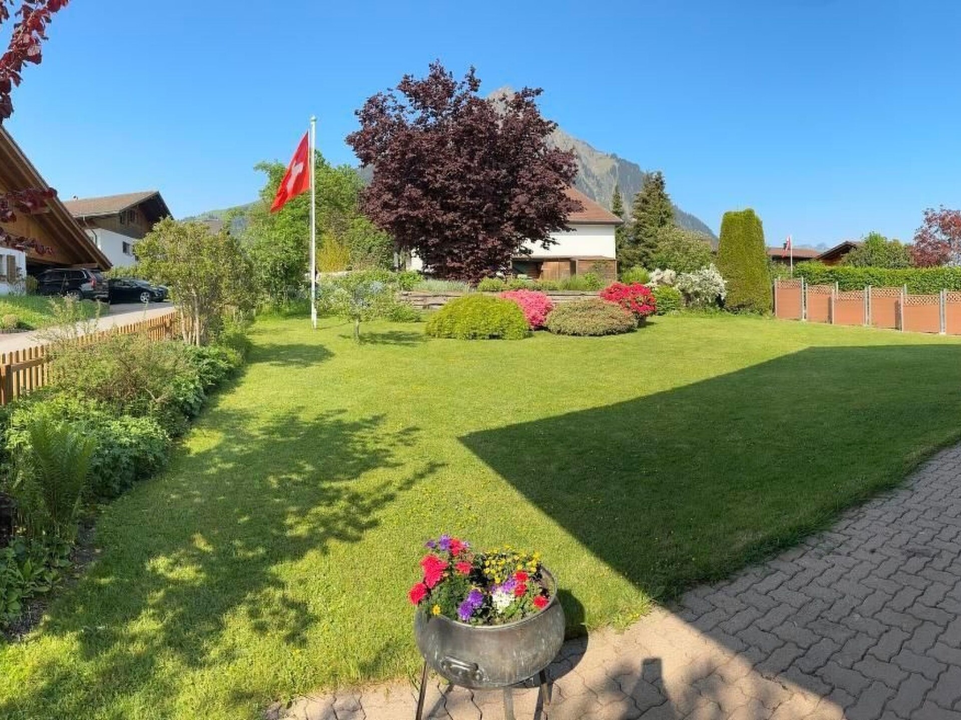 The 2200 inhabitants village is located about 900 m above sea level above Lake Thun and is surrounded by a beautiful mountain landscape. The mountain Niesen, (the largest pyramid in the world) embraces almost protectively the hills of Aeschi. Our house is located on the road between Aeschi and Aeschiried. It is livable and was completely renovated in 2008 and increased. The "Sunneggli" is very comfortably furnished and can accommodate up to 6 people. With beautiful kitchen, 1 living room, 3 bedrooms, TV, radio, telephone, 2 showers / WC, covered patio, large lawn, garage. A large playground and the bus stop are in the immediate vicinity. In the nearby village of Aeschi (1 km) there are all the shops for the daily needs (supermarket, bakery, butcher, newspapers, stationery, bank). In addition, the larger cities like Thun (10 min.) And Interlaken (15 min.) Or the easily accessible capital Bern (30 min.) Offer all shopping and shopping facilities. In the spa town of Interlaken (about 15 km) there is an 18 hole golf course. From there also starts the Jungfraujoch-Bahn, which - past the world-famous ski resort of Grindelwald near the ice giants Eiger, Mönch and Jungfrau - leads through the Eiger north face up to an altitude of 3,500 meters.Other leisure facilities: All year: Indoor swimming pool with wellness and massage, paraglide tandem flights, helicopter tours, guided tour on the Lamafarm, western riding, visiting the earthworm yard, visit the farm Hatti. Summer: Carriage Rides, Electro Bike and Mountain Bike rental, Cheese Dairy Visits, Botanical Excursions, a lot of hiking possibilities, guided village tours. Winter: Skiing, snowboarding, sledging, cross country skiing, winter walking paths, snow shoe hiking, Christmas path.Excursion possibilities: Nature reserve Suld Valley: Starting at the restaurant Pochtenfall you reach the imposing 80 m high waterfall after 20 minutes walk. Apart from easy or demanding walks the valley of Suld offers many possibilities for barbecues, picnics and relaxing in pure nature. Niesen "the swiss pyramid": After a spectacular ride by the funicular train, the view from the top at an altitude of 2362 meters offers a splendid 360° panorama of the imposing Bernese Alps, the lakes Thun and Brienz and to the Bernese lowland. Jungfraujoch - Top of Europe: A highlight of every Swiss journey is an unforgettable day trip to the highest situated railway station of Europe and the alpine wonder world of ice and snow at 3454 meters. Lakes of Thun and Brienz: This beautiful lakes are the heart and the center of the Bernese Oberland. While you enjoy a good meal or a glass of wine on board of a ship while your eyes will rest by glancing at the lovely shores with the splendid historical castels and up to the highest mountain peaks. Other living room features (Living room1): Leather sofa, 2 armchairs, sidebordOther bedroom furniture (Bedroom1): Wardrobe, dresser, 2 bedside tables with lamps, 2 chairs, mirrorOther kitchen equipment (Kitchen1): Raclette-oven, Table grill, pressure cookerNearby sports facilities: Mountain climbing, Golf course, Canoeing, Climbing, Mountainbiking, Paragliding, Bike tours, Rafting, Riding possibilities, Rowing, Squash, Surfing, Diving, Tennis, Water skiing, SailingLocation description: Aeschi (860 m above sea level) and the somewhat higher situated Aeschiried (1000 m) lie on a sunny terrace and offer a wonderful view of the surrounding mountain panorama and of the Lake Thun. The original Peasant village is still marked of farming, folklore and tradition. If you want to escape the everyday hectic, you are just right staying with us. Aeschi offers an intact nature to refuel your batteries. Thanks to the very central situation, all the well known tourist destinations of the Bernese Oberland are very close. Aeschi is easy to reach both by public transport (train to Spiez and bus to Aeschi/Aeschiried) and by car. Apart from two grocery shops there are also a butchery, two bakeries, a cheese shop, two banks, a post office, 2 flower shops and a doctor.