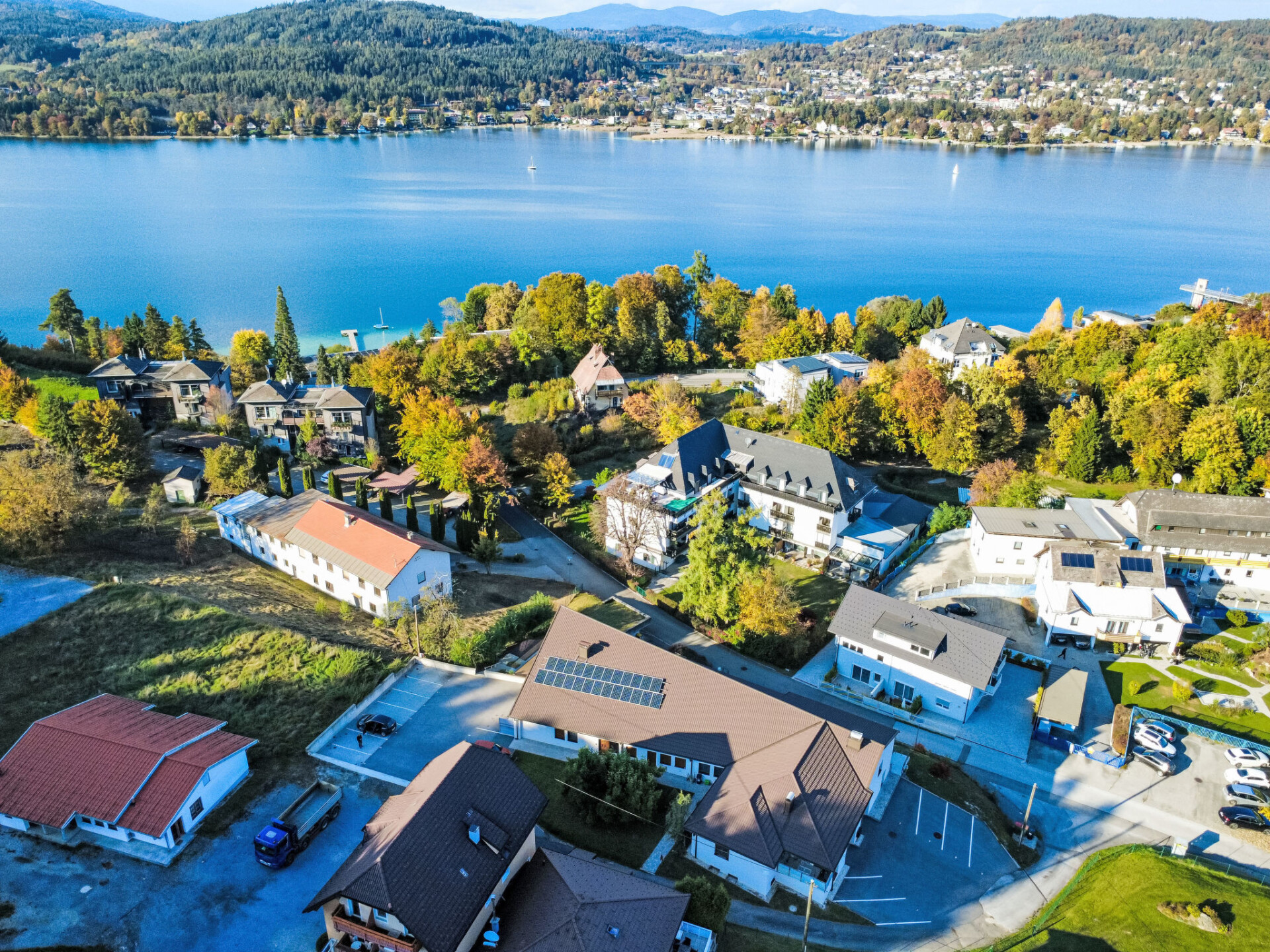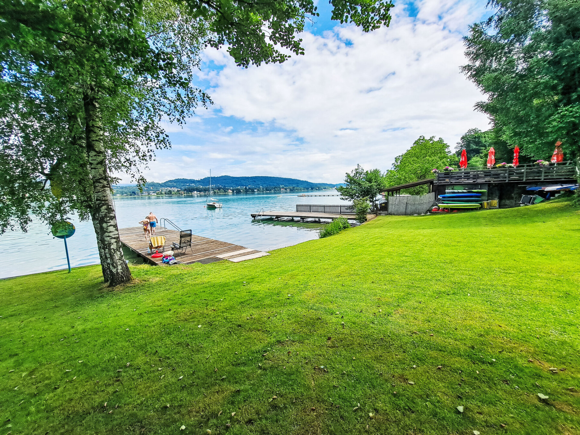 Sekirn 5 km van Autobahnabfahrt: Zeer moderne, comfortabel flatgebouw "Sunshine view", omgeven door bomen. Rustige, zonnige ligging tegen een helling, 300 m van het meer, directe toegang tot het strand. Parkeerplaats (voor 2 auto's) bij het huis. Supermarkt 2 km, bakkerij 2 km, bushalte "Sekirn Korotan" 400 m, meer Wörthersee 300 m. Golfterrein (18 holes) 8 km. Attracties in de buurt: Minimundus Klagenfurt 5 km, Pyramidenkogel 10 km, Casino Velden 15 km, Planetarium, Reptilienzoo Happ, Klagenfurt Zentrum 8 km. Bekende skigebieden kunnen gemakkelijk worden bereikt: Gerlitzen 35 km, Dreiländereck, Nassfeld. Bekende meren kunnen gemakkelijk worden bereikt: Wörther See 300 m, Faaker See 20 km, Keutschacher See 6 km. Wandelgebied Nockalm, Gurktal.