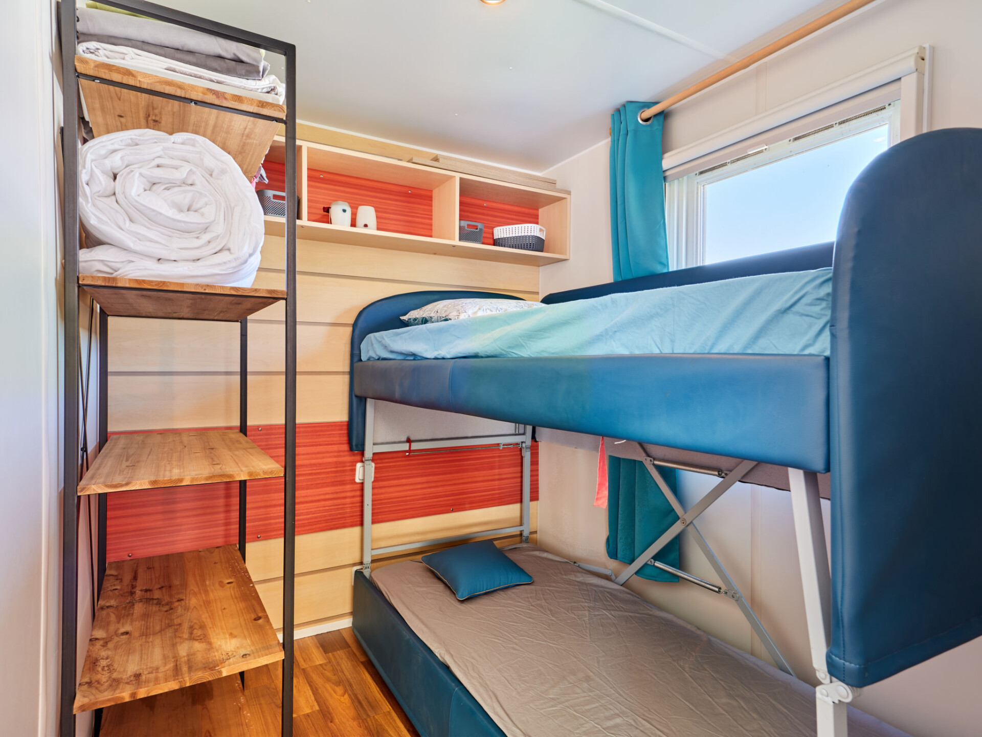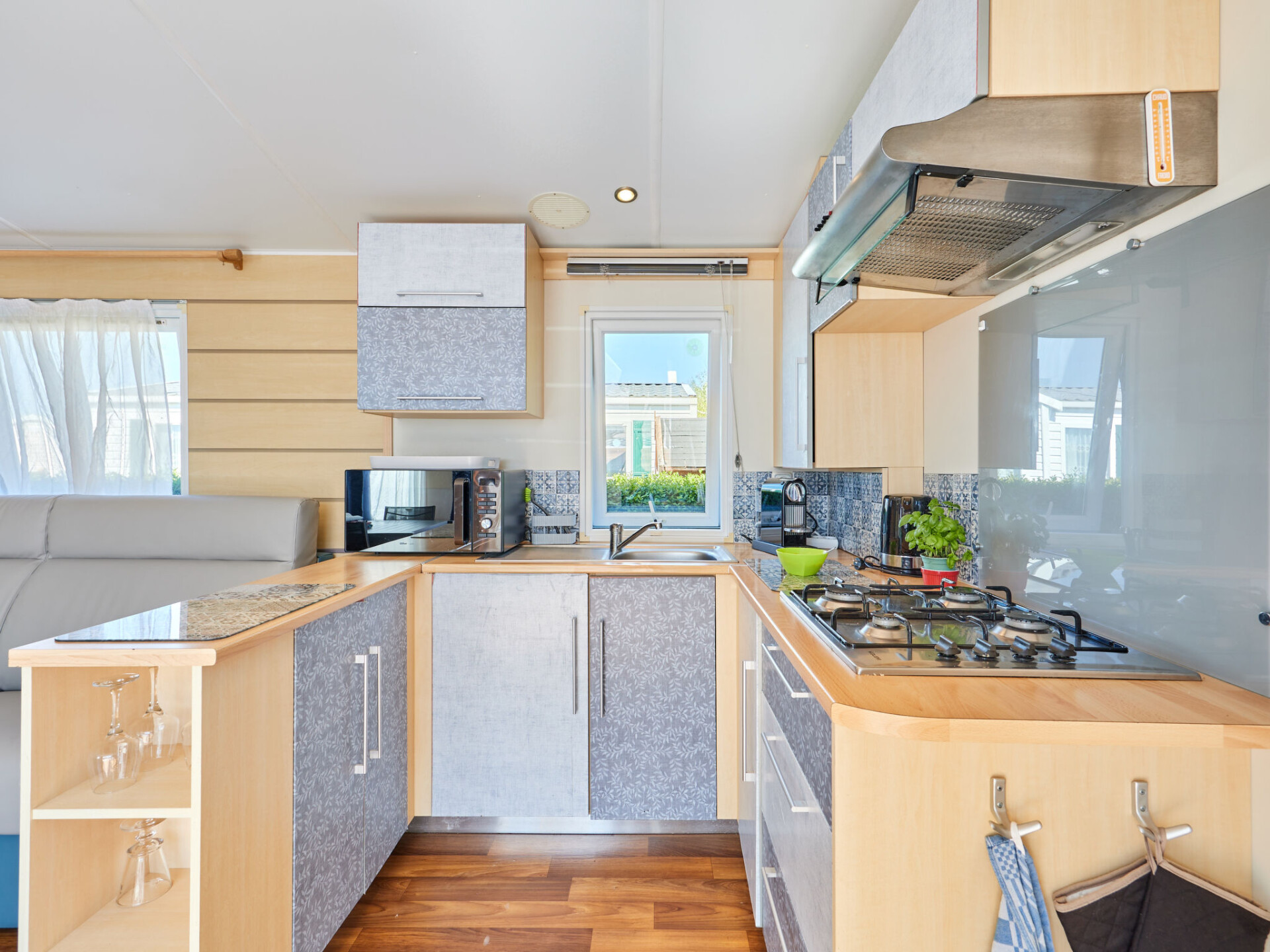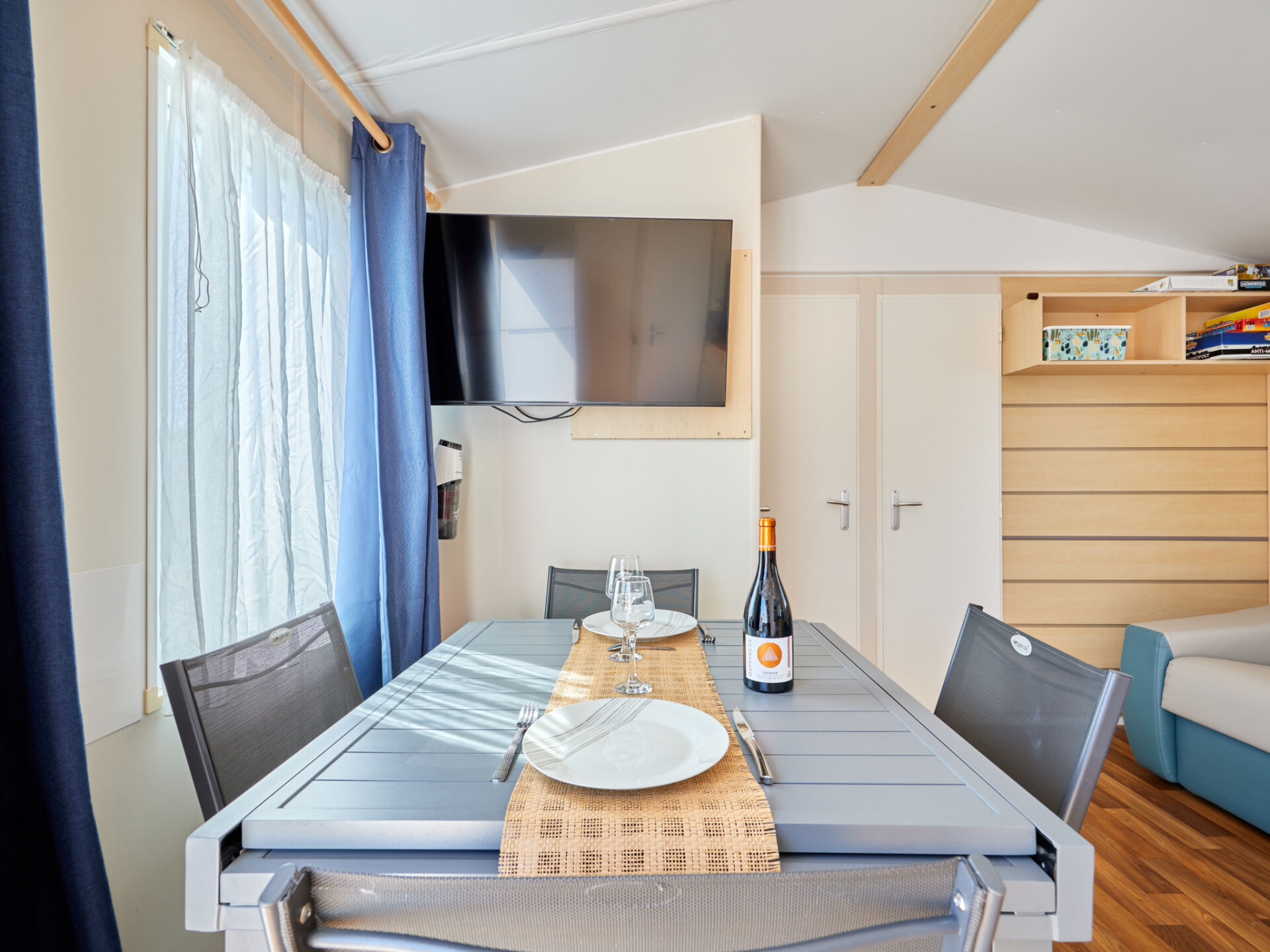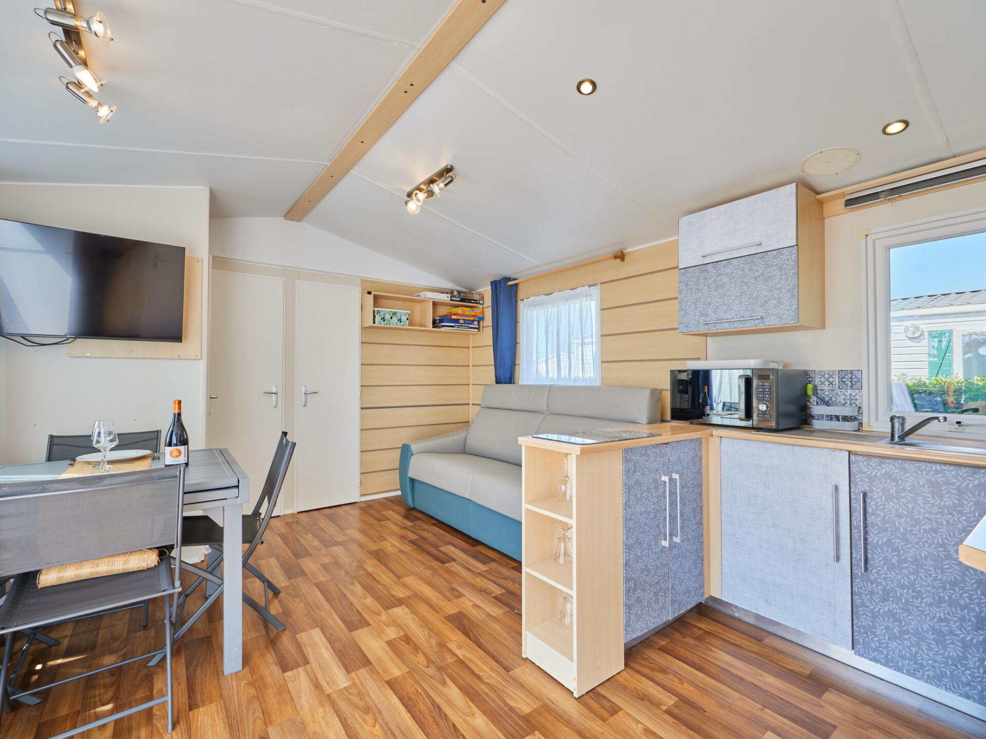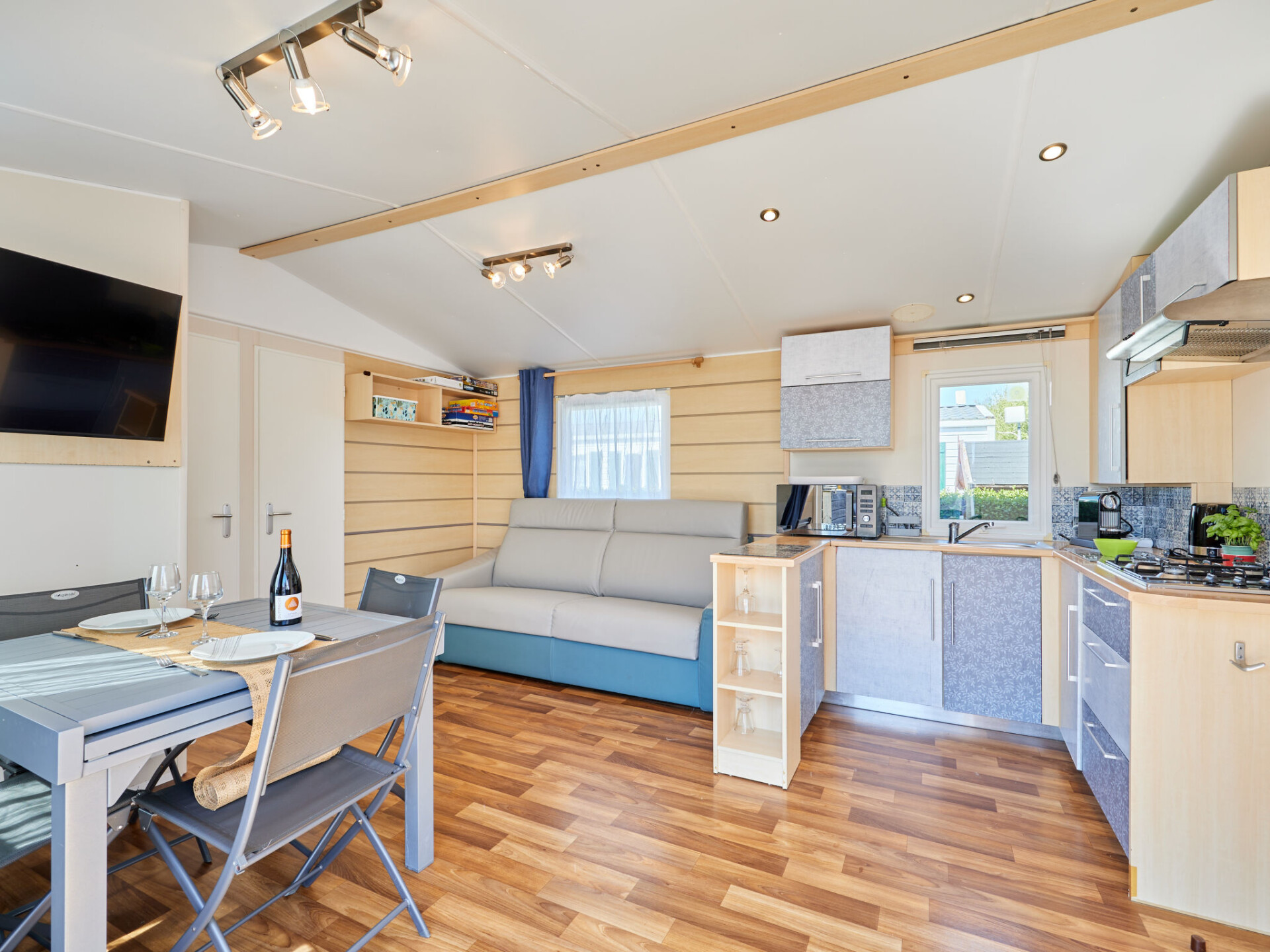 "Super octalia", 4-kamers mobilhome 32 m2. Mooi ingericht: woon-/eetkamer met TV (Flatscreen TV). 1 kamer met 1 2-pers bed (140 cm, lengte 190 cm). 1 kamer met 1 x 2 stapelbedden (80 cm, lengte 190 cm). 1 kamer met 1 opklapbed (80 cm, lengte 190 cm) met aparte WC. Open keuken (4 kookpitten (vlammen), broodrooster, waterkoker, magnetron, elektrische koffiemachine). Douche. Terras 20 m2. Terrasmeubelen, elektrische barbecue. Ter beschikking: wasmachine, droger. Internet (WiFi, gratis). Maximaal 1 huisdier/hond toegestaan. Rookmelders. Aanbod door een particulier volgens art. 155, IV van CGI.