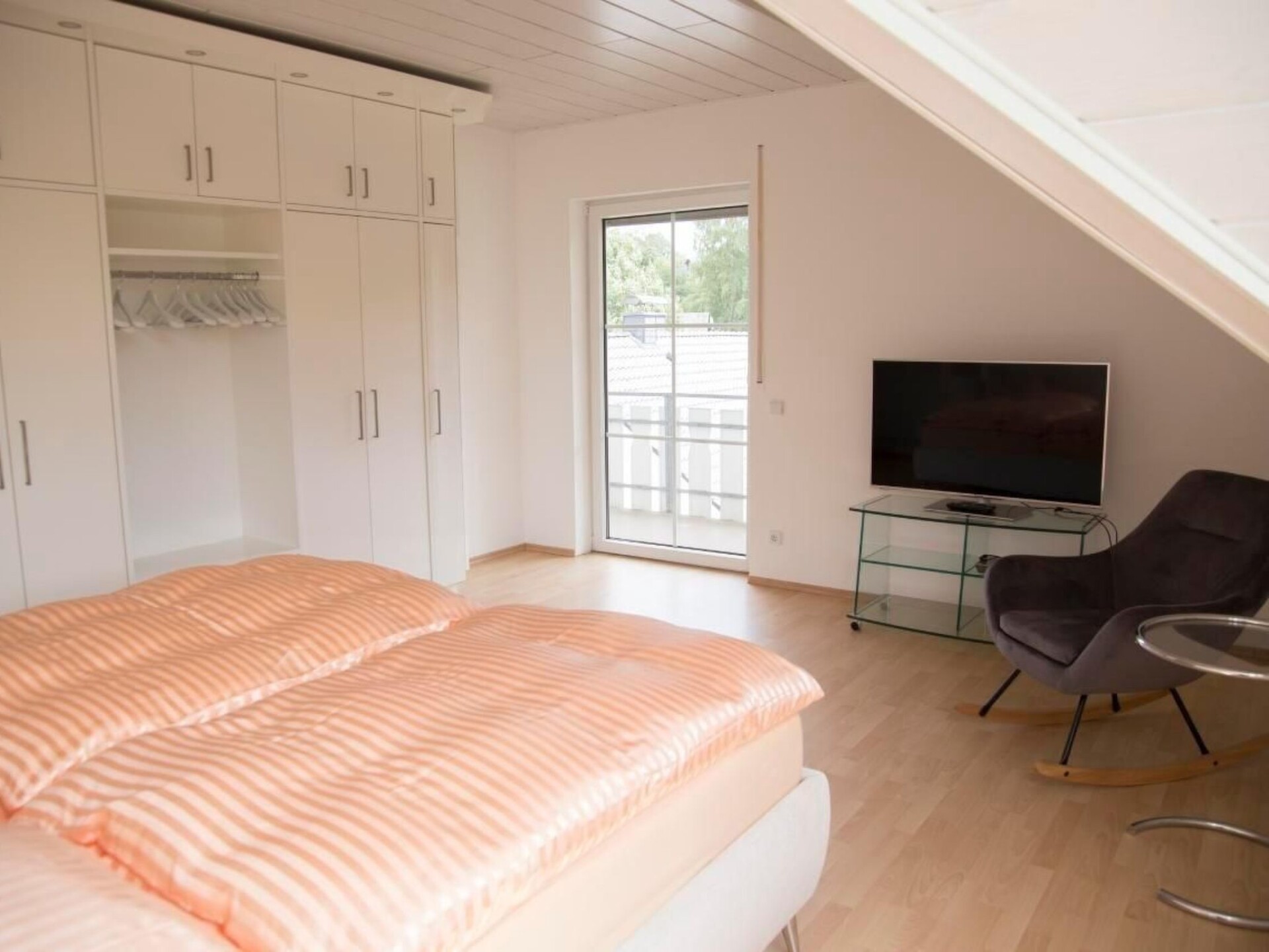 Discover our "Taunustraum" - a holiday flat that meets the highest standards. Presented in an extremely tasteful interior that demonstrates a love of detail, we far exceed the usual standard. The loving decoration and selected furniture radiate tranquillity and convey the feeling of having arrived at the most beautiful time of the year - your holiday.Inside, guests can expect a light-flooded ambience thanks to the large panoramic window, which offers a view of the forest and meadows. The exclusive fitted kitchen is fully equipped with modern appliances such as a coffee machine, dishwasher and microwave, to name but a few. The bedrooms, one of which has direct access to the balcony and morning sun, are furnished with large wardrobes, flat-screen TVs and tasteful beds. A highlight is the spacious living area with a large dining table for 6 people and access to the balcony.Outside, the holiday flat impresses with its location on the outskirts of the village, surrounded by greenery. The charming balcony with its garden furniture invites you to linger and enjoy the idyllic tranquillity. For those seeking relaxation, this outdoor space offers the perfect place to unwind.The area surrounding the holiday flat offers fantastic experiences for families, nature lovers, hikers, cyclists and motorcyclists. Whether exploring the Rheingau with its lovely wine villages, the Drosselgasse in Rüdesheim, the historic Eberbach Monastery or the charming old towns of Wiesbaden and Mainz - the range of excursion options is huge. In addition, the local golf course invites you to play a round in the countryside and the nearby hiking and cycling trails offer nature-loving activities.We cordially invite you to experience unforgettable moments in the "Taunustraum". Relax in this unique home away from typical holiday resorts and be inspired by the diversity of the region. We look forward to your visit and to welcoming you to our non-smoking house and its inviting charm.