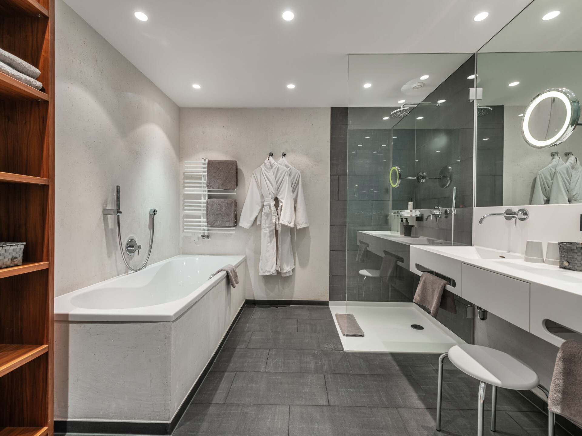 "Premium", appartement 3-kamers 65 m2. Modern en smaakvol ingericht: woon-/slaapkamer met 1 2-pers divanbed, eethoek en Sat-TV (Flatscreen TV). 1 2-pers. kamer met douche/WC. 1 2-pers. kamer. Open keuken (oven, 4 keramische glas kookplaten, broodrooster, waterkoker, magnetron, elektrische koffiemachine). Douche/WC. Verwarming. Balkon of terras. Terrasmeubelen. Mooi uitzicht op de bergen. Ter beschikking: haardroger. Internet (WiFi, gratis). Niet rokers woning. De beschrijving betreft een voorbeeld van dit type woning in dit complex.