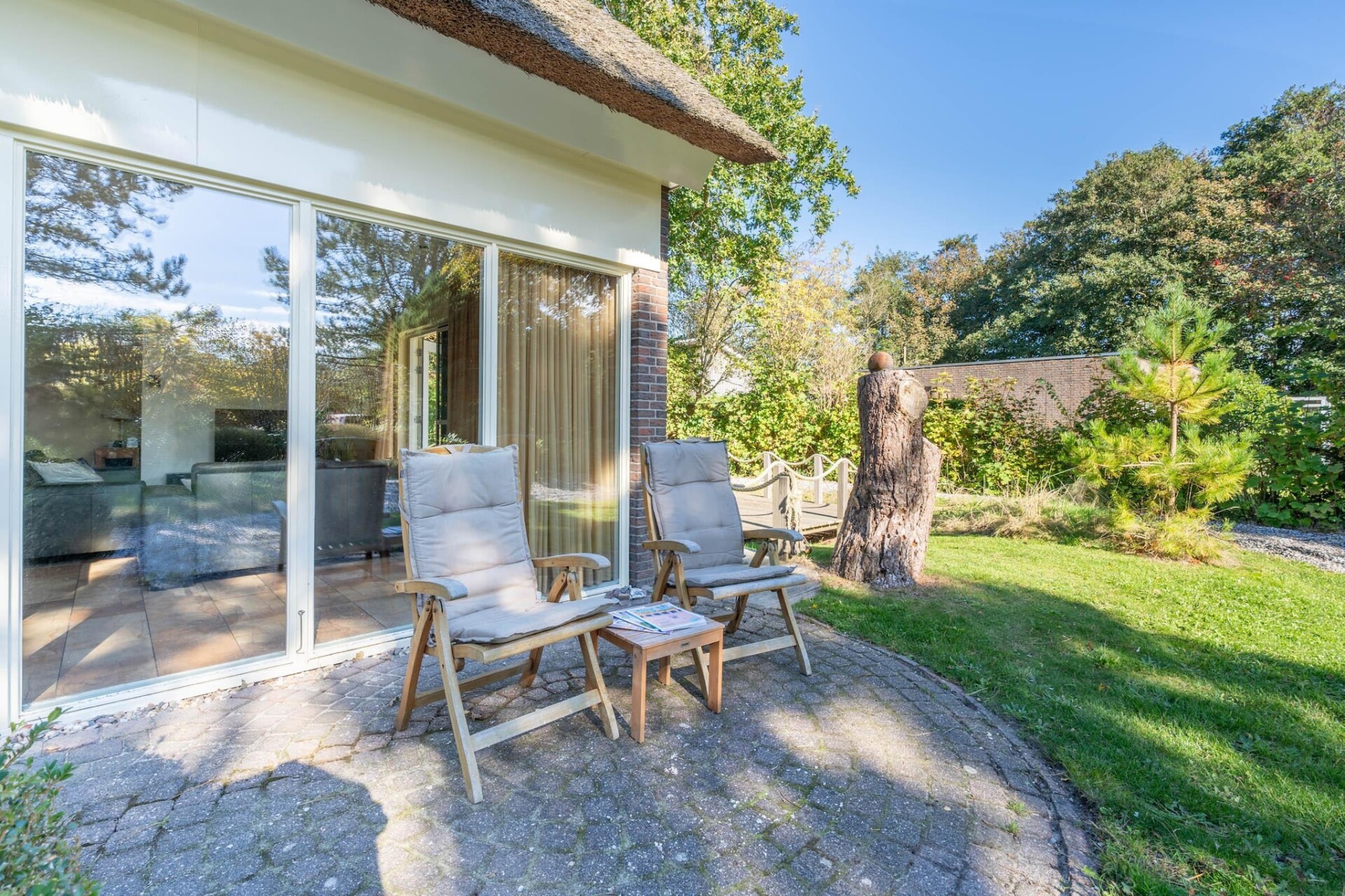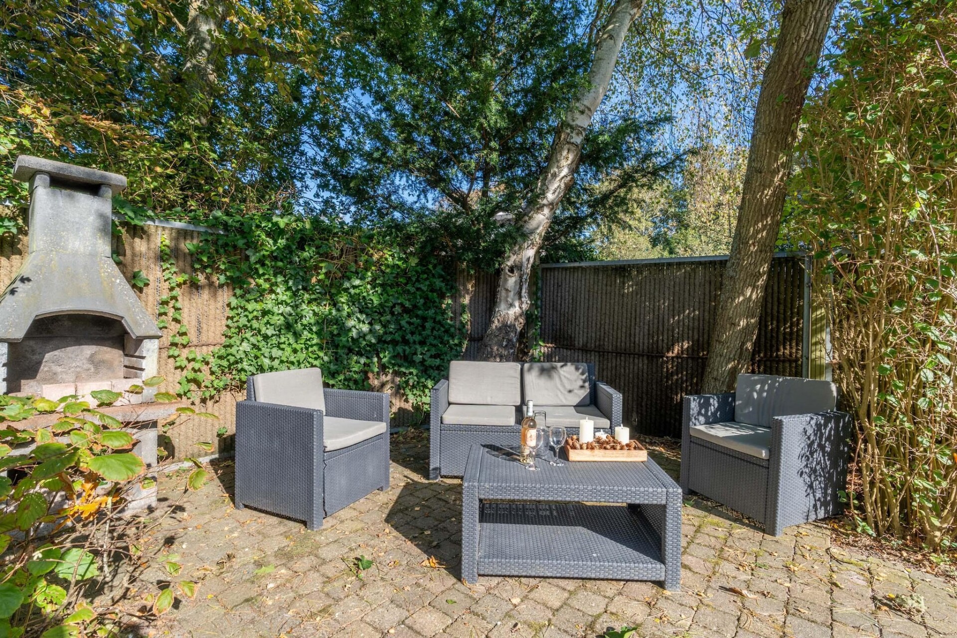De woonruimte staat in directe verbinding met de twee terrassen door twee openslaande terrasdeuren. De terrassen zijn voorzien van terrasmeubelen en een parasol. De tuin is gelegen op het zuiden en biedt veel privacy. De kinderen kunnen zich uitleven in de ruime tuin terwijl jij geniet van de rust en ruimte onder het genot van een hapje en drankje.