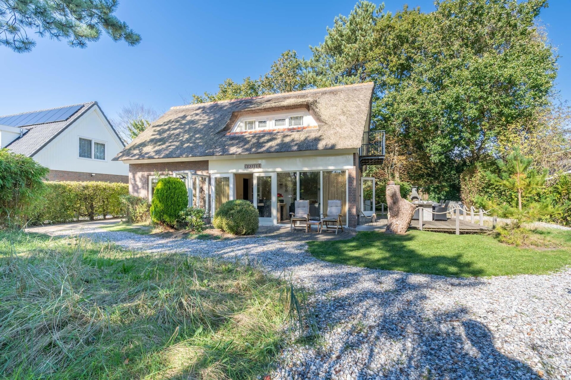 Zeer sfeervol ingerichte 4-peroons landhuis is gelegen tussen badplaats De Koog en Den Burg, nabij het National Park Duinen van Texel, Noordzeestrand en het Texelse Dennenbos. Dit riet gedekte en royale landhuis is van alle comfort voorzien en heeft een ruime tuin op het zuiden.