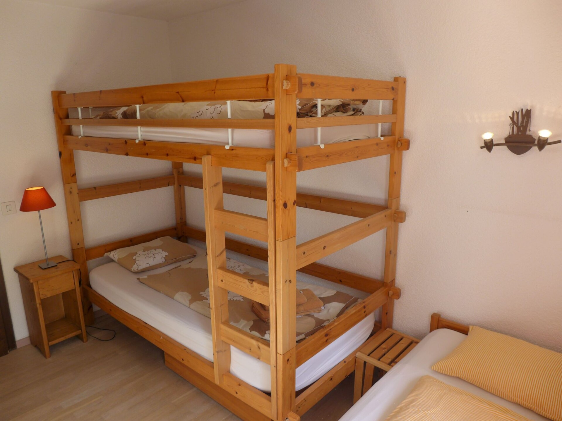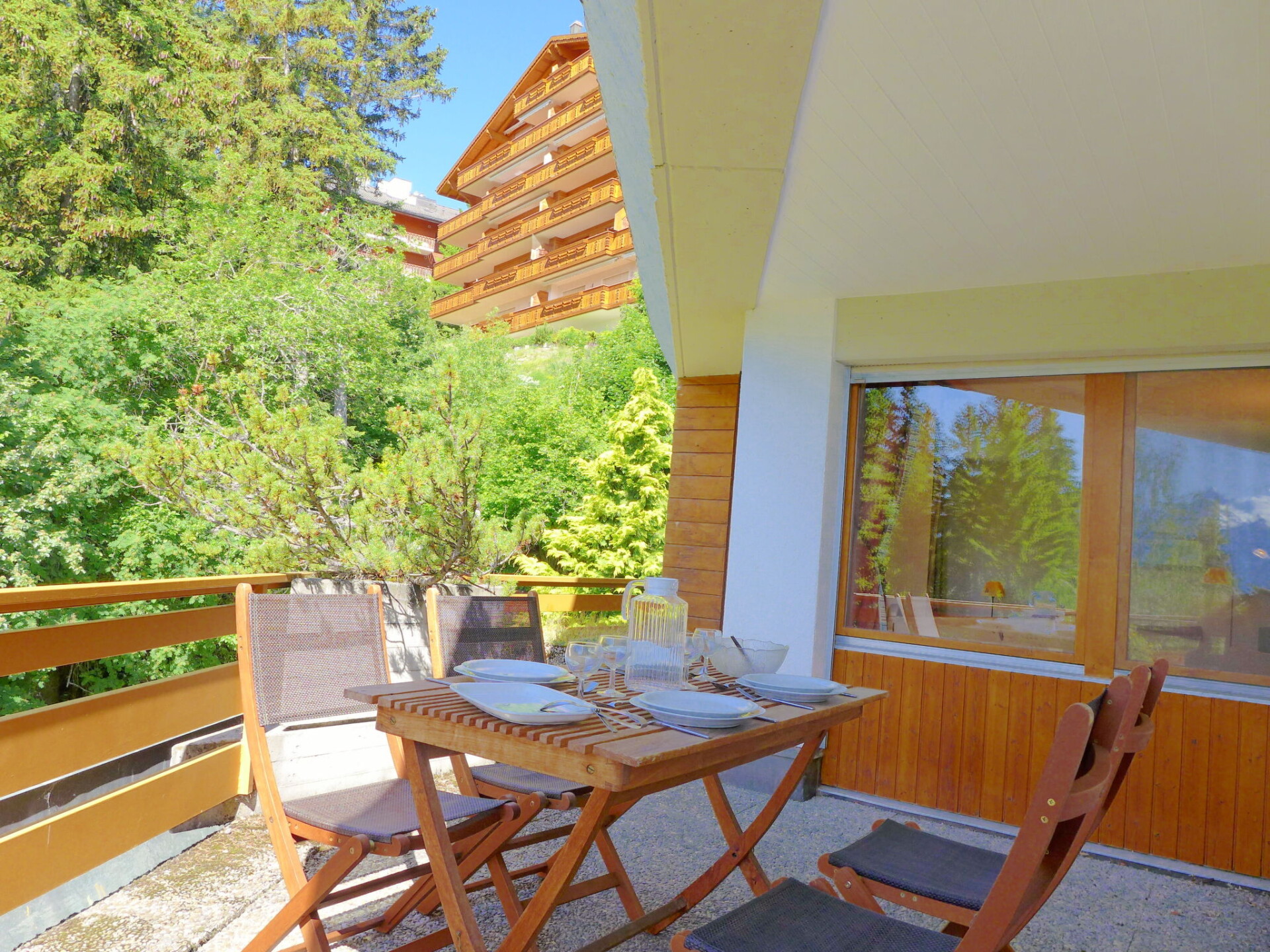 "Terrasse Des Alpes 917", appartement 3-kamers 75 m2 op de 4e verdieping. Gedeeltelijk gerenoveerd in 2025: woon-/eetkamer met 1 divanbed (140 cm, lengte 190 cm), Kabel-TV, radio, CD-speler en DVD. 1 kinderkamer met 1 bed (90 cm, lengte 190 cm), 1 x 2 stapelbedden (90 cm, lengte 190 cm). 1 kamer met 1 2-pers bed (2 x 90 cm, lengte 200 cm). Kookhoek (oven, afwasmachine, 4 keramische glas kookplaten, broodrooster, waterkoker, elektrische koffiemachine, pads voor de koffiemachine (NESPRESSO) extra, fondue Set (chinese, kaas)). Bad/WC, douche/WC. Terras 10 m2, op het westen gelegen. Terrasmeubelen, bergruimte. Uitzicht op de bergen en het bos. Ter beschikking: kinderstoel, haardroger. Internet (WiFi, gratis). Garage nr. 76, hoogte 200 cm, breedte 230 cm. Niet rokers woning.