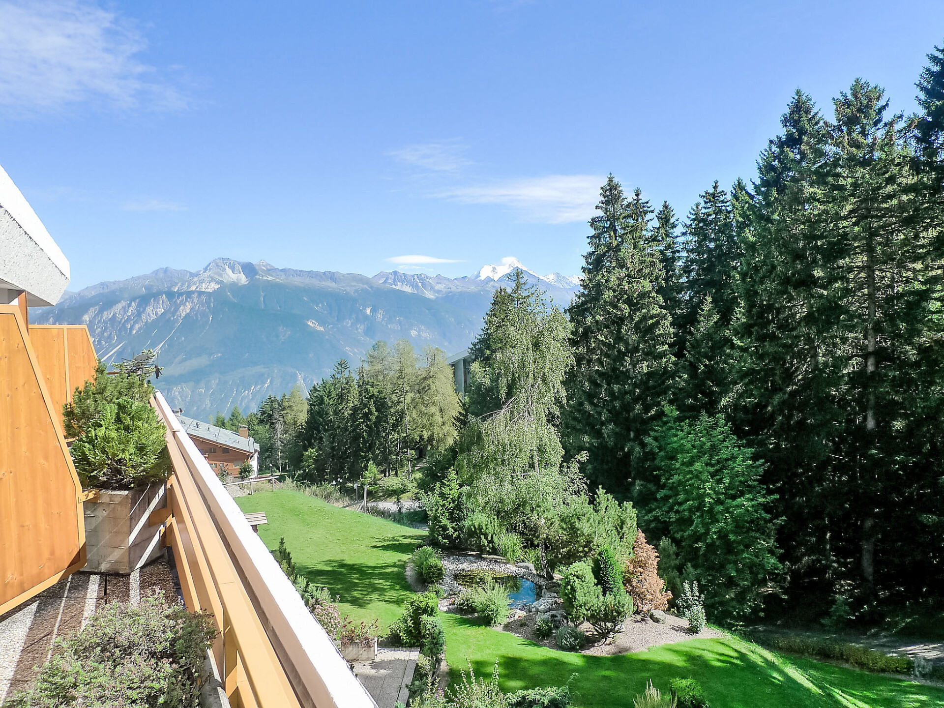 Terrasvormig complex "Terrasse des Alpes". In de wijk Marigny, 400 m van het centrum van Montana, zonnige ligging, 1.5 km van het meer, 1.5 km van het skigebied, op het zuidwesten. Voor medegebruik: overdekt zwembad verwarmd (12 x 5 m, seizoensgebonden beschikbaarheid: 01.Jan. - 31.Okt. en 16.Dec. - 31.Dec. openingstijden zwembad: 08:00-20:00). Hot tub, terras. In het huis: salon, lift, berging voor ski's, centrale verwarming, wasmachine, droger (voor medegebruik, extra). Winkel, supermarkt, restaurant, bar, café 400 m, centrum te voet bereikbaar in 5 minuten, bushalte "Montana Poste" 300 m, treinstation "Funiculaire Montana Gare" 450 m, meer (zwemmen) "Moubra" 1.5 km. Golfterrein (18 holes) 3.8 km, ski faciliteiten 1.5 km. Gratis skibus. COVID metingen: pool toegang met 2G+. Zwembad (ongeveer 26°) gesloten in november. Het gebouw is op een hellend terrein gebouwd. De verdiepingen zijn als niveaus gehandhaafd, gerekend vanaf de bodem van de residentie.