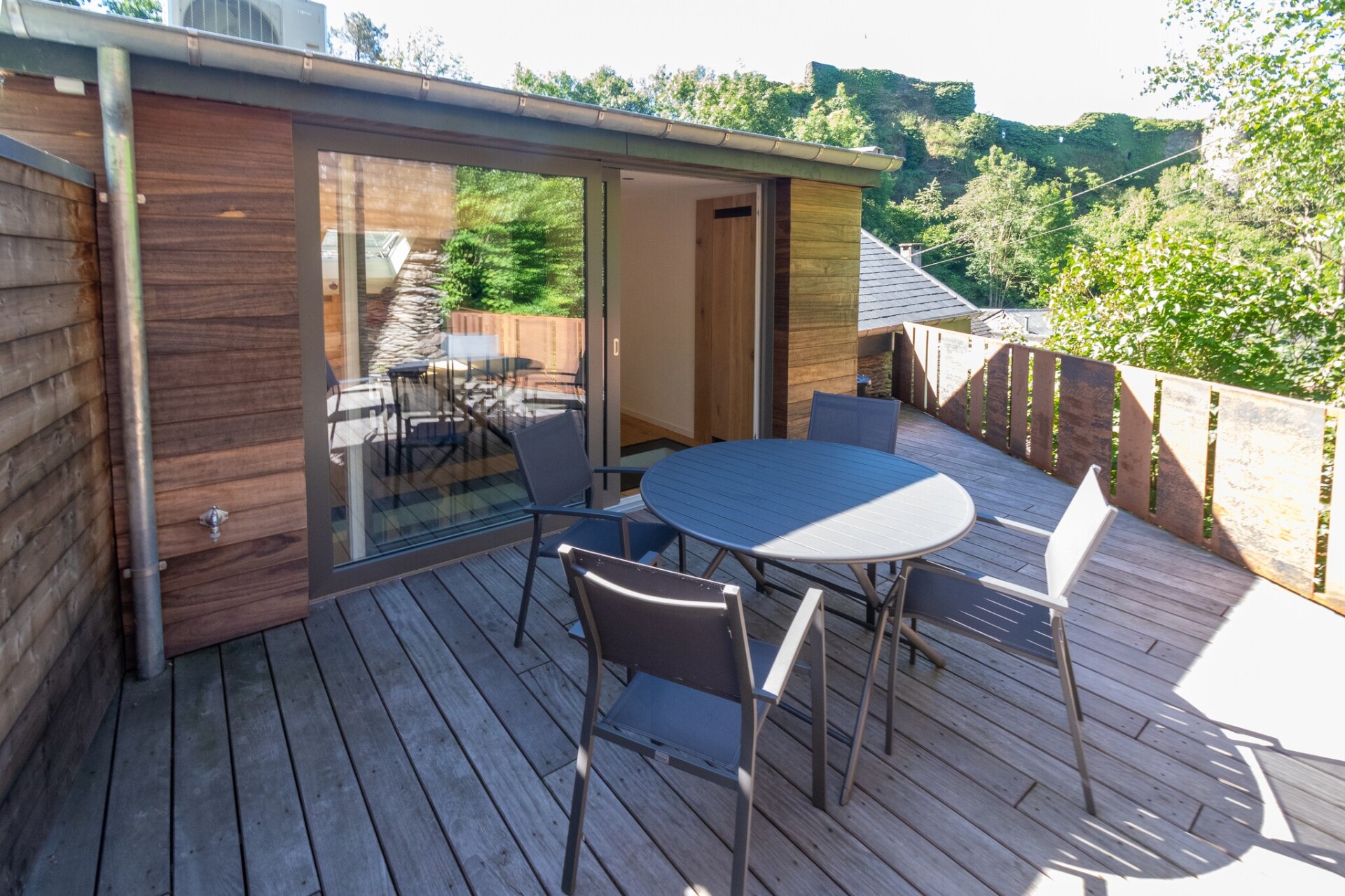 De woning beschikt over twee comfortabele slaapkamers, elk met een eigen badkamer en toilet, wat zorgt voor privacy en gemak. Een van de badkamers is uitgerust met een luxe bubbelbad, ideaal voor een ontspannend moment na een dag vol avontuur. Het zonnige terras met adembenemend uitzicht op het oude kasteel is de perfecte plek om te genieten van een kopje koffie in de ochtend of een glas wijn in de avond terwijl de zon ondergaat.