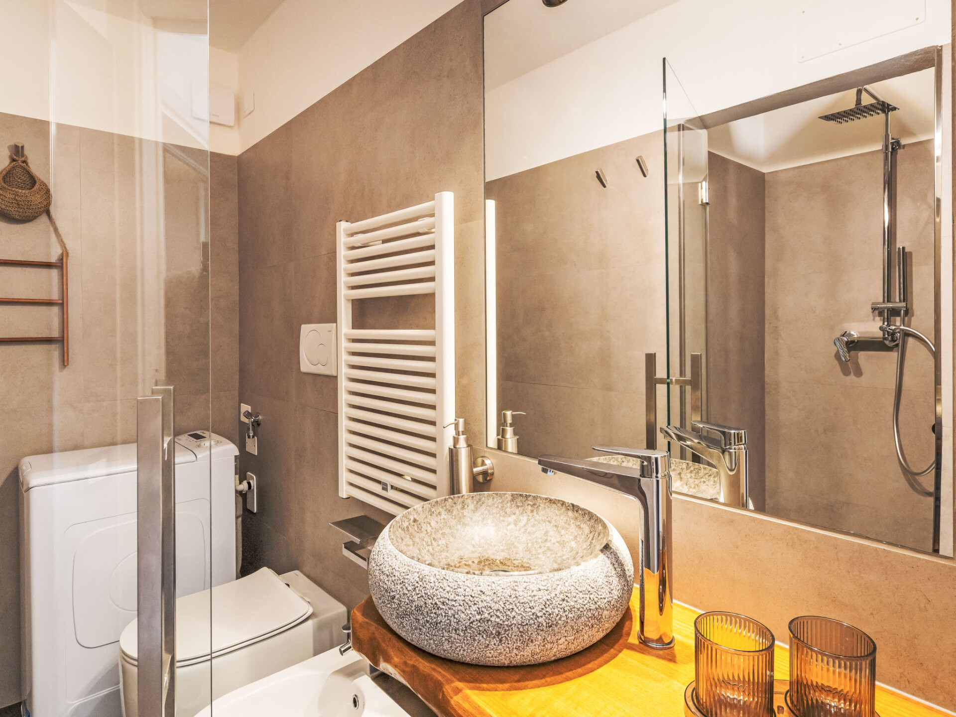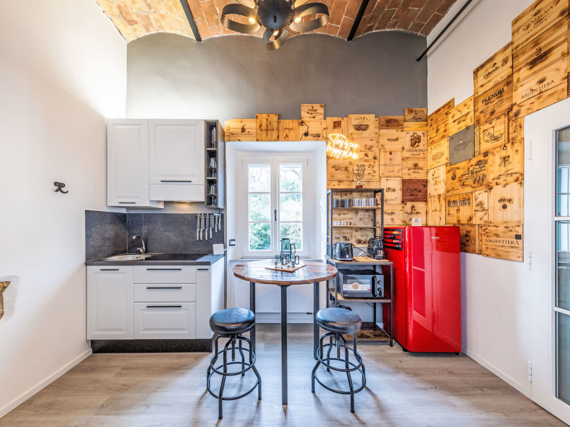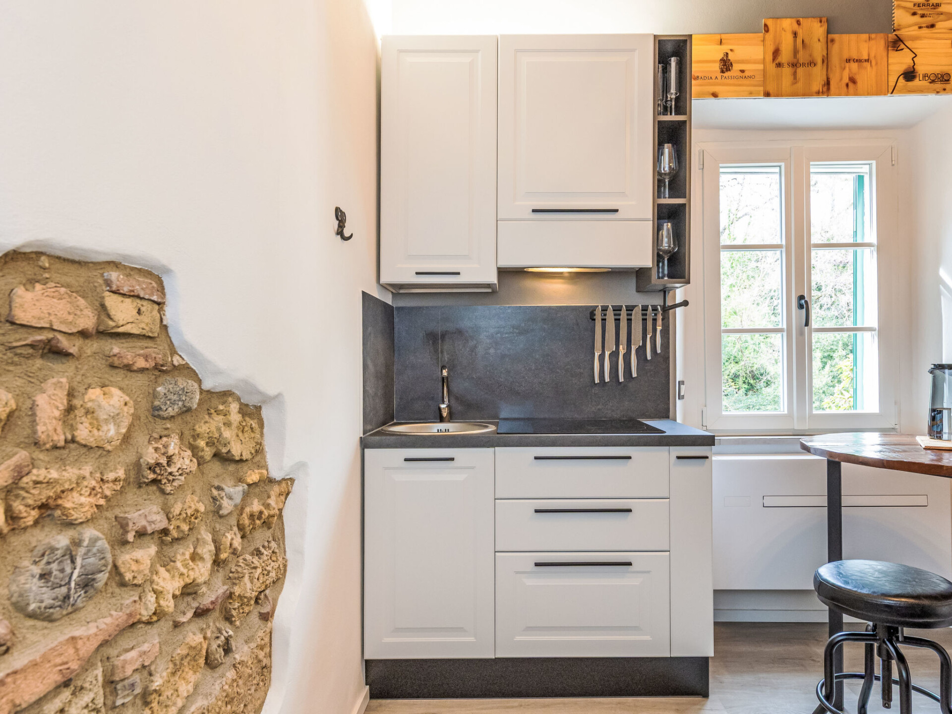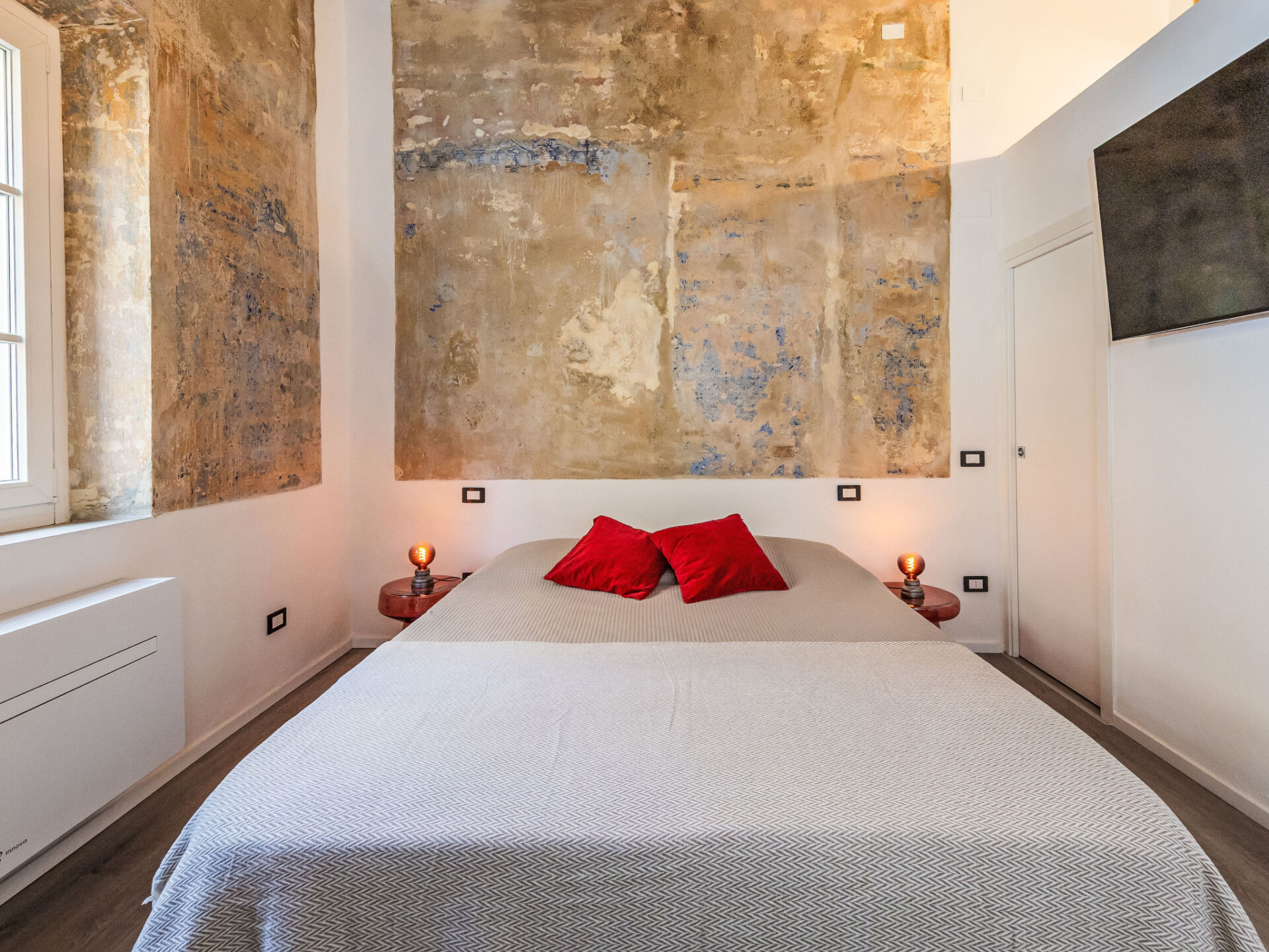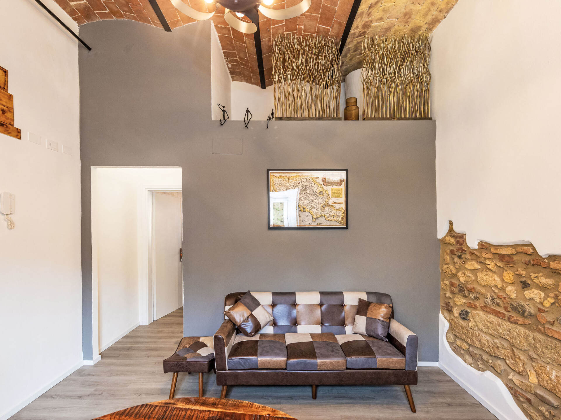 "The Knight’s Rest", appartement 2-kamers 35 m2 op de 1e verdieping. Ruim en licht, comfortabel en smaakvol ingericht: Bovenverdieping: (steile trap) woon-/eetkamer met eettafel. 1 2-pers. kamer met 1 2-pers bed (180 cm, lengte 200 cm). Open keuken (oven, 4 inductiekookplaten, broodrooster, waterkoker, magnetron, elektrische koffiemachine). Douche/bidet/WC. Elektrische verwarming, air-conditioning. Ter beschikking: wasmachine, strijkijzer, kinderbed tot 2 jaar, haardroger. Internet (WiFi, gratis). Brandblusser. IT049001C22O2D2G7I