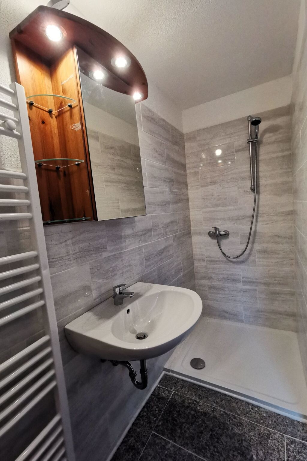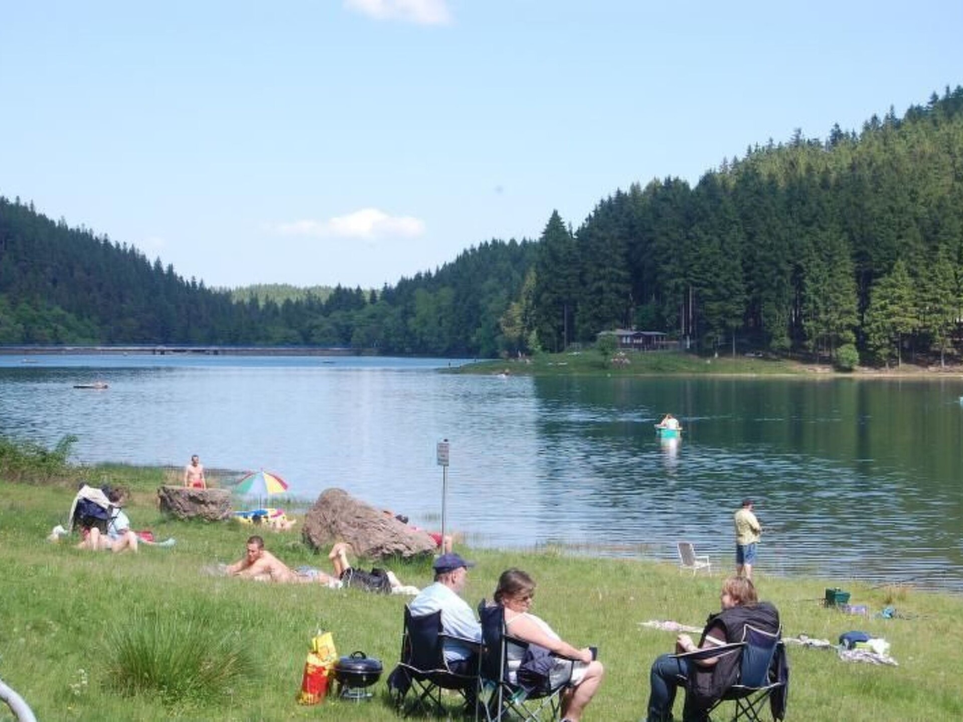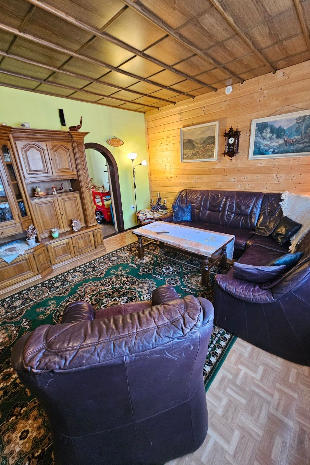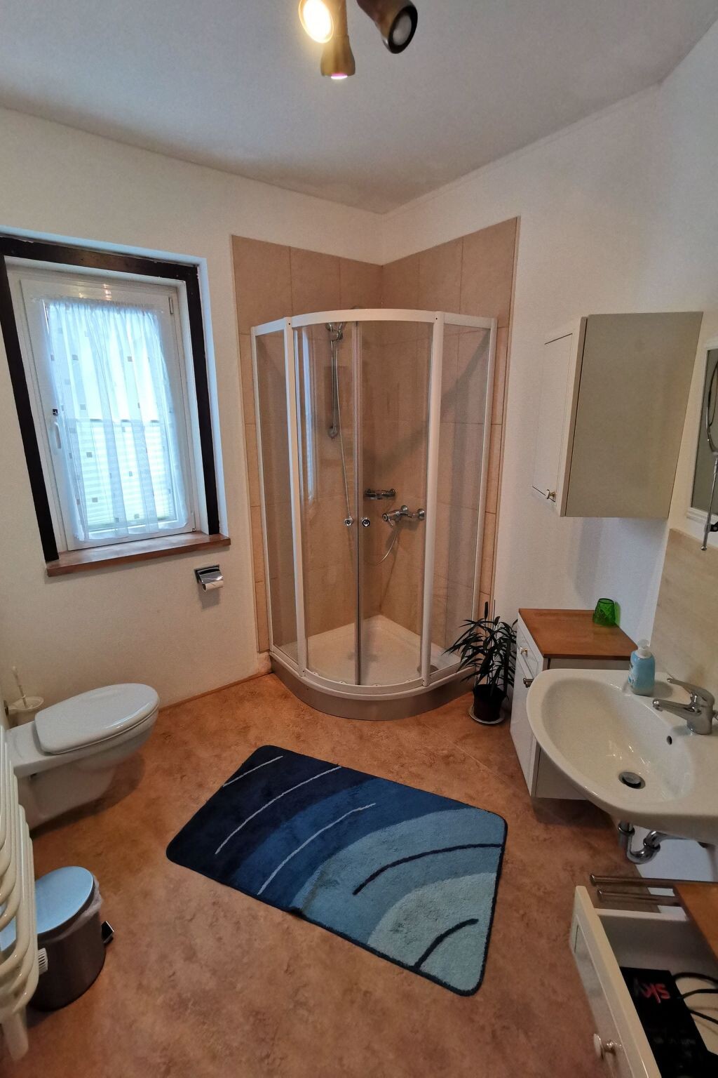The Thuringian country house Gehlberg am Schneekopf with comfortable holiday flats and a unique mountain panorama is located on the Thuringian Forest nature park route not far from the Rennsteig trail on the Schneekopf, the Goethe hiking trail and the holiday resorts of Oberhof and Ilmenau. The outdoor area includes a garden seating area and patio furniture. A garden with barbecue area (fenced) is available for shared use. In the house: central heating. The car park is on the property next to the house. The house can accommodate up to eight people on 110 m² and is romantically furnished. Guests have two living rooms with cable TV and a stereo system at their disposal. There is also a bathroom, a fully equipped kitchen with cooker, microwave, coffee machine, kettle and fridge. The bathroom has a separate shower, a WC and a large washbasin. It is heated by central heating. There are four bedrooms in total. All bedrooms have double beds. There is a shop 300 metres away, a restaurant and bus stop 400 metres away, an outdoor pool 700 metres away, an indoor pool ten kilometres away and a cross-country ski trail 75 kilometres away. With the spa card you can use buses in the Rennsteig region free of charge and enjoy access to a private sauna. The house has a separate entrance.