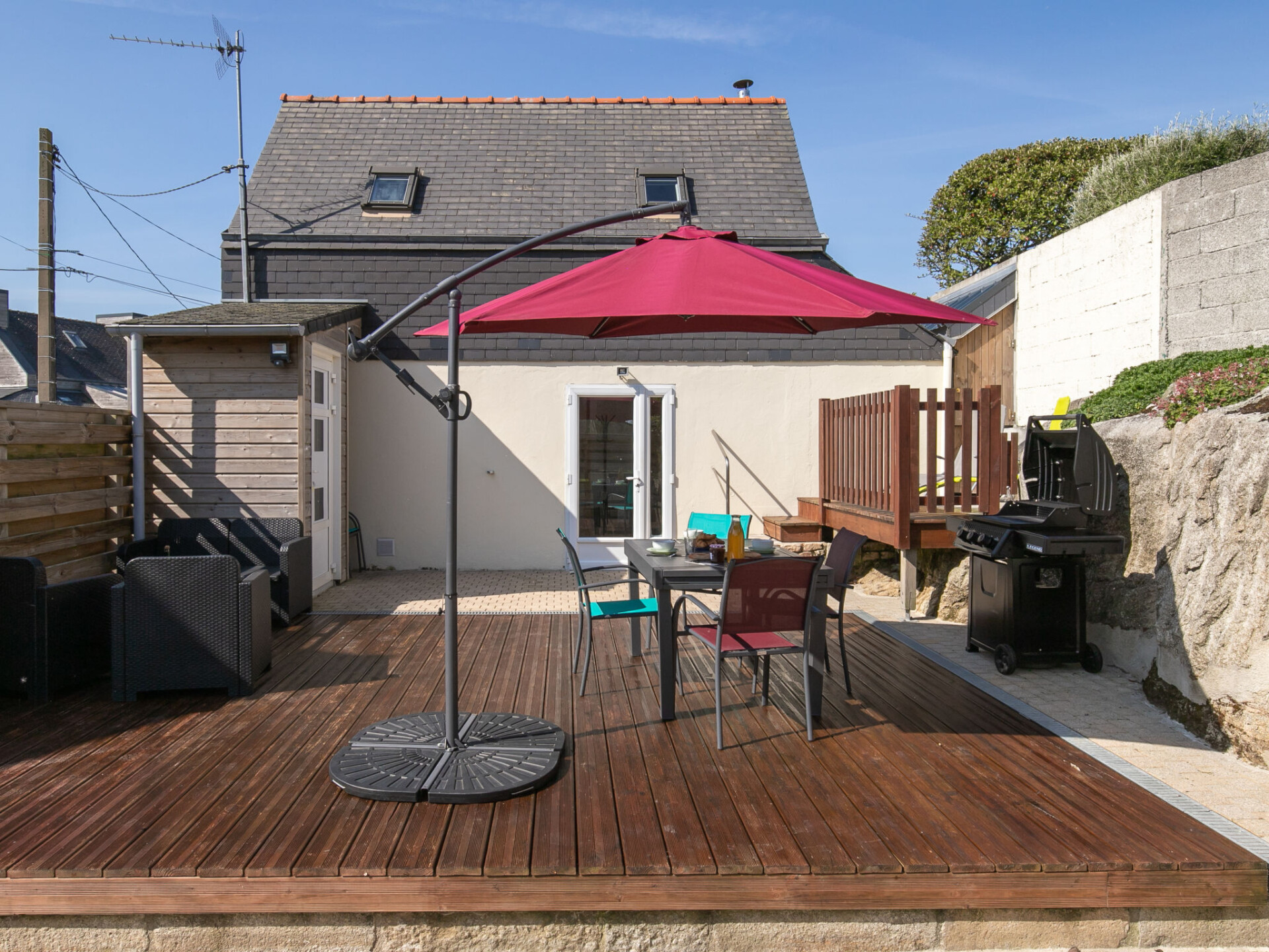 "Ti Bihan", huis 3-kamers 35 m2 op 2 verdiepingen. Volledig gerenoveerd in 2024, mooi en gezellig ingericht: woon-/eetkamer 20 m2 met zwedenkachel en TV (Flatscreen TV). Uitgang naar het terras. Kleine kookhoek (2 kookpitten (vlammen), broodrooster, waterkoker, magnetron, elektrische koffiemachine, pads voor de koffiemachine (Dolce Gusto) extra). Douche/WC. Bovenverdieping: 1 kamer 9 m2, met afgeschuinde daken met 1 2-pers bed (140 cm, lengte 190 cm). 1 kamer 9 m2, met afgeschuinde daken met 1 bed (90 cm, lengte 190 cm). Elektrische verwarming. Terras 30 m2, op het zuiden gelegen. Terrasmeubelen, barbecue (verrijdbaar), ligstoelen (2), bergruimte. Ter beschikking: wasmachine, kinderstoel, kinderbed, haardroger. Rookvrij huis. Rookmelders. Aanbod door een particulier volgens art. 155, IV van CGI. 29185000158FU