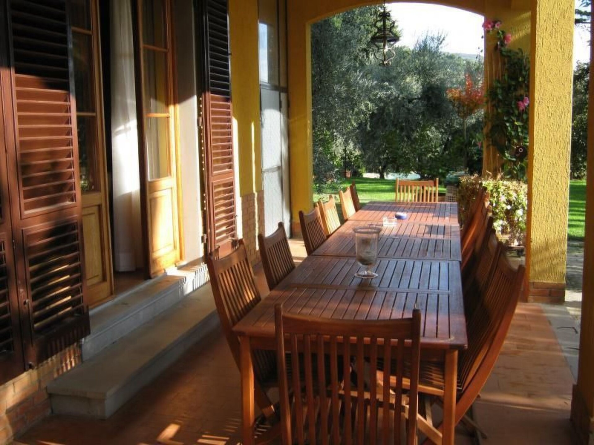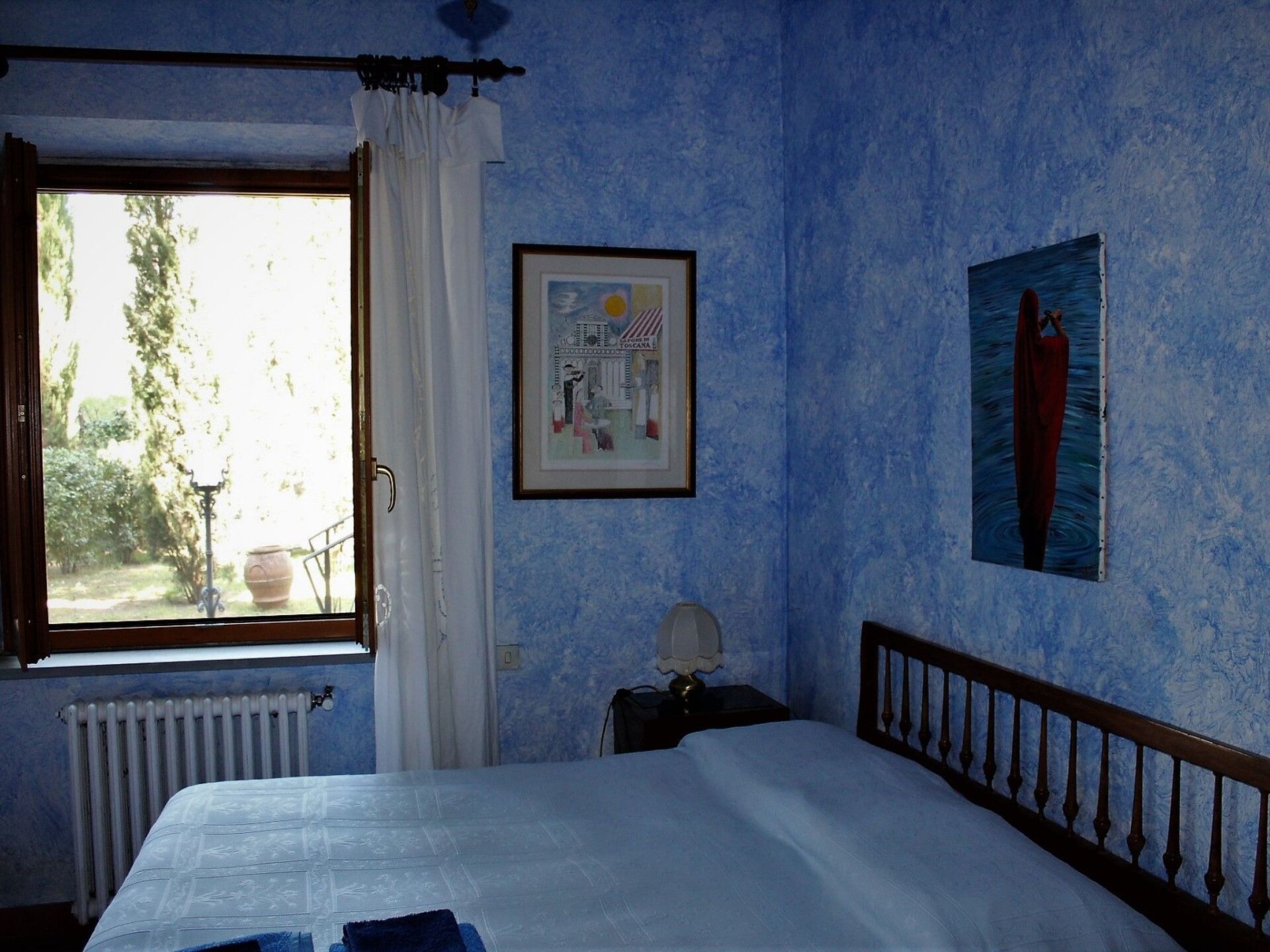 This holiday apartment is part of a typical Tuscan house, which was built at the end of the 1960s and was refurbished in the 80s and again in 2006. The holiday apartment lies in the outskirts of the little village of Pian di Scò, on a hill.The holiday apartment measures 250m² and is on the ground floor. It has two bedrooms each with a double bed, a bedroom with two single beds that can also be joined together as a large bed, and a bedroom with three single beds and a 26” TV. Each bedroom has its own bathroom and there is also a guest WC. The apartment also has two billiards rooms, a fireplace, a living and dining room and a kitchen equipped with an oven, gas stove, microwave, toaster, dishwasher and fridge with freezer compartment. The interior of the apartment is characterised by many works of art and paintings by local artists, some very well-known. The rooms are generous and light and even during the summer months pleasantly cool, so no air conditioning is necessary.Outdoors there is a pergola, an approximately 5000m² garden and a swimming pool (5,5 x 12m, without chemicals, cleaning with natrium). The owners live on the upper floors. They are pleasant and discreet and will not disturb your holiday and during the months of July and August they are absent.The surrounding landscape is characterised by hills with olive groves. It is also worth mentioning the Setteponti road, which leads from Reggello (FI) to Arezzo (50km). In the 13th century, it was the main road in the region. Today the road, which affords wonderful panoramic views, is appreciated especially by cyclists and joggers. It is also known as the road of the Romanesque “Pieve” (parishes) dating back to 11th century the Pieve di San Pietro is in Cascia, the Pieve di Santa Maria is in Pian di Scò. You can find further Pieve in Badia, Soffena, Castelfranco di Sopra, near Loro Ciuffenna (Pieve di Gropina) etc. The mountains (the Pratomagno massif 1600m) provide the opportunità to go biking or mountain biking, or to take a refreshing dip in the Resco stream. IT051040C27SSURYNB