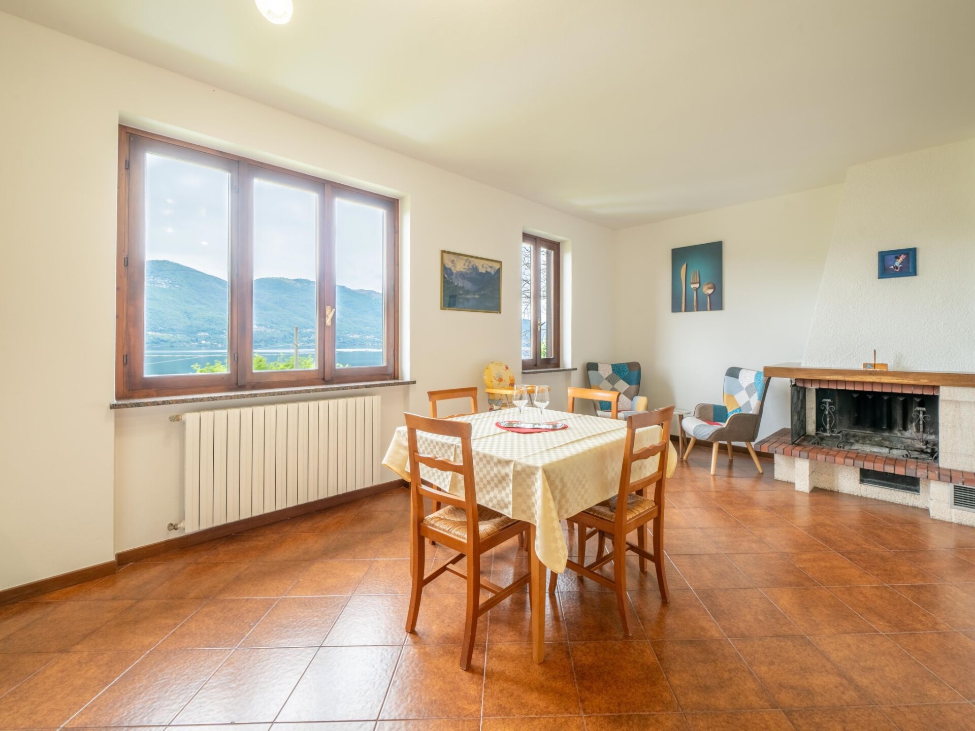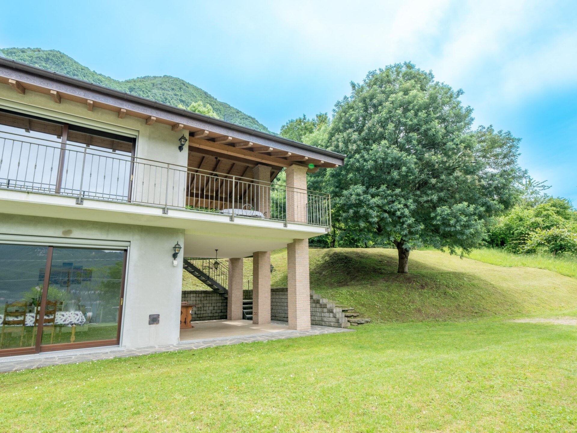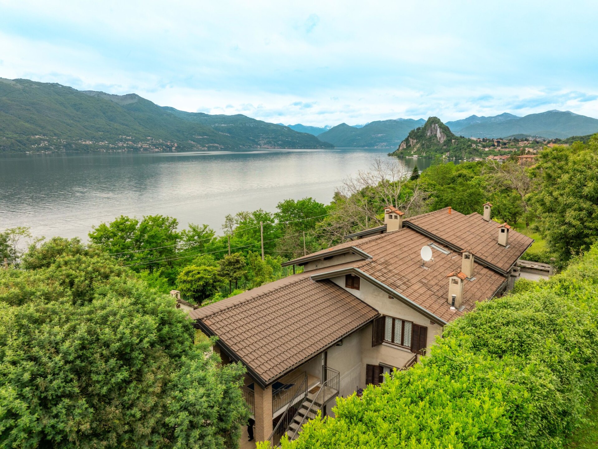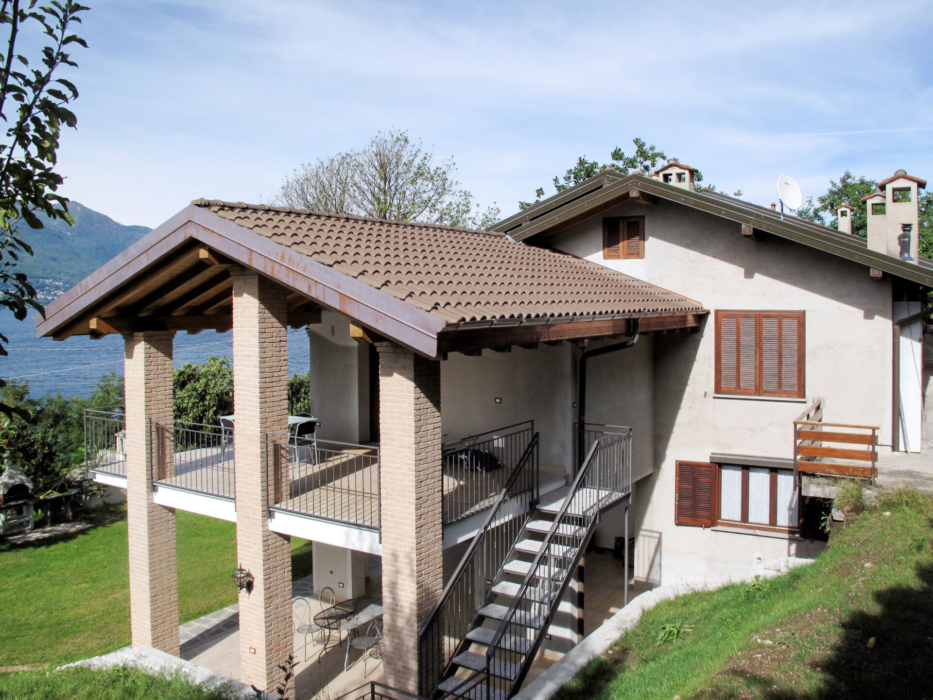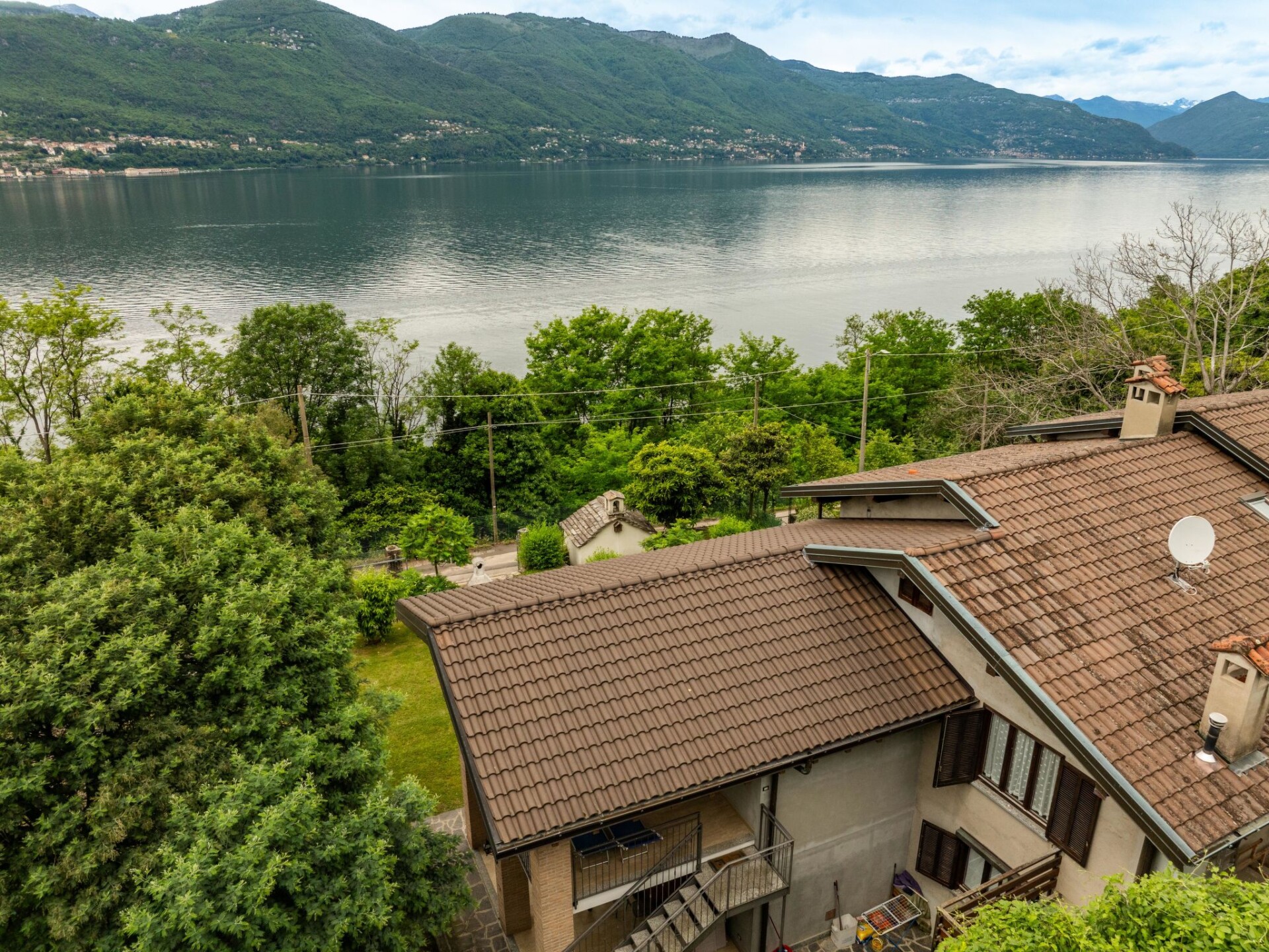 Groot Huis met 2 woningen "Tondo". 2 km van het centrum van Castelveccana, 5.5 km van het centrum van Laveno, 36 km van het centrum van Lugano, tegen een helling, 900 m van het meer. Voor medegebruik: terrein 3.000 m2, tuin op verschillende niveaus met gazon en bomen, boomgaard. Toegangsweg tot aan het huis. Parkeerplaats op het terrein. Supermarkt 2.5 km, restaurant 1.8 km, bar 1.8 km, bushalte 700 m, treinstation "Porto Valtravaglia" 3 km, kiezelstrand "Caldè" 1.8 km. Auto noodzakelijk. Spoorweg 50 m van het huis.