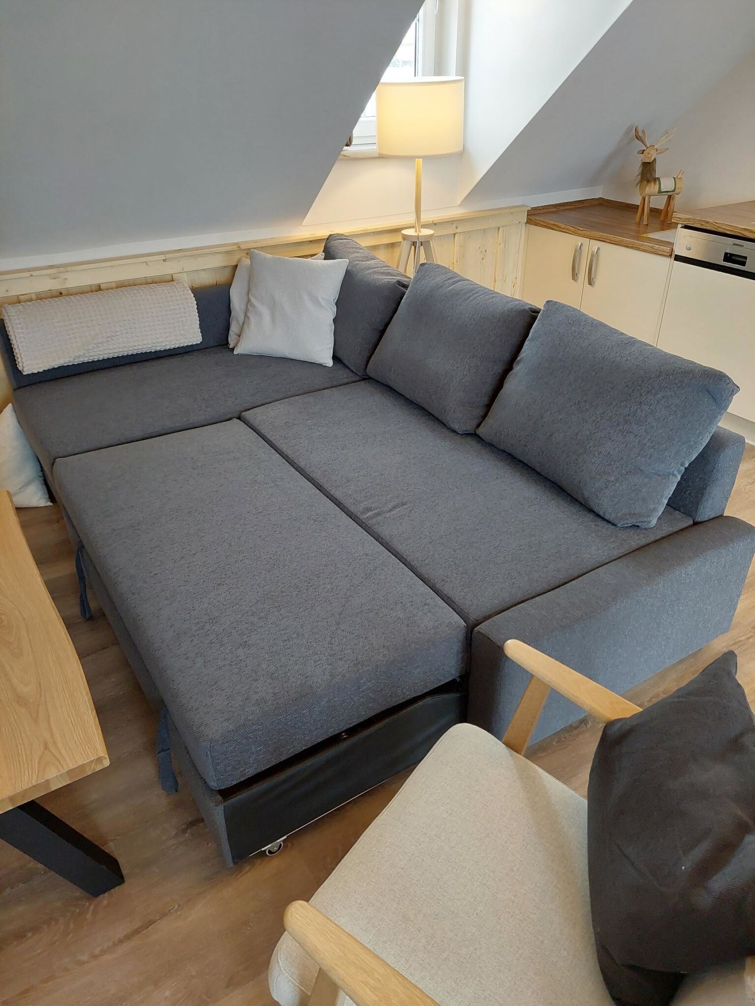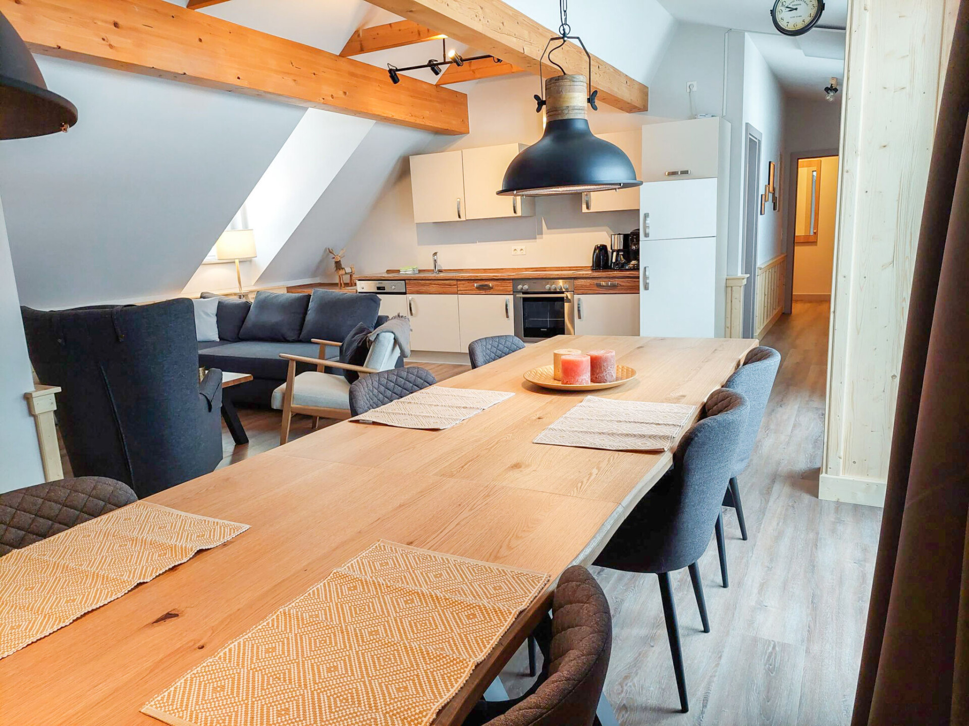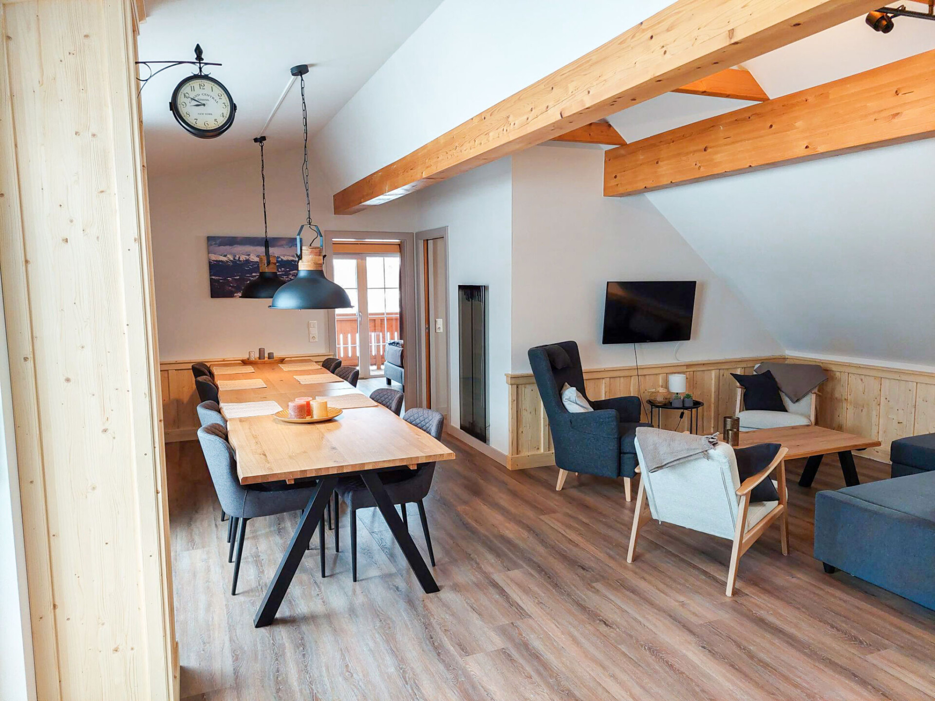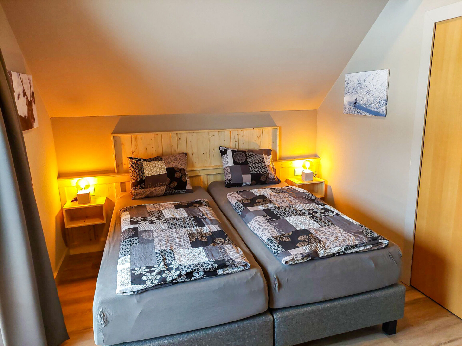 "Top 13", penthouse 4-kamers 81 m2. Gedeeltelijk afgeschuinde daken, comfortabel en gezellig ingericht: hal. Groot woon-/eetkamer met 1 2-pers divanbed (160 cm), eettafel en Sat-TV (Flatscreen TV). Uitgang naar het terras. 1 2-pers. kamer met schuifdeur. Uitgang naar het balkon. 1 2-pers. kamer. 1 kinderkamer met schuifdeur met 1 x 2 stapelbedden. Open keuken (oven, afwasmachine, 4 keramische glas kookplaten, diepvriezer, elektrische koffiemachine). Bad/douche, aparte WC, dubbele wastafels. Parketvloeren. Terras 13 m2. Terrasmeubelen. Panoramazicht op de skipiste en het landschap. Ter beschikking: Internet (WiFi, gratis). Garage nr. 13. Niet rokers woning. Brandblusser. 50508-025013-2020