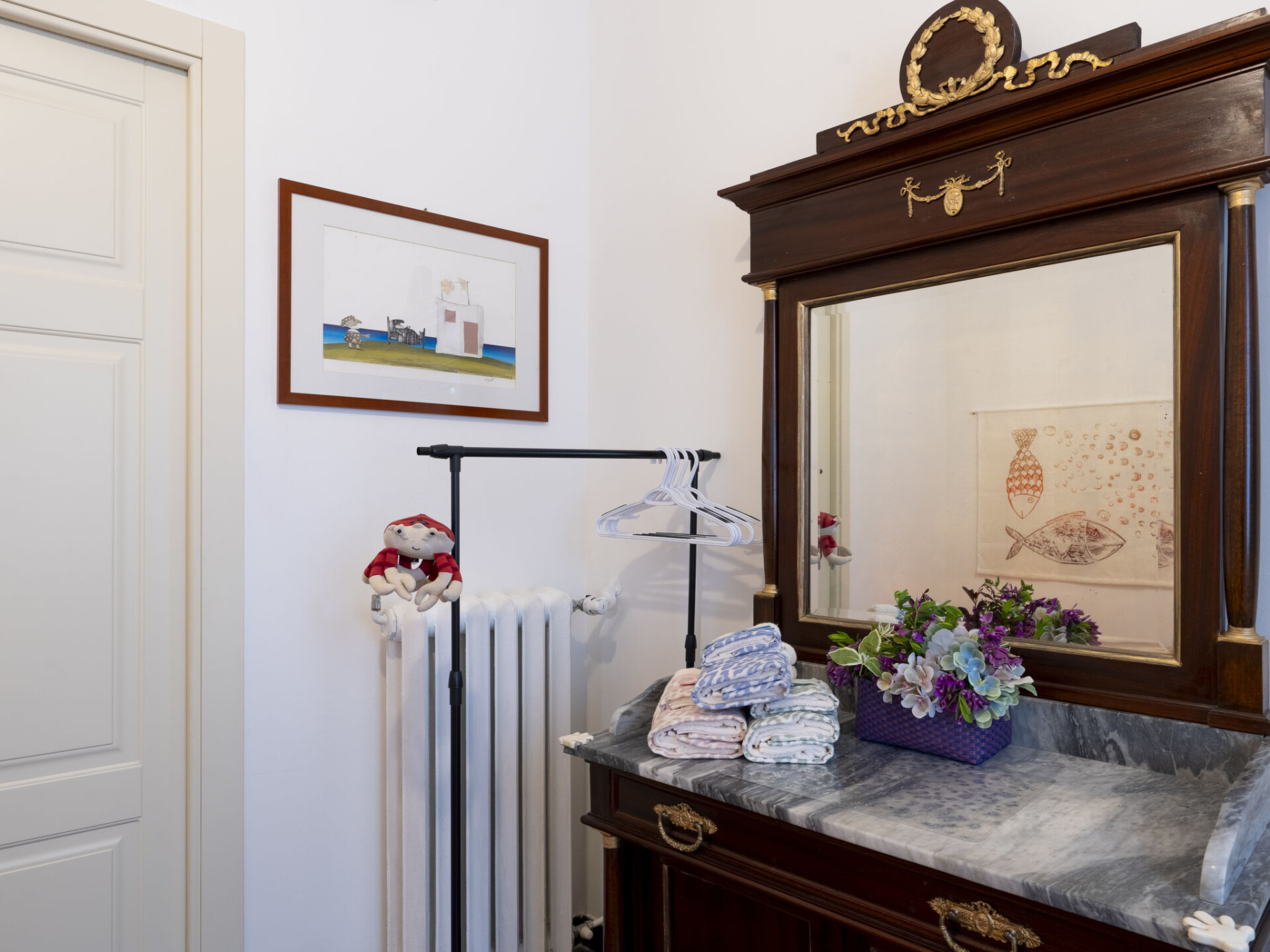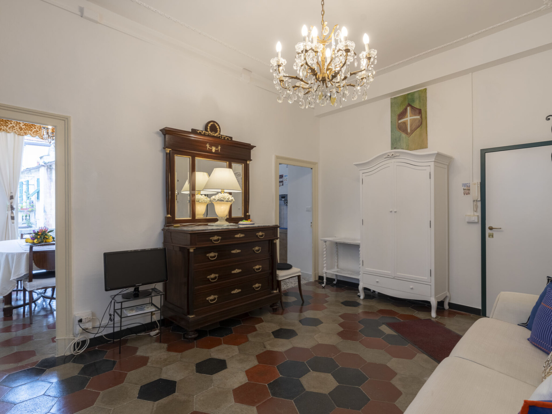 "Liberty", appartement 4-kamers 85 m2 op de 2e verdieping. Antiek en gezellig ingericht: woon-/slaapkamer met 1 2-pers divanbed (1 x 160 cm, lengte 190 cm), TV. Doorgangskamer met 1 bed (80 cm, lengte 190 cm). 1 kamer met 1 2-pers bed (1 x 180 cm, lengte 190 cm), TV. Eetkamer met eettafel. Uitgang naar het balkon. Keuken (4-pits kookplaat, oven, magnetron, diepvriezer, elektrische koffiemachine, pads voor de koffiemachine (Dolce Gusto)). Douche/WC. Verwarming alleen beschikbaar van 01.11. tot 01.04. Klein balkon 3 m2. Mooi uitzicht op de plaats. Ter beschikking: wasmachine. Garage (1 Auto) op 650 m, hoogte 220 cm, breedte 500 cm. Niet rokers woning. Geen lift. IT009042C2X92B3QIQ