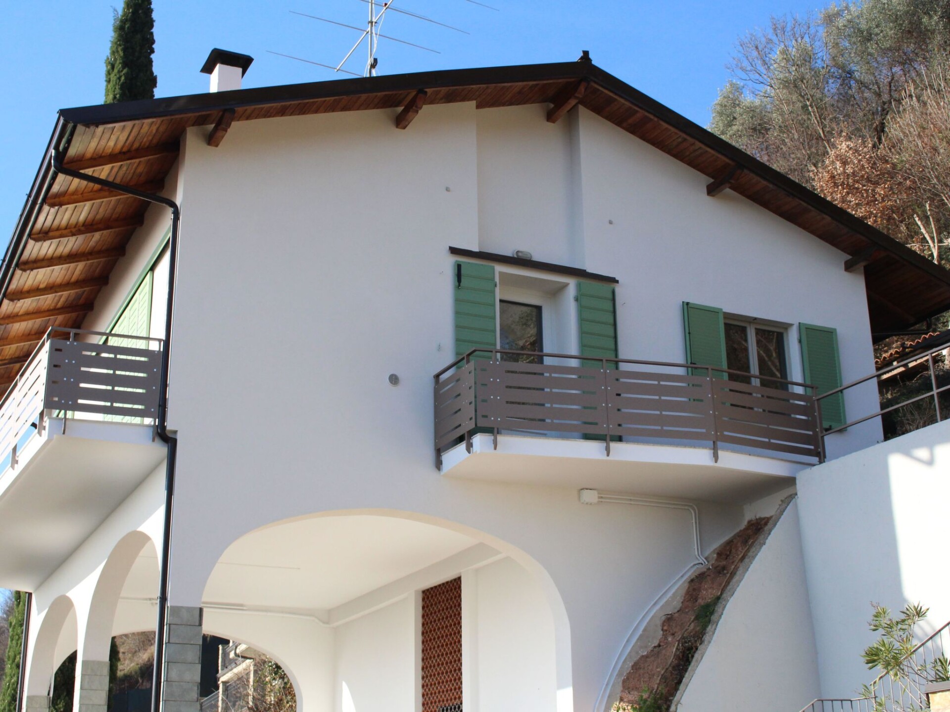 This beautiful detached house is located only 1 km above the municipality of Toscolano-Maderno. Its location offers a fantastic view of Lake Garda, which can be admired from most areas of the house, the swimming pool and the garden.Access to the property is via a gate at street level, from which there is also access to a large two-car garage. A first flight of stairs leads up to the garden level, where there is a large covered terrace with a splendid lake view and a wonderful private swimming pool. Next to the pool is a service bathroom with shower. The pool is also equipped with an electric cover, which is very useful for keeping the water warm in the evenings and during the low season.This beautiful detached house is located just above the village of Toscolano-Maderno (1 km from the municipality), in a very convenient position to reach the lake or simply to enjoy the fantastic lake view from the house and the large private pool. A large private garage for two cars is available. 4G Wi-Fi is available. 3 bedrooms. Fireplace. Separate kitchen. Large covered terrace with lake view. A second staircase leads to the entrance of the house, which is in a fantastic panoramic position. We enter the living room with French windows overlooking the lake and a charming antique fireplace. The kitchen is separate from the living room (it was renovated in 2012) and is fully equipped with all the crockery and utensils needed for cooking. On the opposite side of the living room is the sleeping area with 3 bedrooms and 1 bathroom. Two bedrooms are equipped with double beds (160x190 cm) and wardrobes. The third bedroom is smaller and has a double bed (140x190 cm).The flat is located just above the centre of Toscolano-Maderno (5 minutes by car), one of the most beautiful villages on Lake Garda, with numerous shops, bars and restaurants, as well as a long and beautiful beach... everything you need for a wonderful stay on Lake Garda :) We highly recommend arriving by car: 1.5 km from the centre of Toscolano-Maderno (5 minutes by car). From the village you can take a ferry to other places on the lake. The nearest railway station is Desenzano.We welcome all our guests on arrival to show them the property and hand over the keys. Please remember to contact us before your arrival to arrange a check-in time. Late or early check-ins must be requested in advance; additional charges may apply. IT017187C2DJQHXOA4