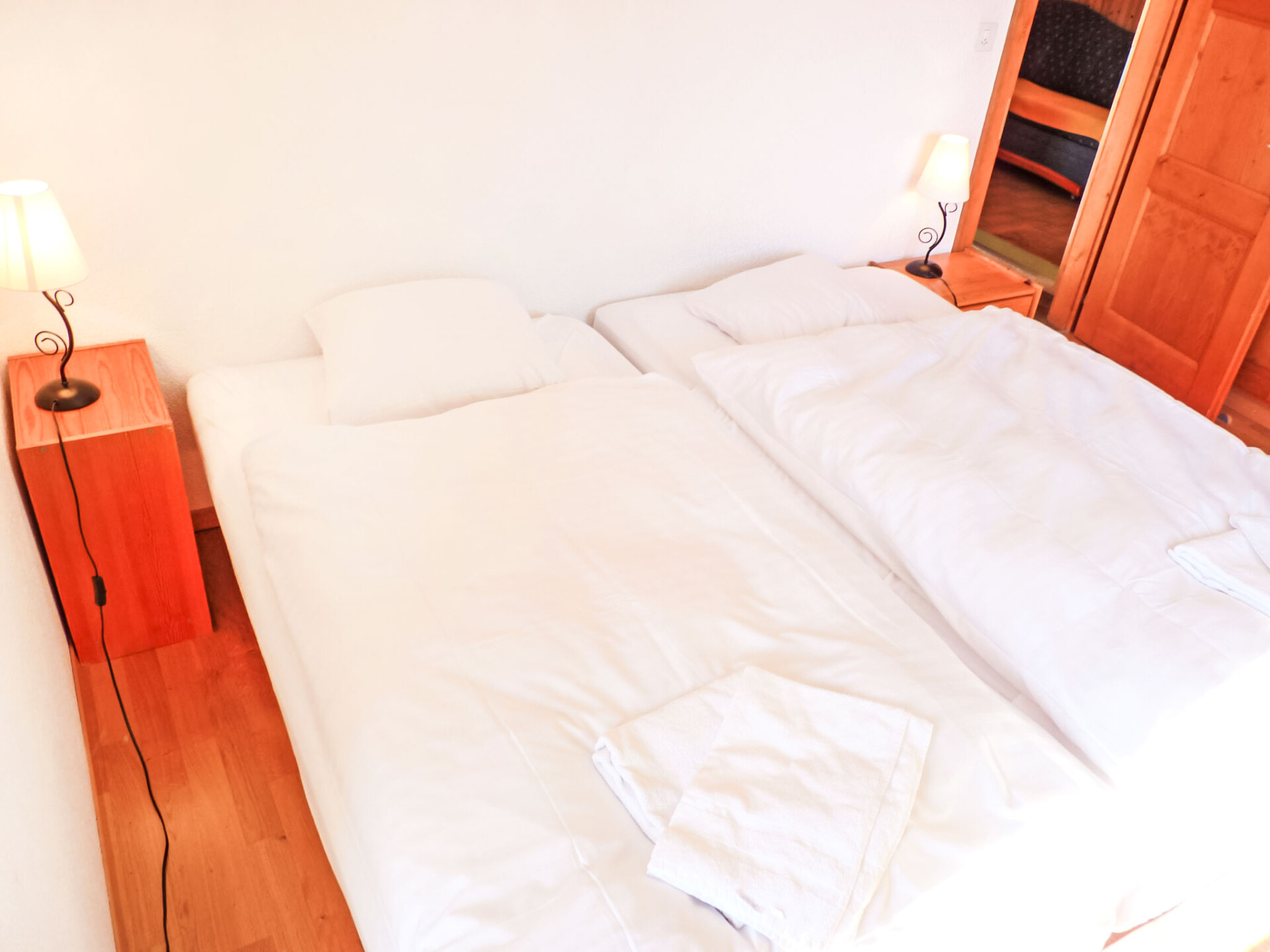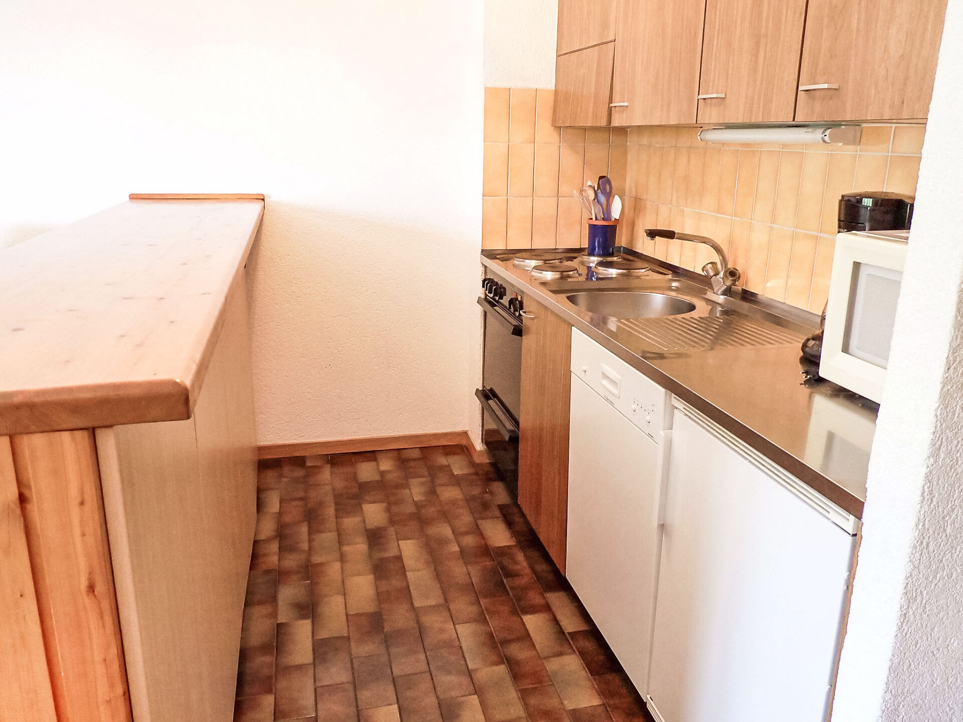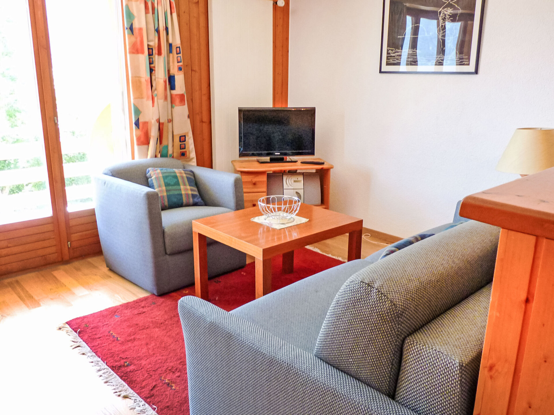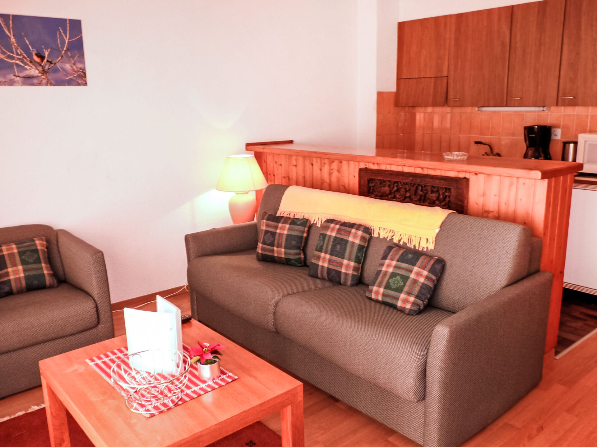 "Tourbillon B 27", appartement 2-kamers 45 m2 op de 2e verdieping, op het zuidwesten gelegen. Comfortabel en smaakvol ingericht: woon-/eetkamer met 1 2-pers divanbed (1 x 160 cm, lengte 190 cm), Kabel-TV en stereo-installatie. Uitgang naar het balkon. 1 kamer met 2 bedden (90 cm). Kookhoek (3-pits kookplaat, oven, afwasmachine, magnetron, elektrische koffiemachine, pads voor de koffiemachine (Nespresso) extra, fondue Set (chinese, kaas)). Douche/WC. Balkon 8 m2, op het zuiden gelegen. Terrasmeubelen, ligstoelen (2), bergruimte. Mooi uitzicht op de bergen. Ter beschikking: strijkijzer. Internet (WiFi, gratis). Parkeerplaats. Niet rokers woning. Maximaal 1 klein huisdier/hond toegestaan.