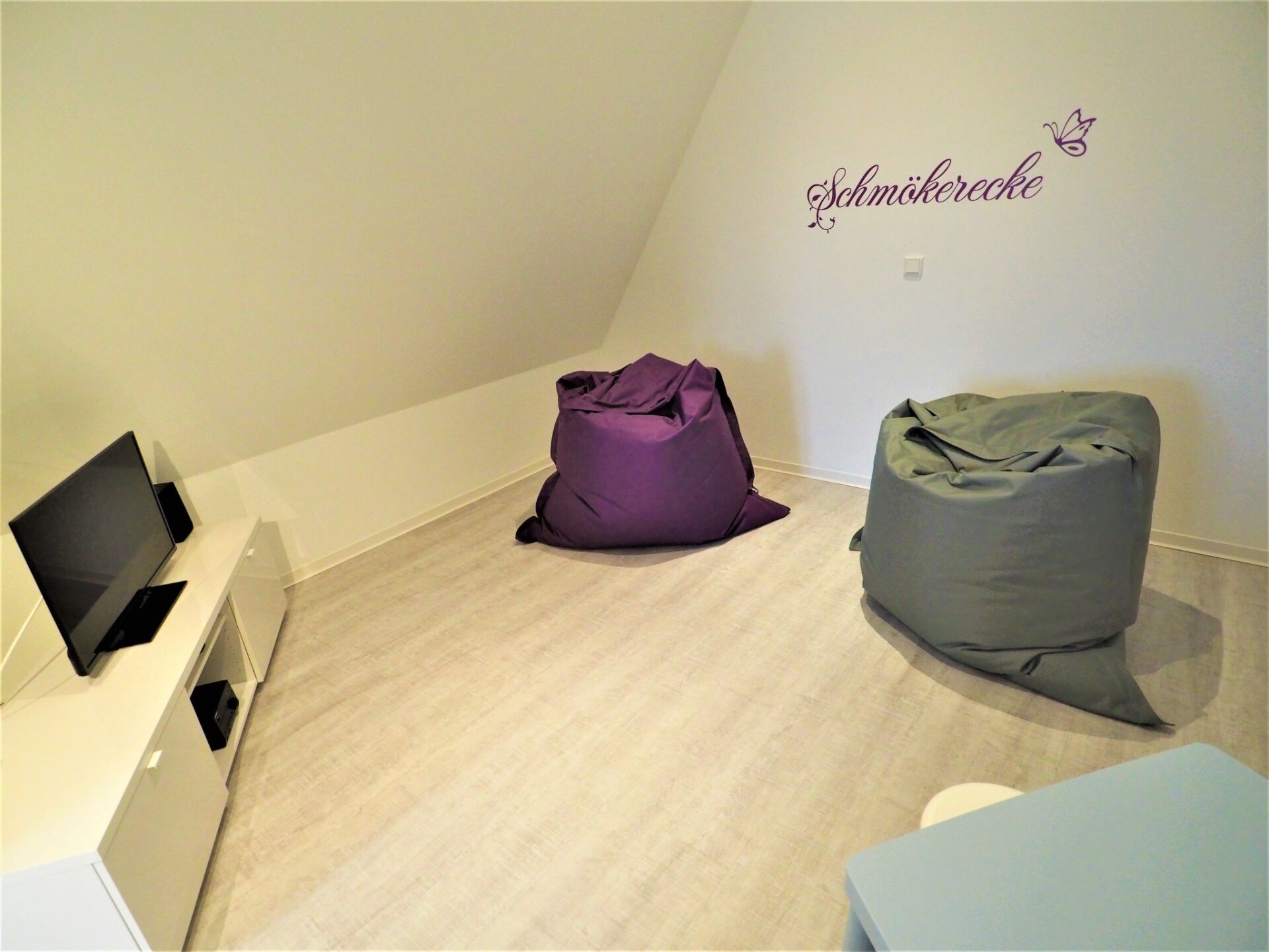 Je kunt de toegangsdeur naar buiten openen met je individuele toegangscode, waardoor je gemakkelijk het huis binnenkomt. Op de begane grond is er een grote woon/eetkamer met een gezellige leren zithoek, een houtkachel en een grote eethoek voor acht personen, evenals een hoogwaardige, volledig uitgeruste inbouwkeuken. Vanuit de woon/eetkamer heb je toegang tot het grote terras. Er is ook een grote doucheruimte met sauna. Als je er niet op uit bent, kun je vanuit de woonkamer genieten van satelliet-tv of een goede film op dvd. Voor degenen die liever muziek luisteren is er een stereo-installatie met radio/CD, iPod en USB-aansluiting. Of je kunt ontspannen voor de houtkachel en luisteren naar het geknetter van het vuur. Er is een moderne, volledig uitgeruste en ruime eetkeuken zodat je je culinaire hobby kunt uitleven tijdens je vakantie. Het heeft een grote koelkast met vriesvak, inductiekookplaat, afzuigkap, verhoogde oven, vaatwasser, magnetron, enz. De moderne badkamer met aangrenzende sauna bestaat uit een gelijkvloerse douche, toilet en wastafel. Na een saunagang stap je via een dubbele deur de frisse lucht van de Oostzee in. Op de eerste verdieping vind je in totaal drie slaapkamers en een badkamer. Twee slaapkamers hebben elk een tweepersoonsbed (180 cm x 200 cm), twee nachtkastjes, twee krukjes, een kledingkast en satelliet-tv. De derde slaapkamer heeft twee eenpersoonsbedden (90 cm x 200 cm), twee nachtkastjes, twee krukjes, een dressoir en satelliettelevisie. Alle bedden hebben verstelbare lattenbodems en matrassen van hoge kwaliteit en hebben een comfortabele hoogte. Je vindt er ook een mooie wellness badkamer om in te ontspannen met een ligbad, inloopdouche, toilet, wastafel en haardroger. De omgebouwde loft is de ideale verblijfplaats voor je kinderen. Hier vind je onze stapelhoek met twee eenpersoonsbedden (90 cm x 200 cm), een bureau en een kledingkast, evenals een gezellige hoek met twee zitzakken, een tv-plank en satelliet-tv.