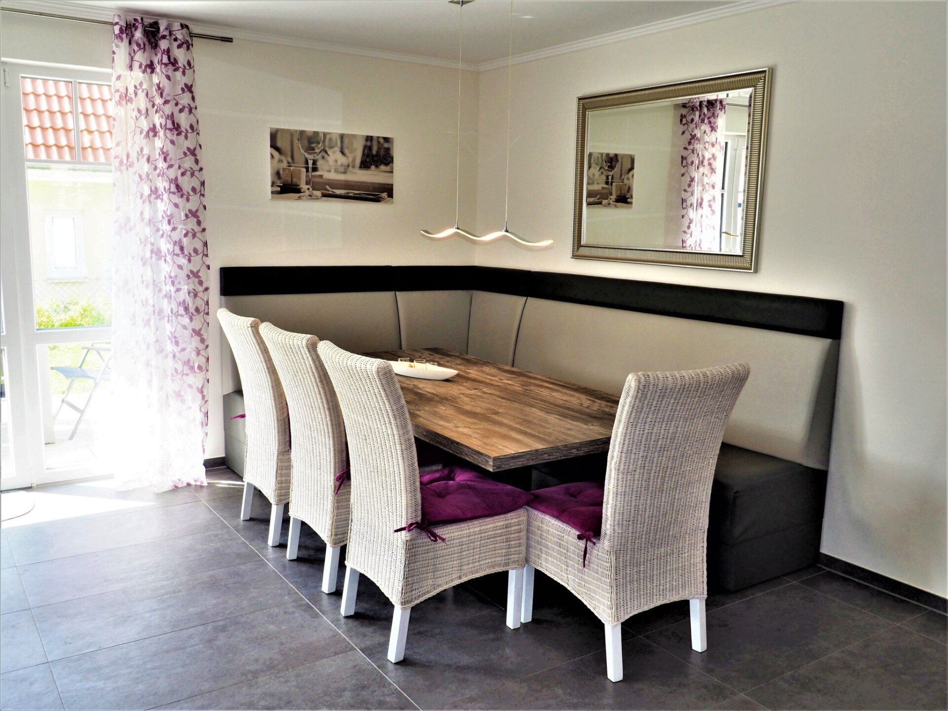 Buitenfaciliteiten: Er zijn twee parkeerplaatsen achter elkaar beschikbaar, waarachter een extra voertuig kan worden geparkeerd. Als je je eigen fietsen hebt meegenomen of fietsen huurt, kun je deze stallen in een afsluitbaar fietsenhok en de tuin is omheind (hoogte ca. 80 cm). Terras: De grote tuintafel met plaats voor acht personen nodigt uit tot een gezellige barbecue-avond, een elektrische barbecue is beschikbaar. Een elektrische laadpaal, alleen voor gasten van de twee-onder-een-kapwoning.