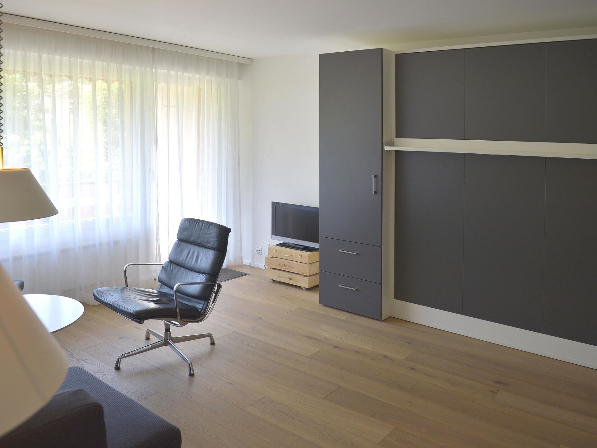 Triangle house A / ground floor / Lift / Wifi yes / 1 room with double wardrobe bed in the living area / 1 bathroom with WC and shower The flat is located in the centre of Parpan and is close to the chairlift and the cross-country ski run. (In the same house are also the holiday flats Mohr, Leppin and Freund).
